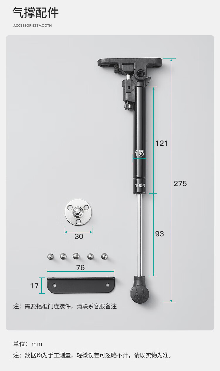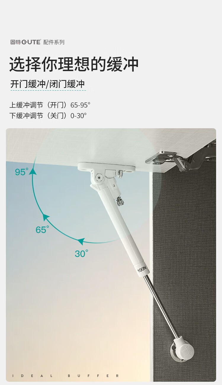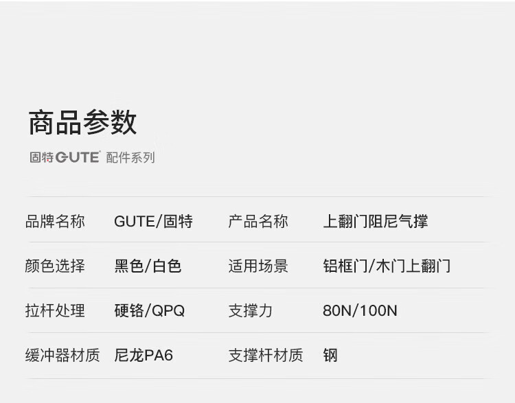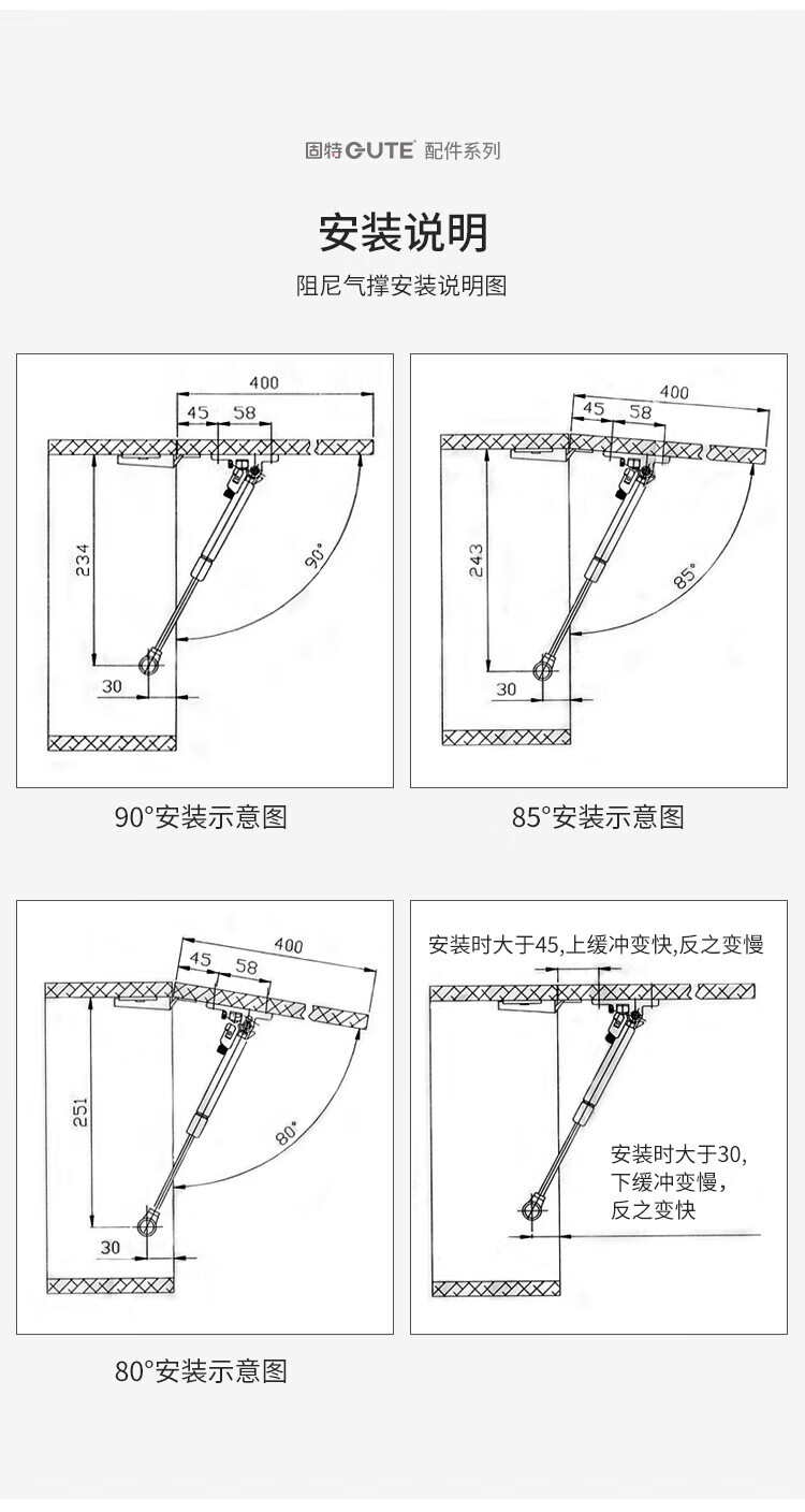固特(GUTE)支撑杆气撑液压杆橱柜顶柜上翻门气动弹簧伸缩杆双缓冲阻尼 双缓冲【80N黑色】 上翻门支撑杆