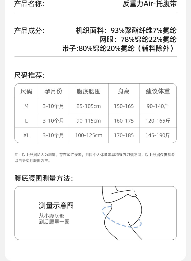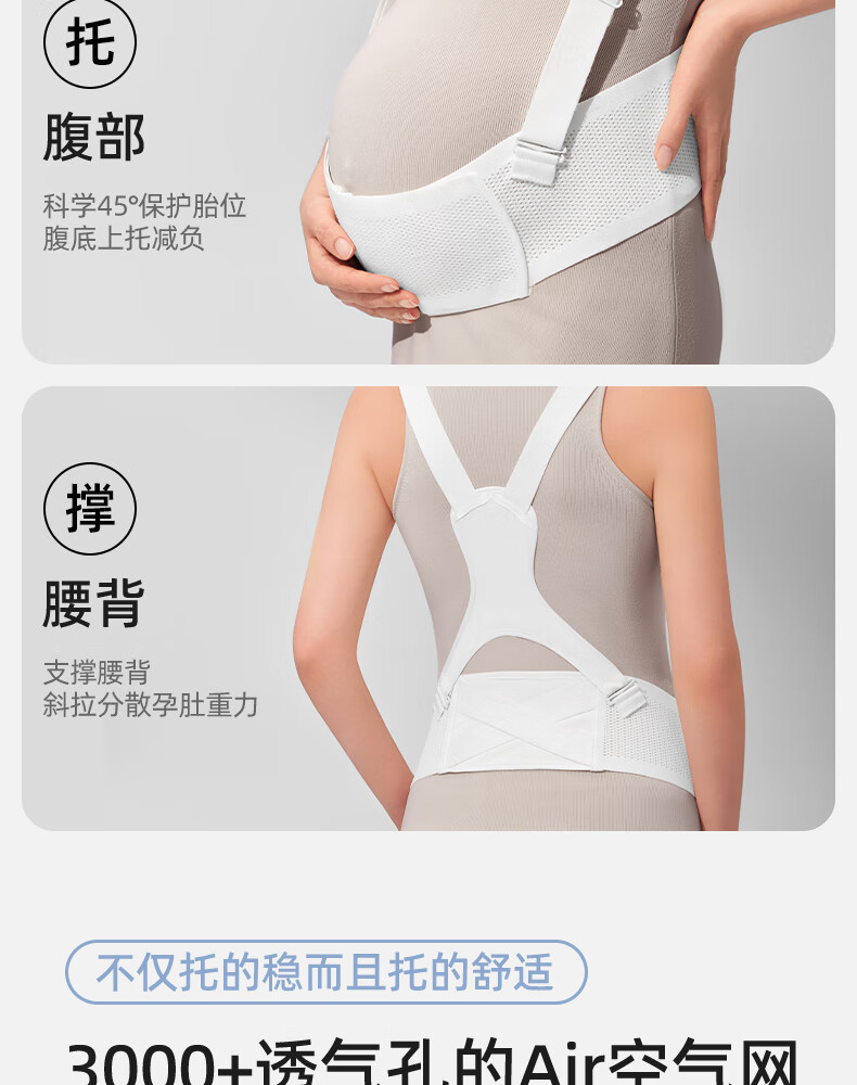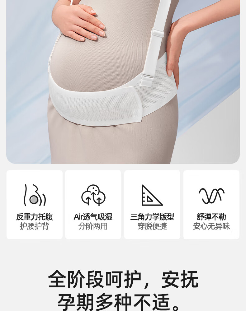 十月结晶托腹带孕妇专用孕晚期孕后期多功能托腹腰带 【Air反重力白色】XL码