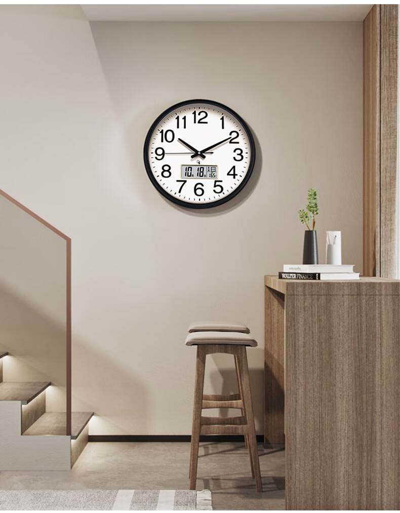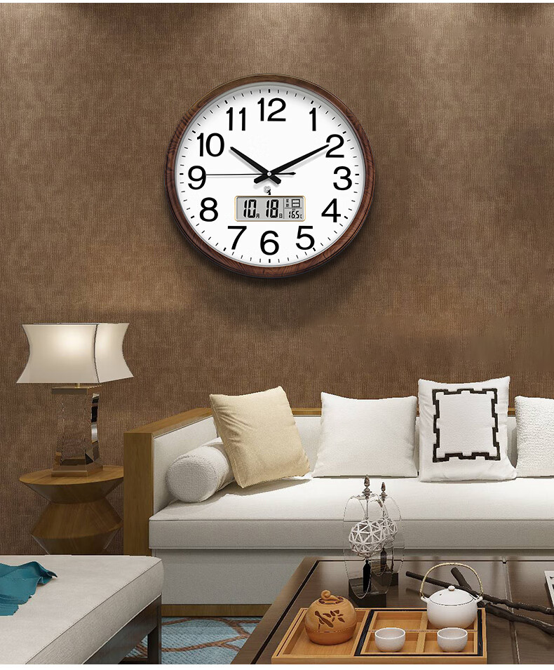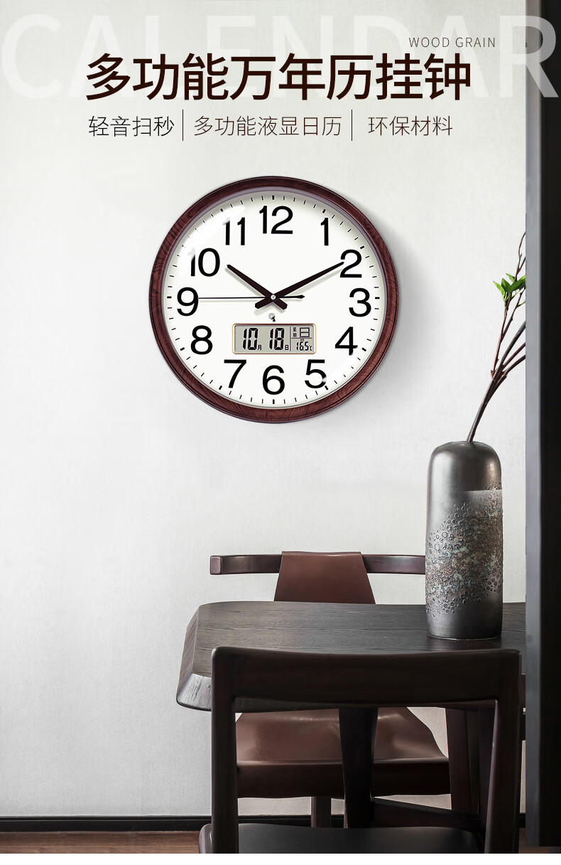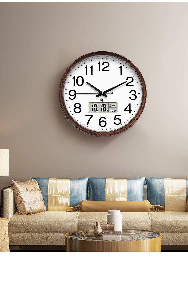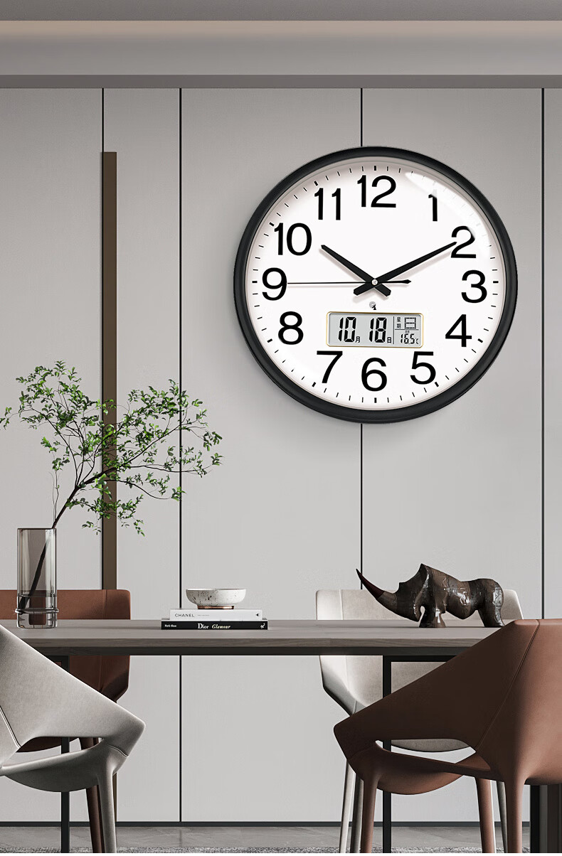 Timess挂钟钟表客厅家用电波钟挂墙万年历温度时钟创意挂表41cm+16英寸