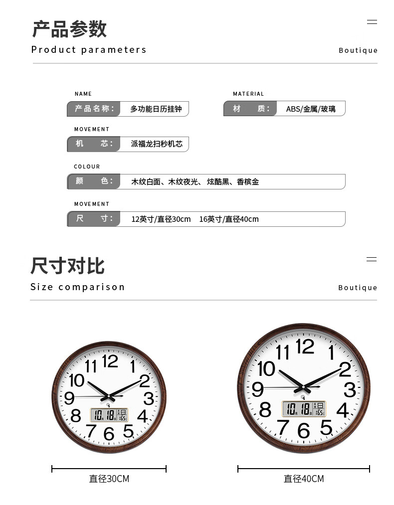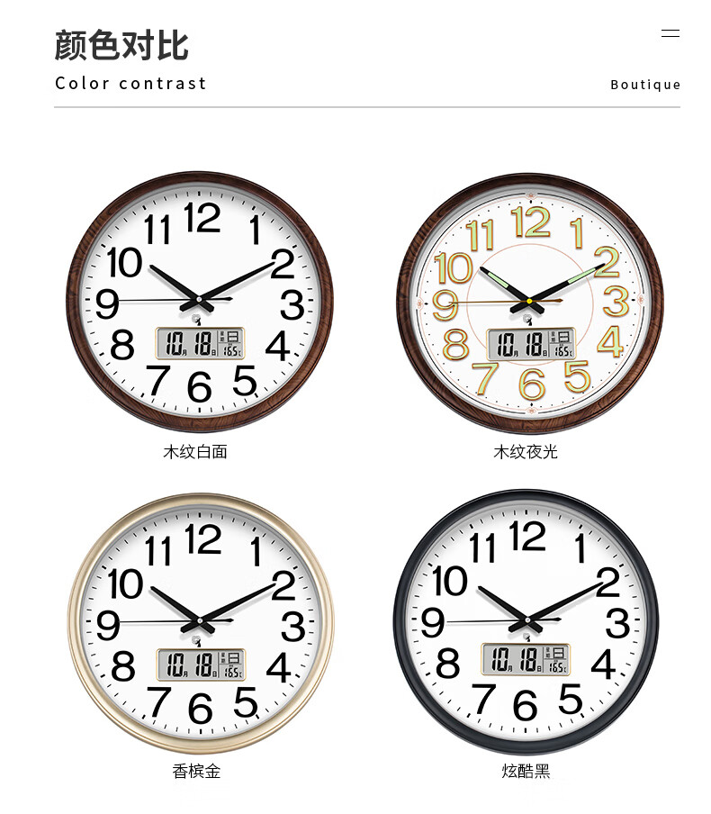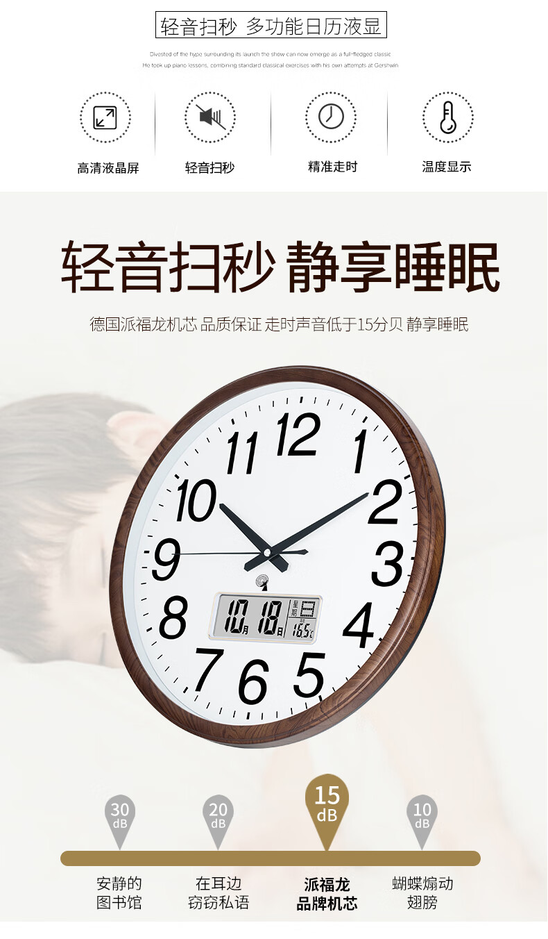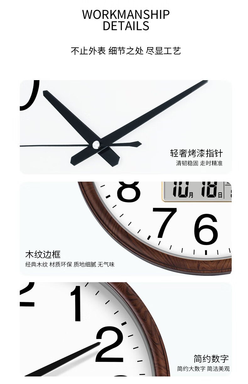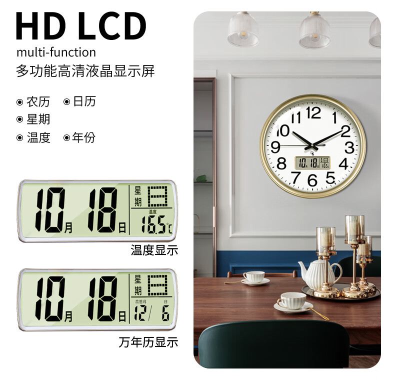 Timess挂钟钟表客厅家用电波钟挂墙万年历温度时钟创意挂表41cm+16英寸