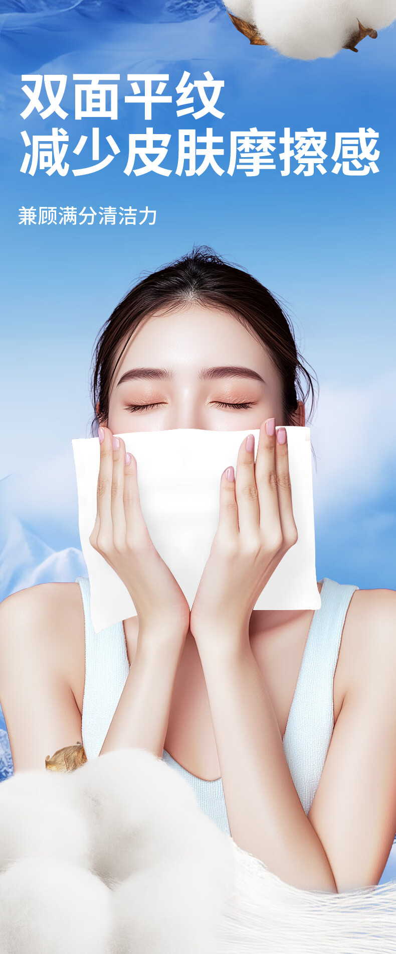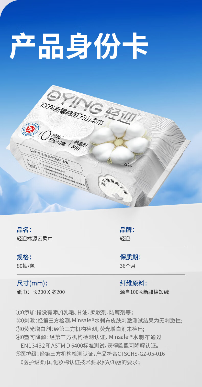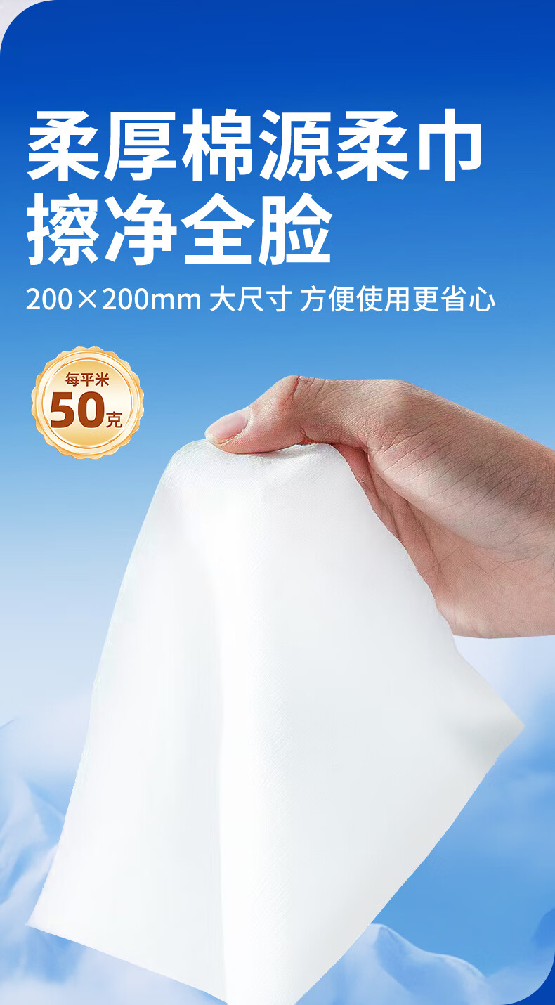 轻迎棉柔巾80抽/包 100% 新疆棉源干湿两用一次性洗脸巾20*20cm 50g