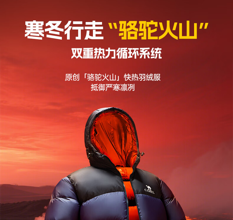骆驼火山羽绒服1.0男士鸭绒加厚防寒面包服潮款冬季外套M13CR07089H