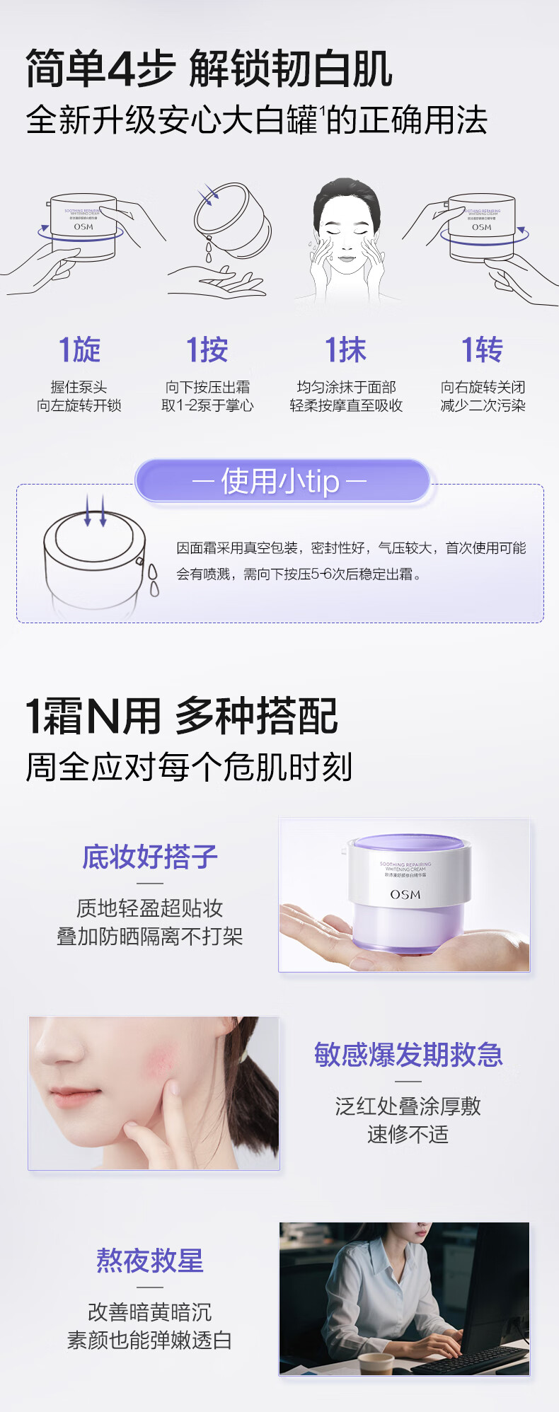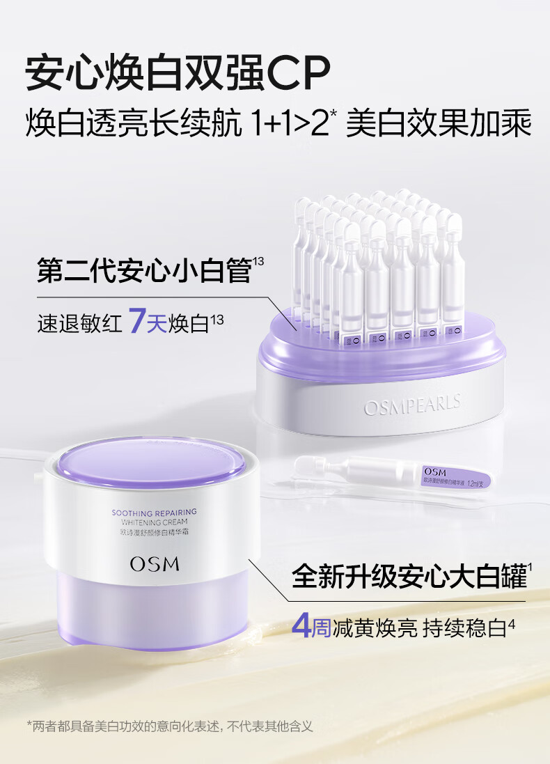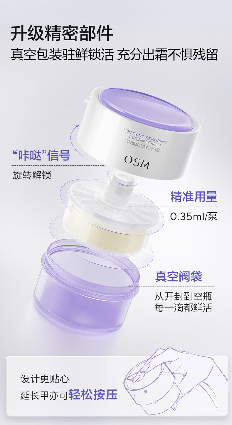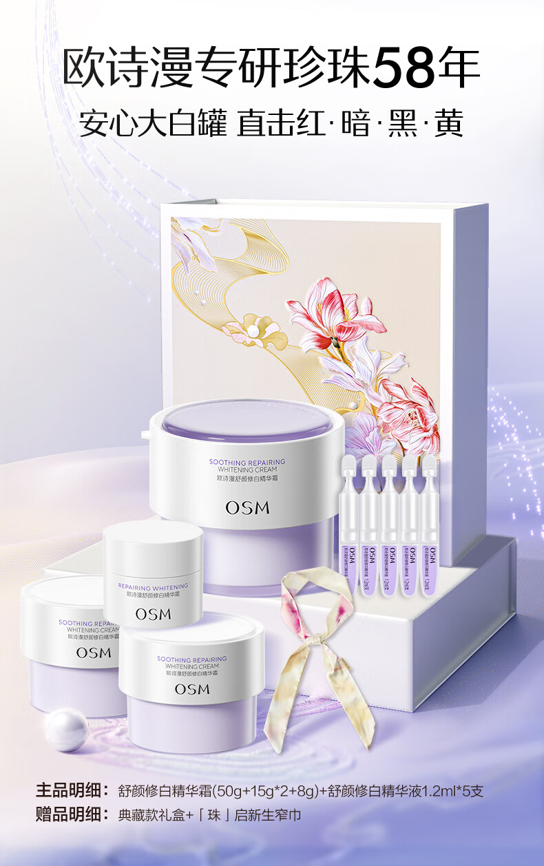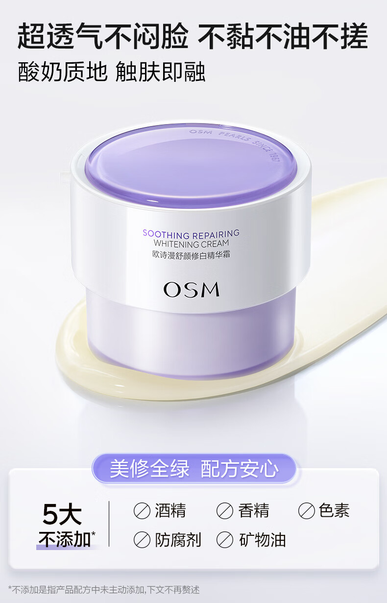 欧诗漫(OSM)舒颜修白精华霜50g安心大白罐面霜敏感肌补水保湿晒后舒缓修红