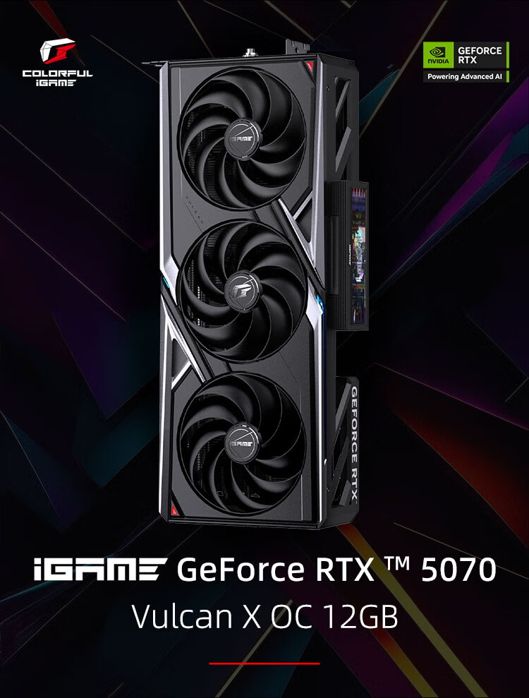 七彩虹(Colorful)iGame GeForce RTX 5070 Vulcan X OC 12GB GDDR7 DLSS 4 电竞光追游戏设计电脑显卡