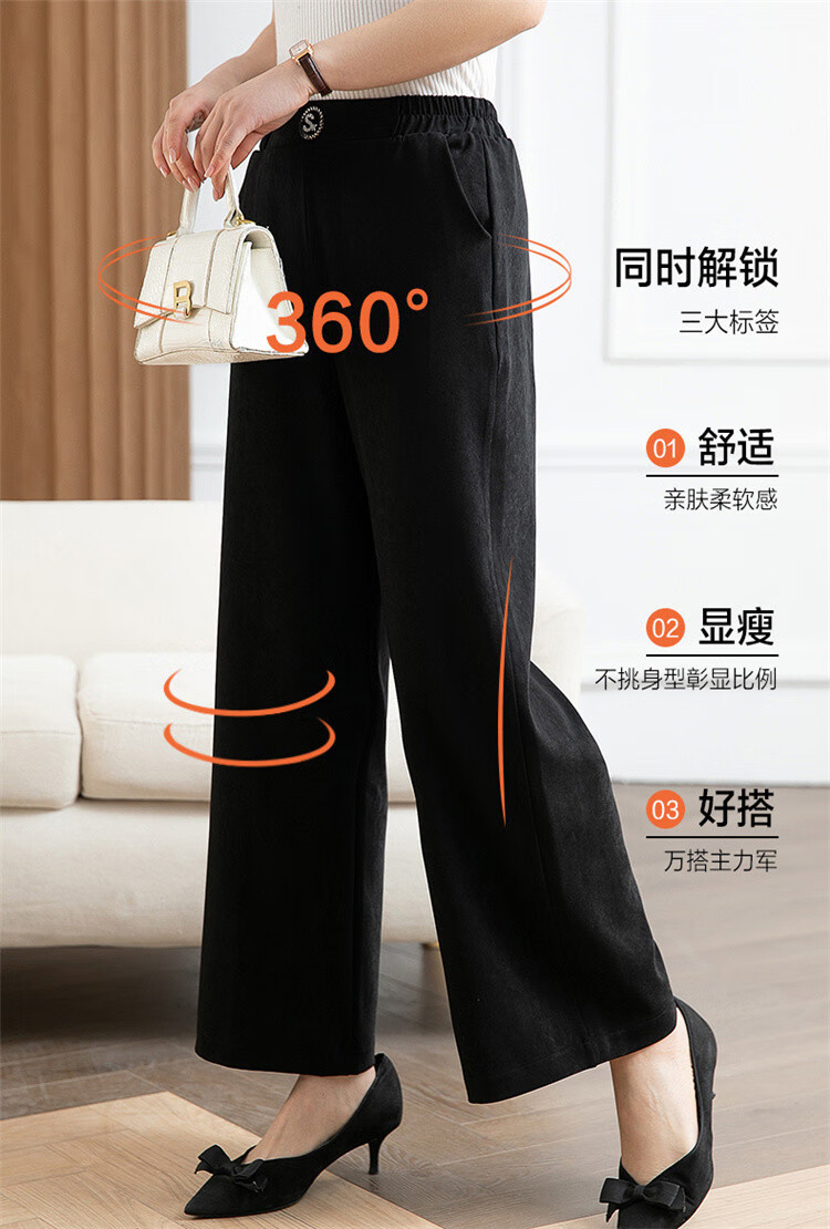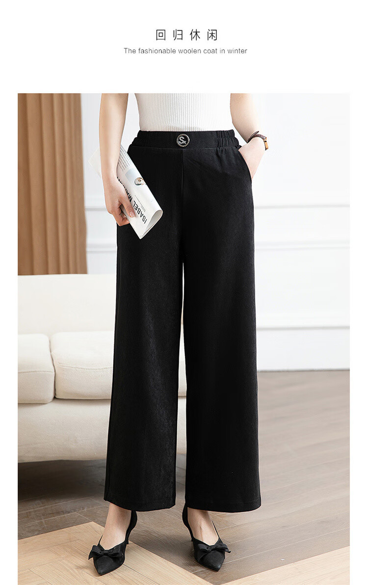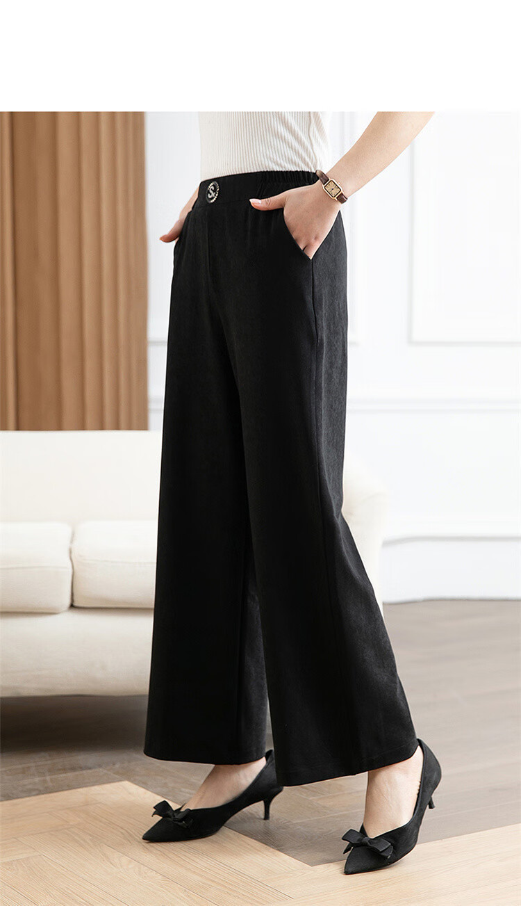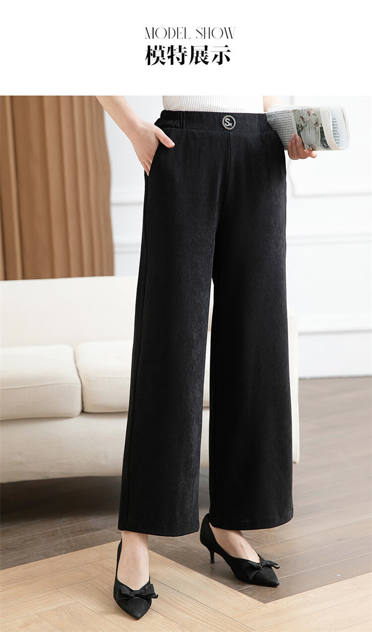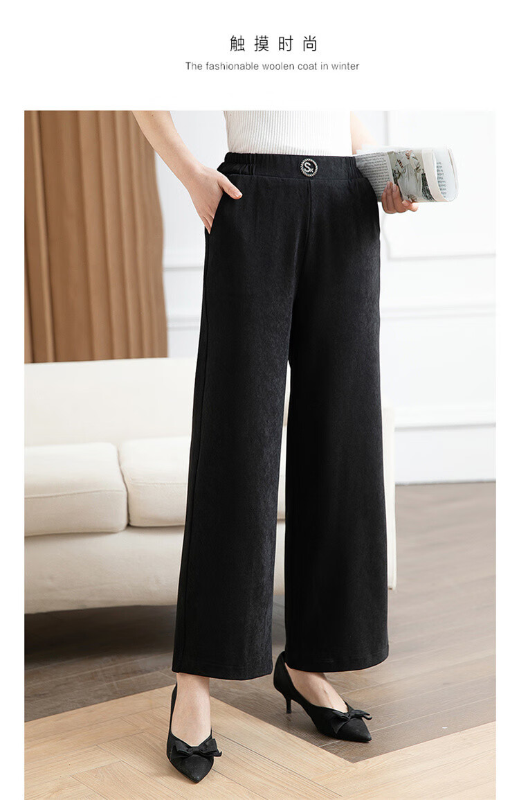 简狐妈妈春季松紧腰宽松女士休闲裤子妈妈装中老年女装春秋洋气阔腿裤
