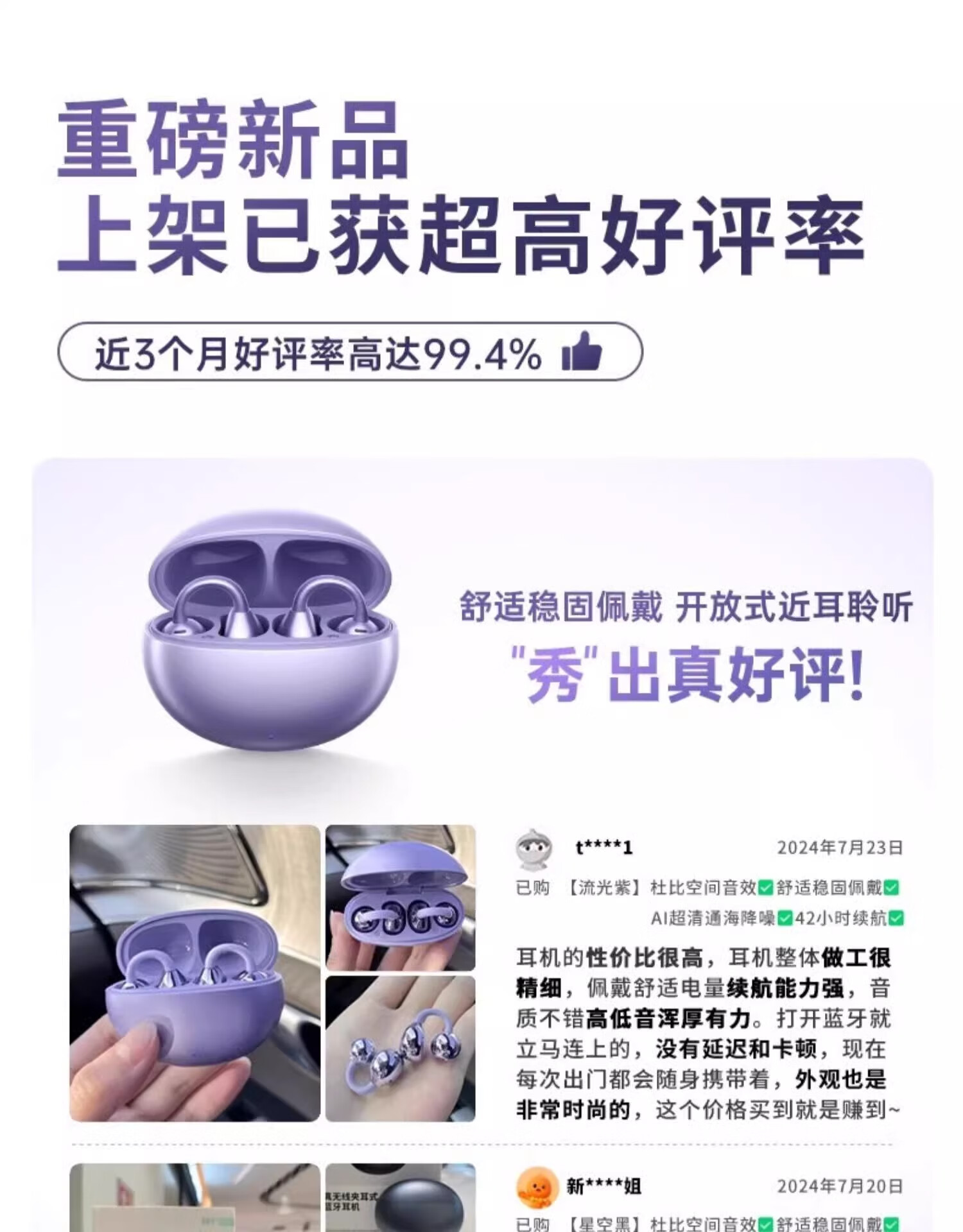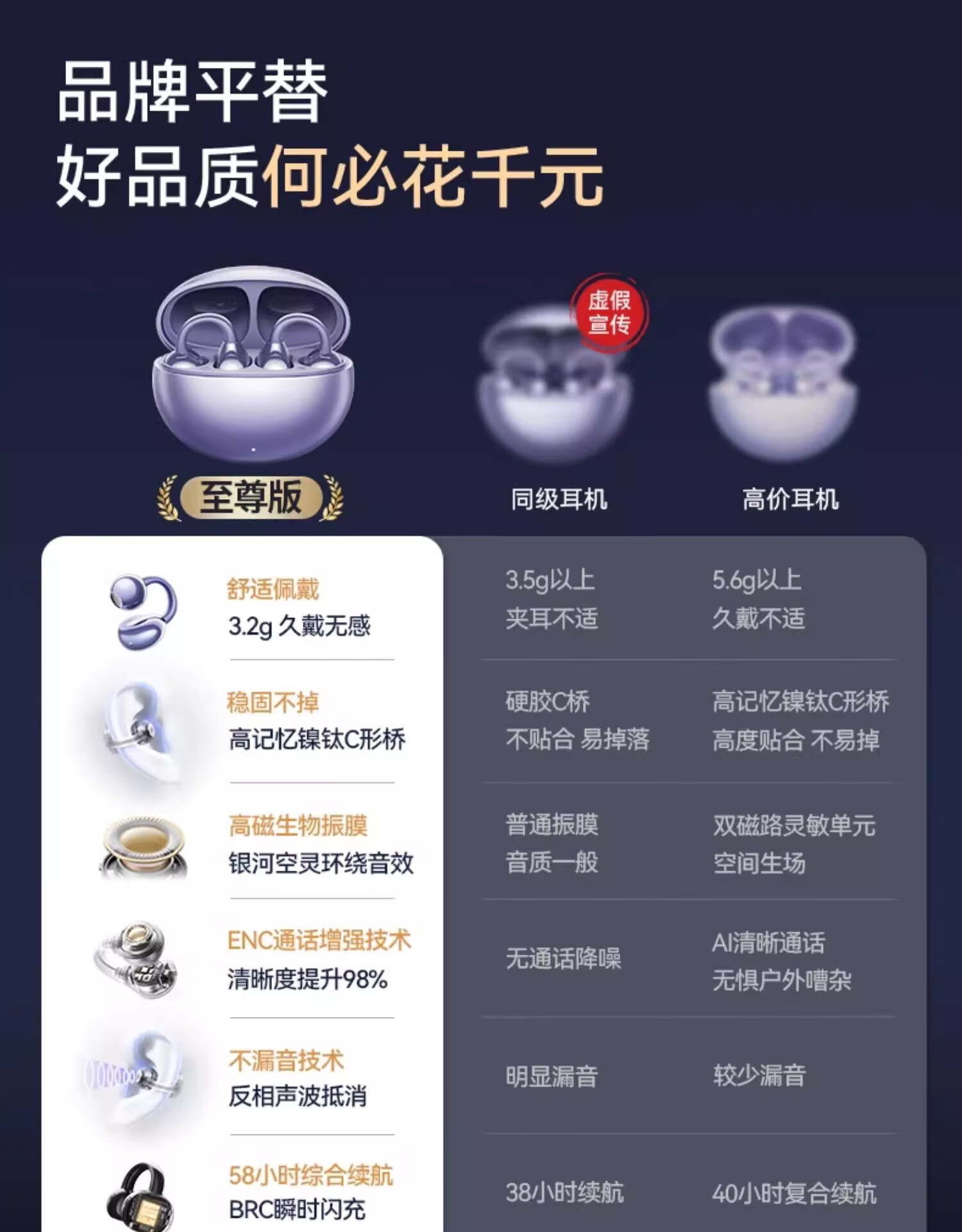 华为通用蓝牙耳机骨传导2025新款无线开放耳夹式长续航不入耳荣耀苹果 暖星云版全景音效