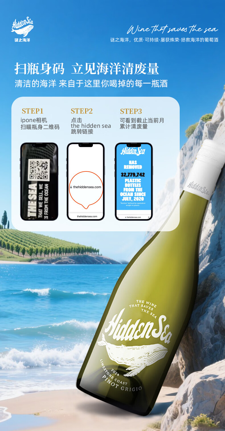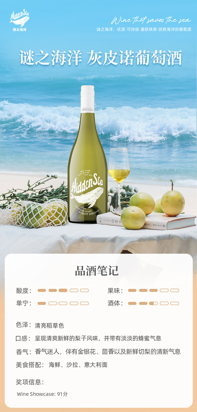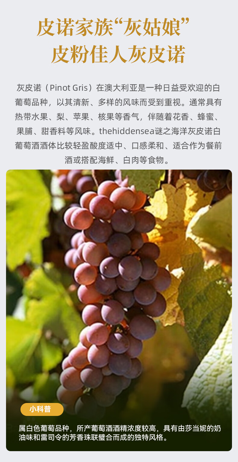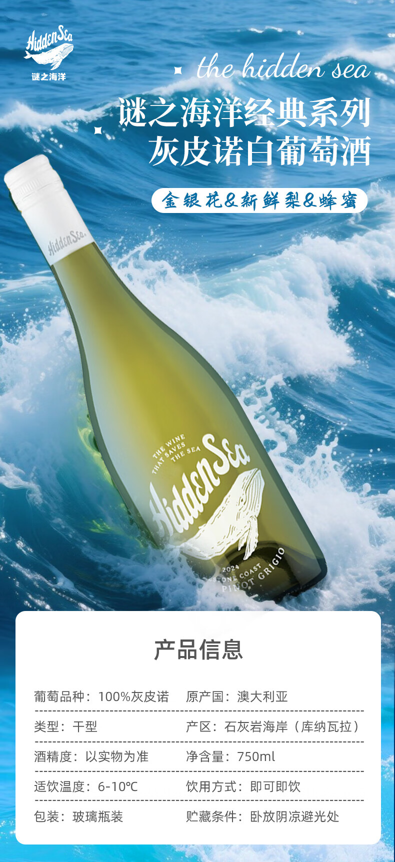 谜之海洋TheHiddenSea澳大利亚灰皮诺干白葡萄酒750ml 宴请自饮聚会送礼