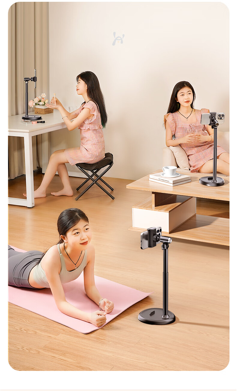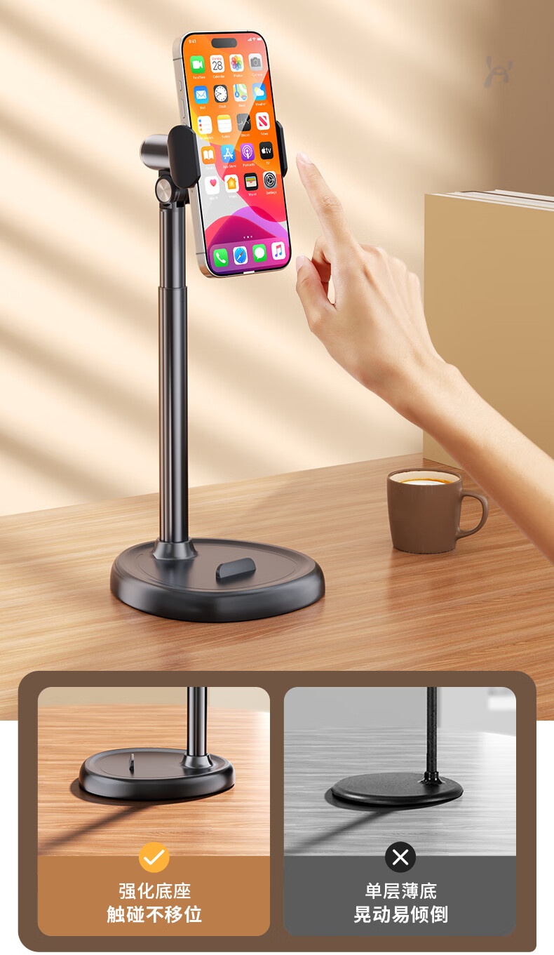 桌面手机支架2025款直播俯拍视频拍摄手机架可调节升降旋转俯拍自拍抖音支撑架子多功能家用懒人 手机夹【实心金属配置】可升降/俯拍/旋转