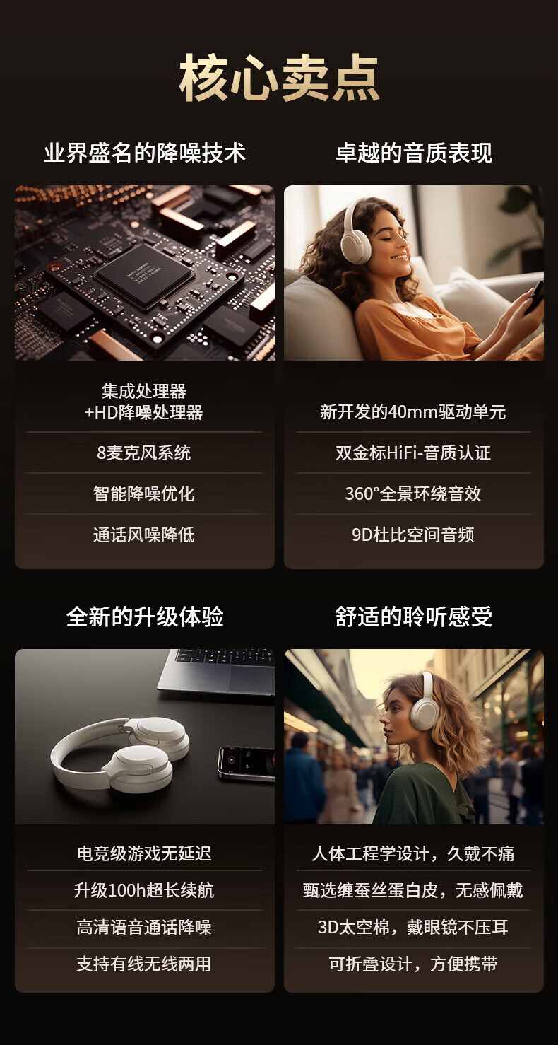 100W+热销丨柏林之声】索尼(S0NY)通用头戴式蓝牙耳机电竞游戏无线2025最新款pc电脑带麦克风音乐 肤色 HiFi音质+零延迟+有线无线两用