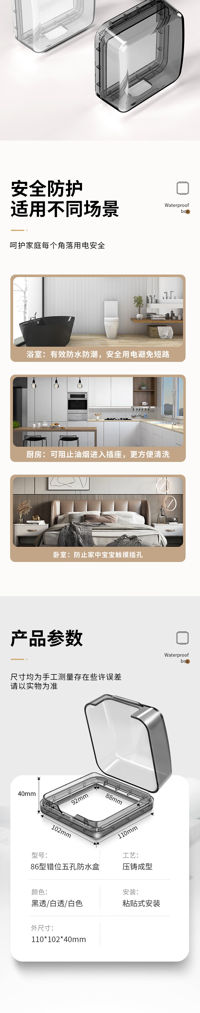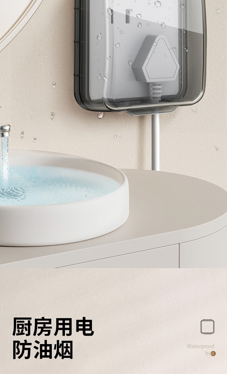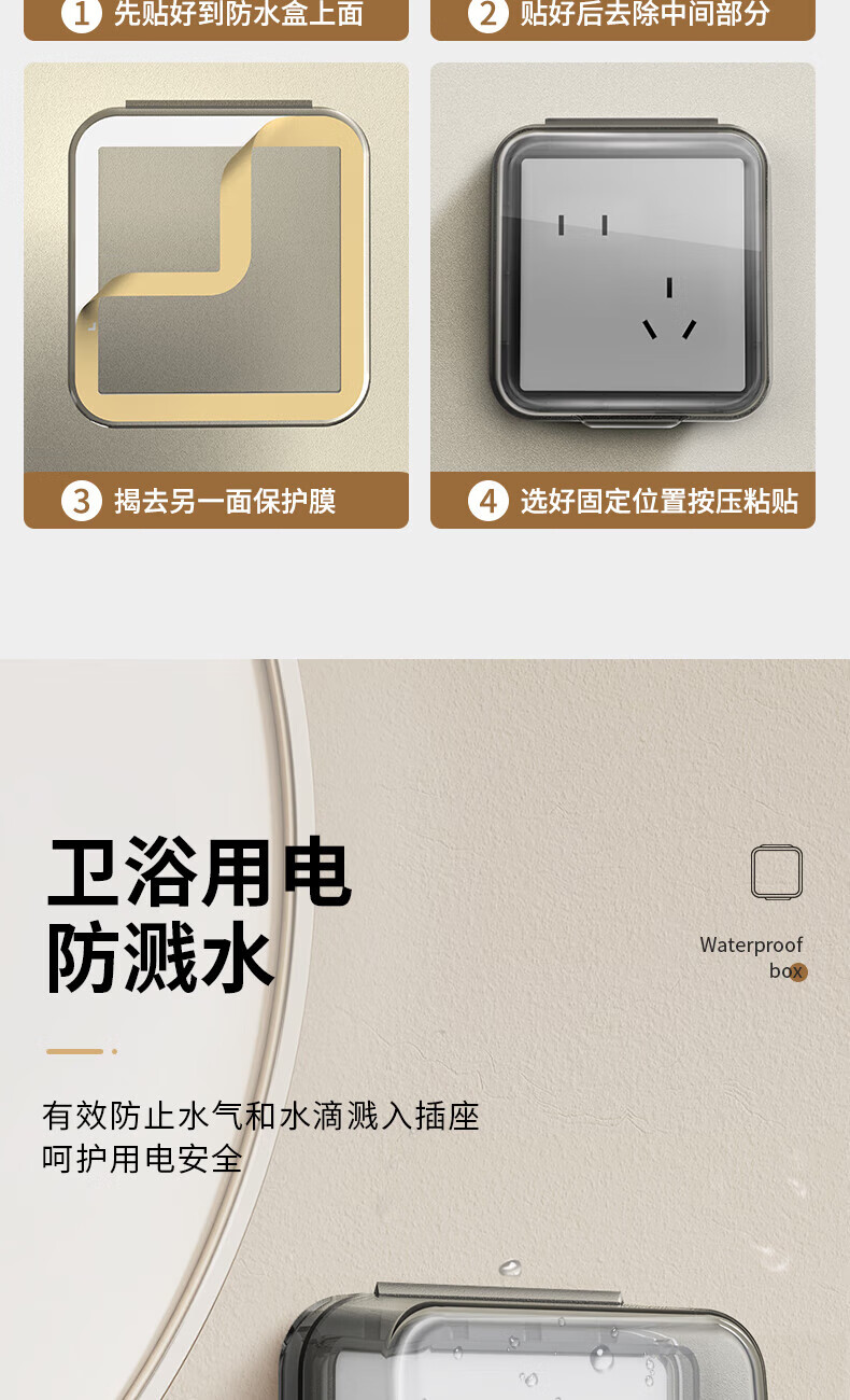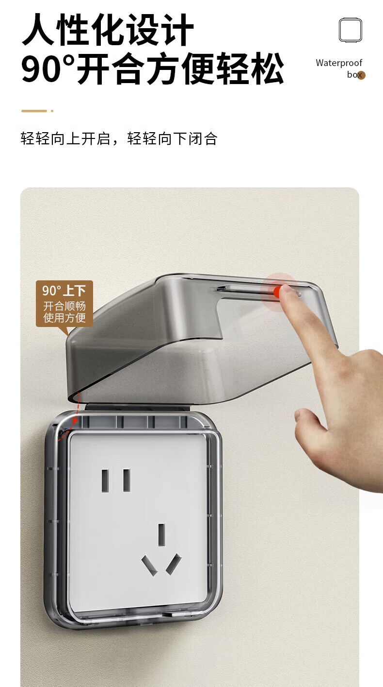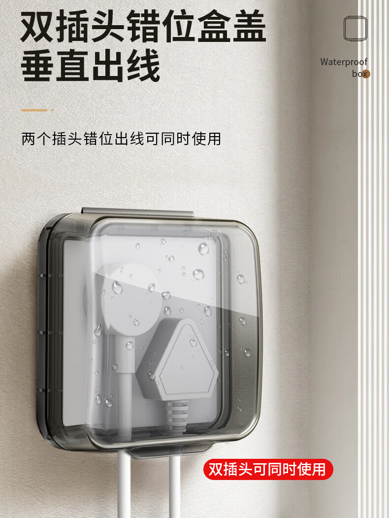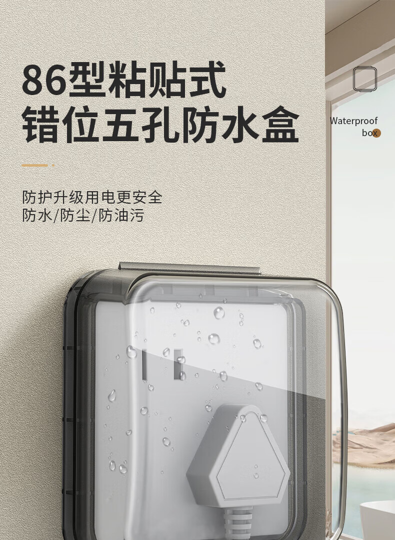 国际电工暗装插座防水盒86型浴室热水器电源插头防溅盒粘贴错位五孔防水罩 【透明】86超薄型防水盒