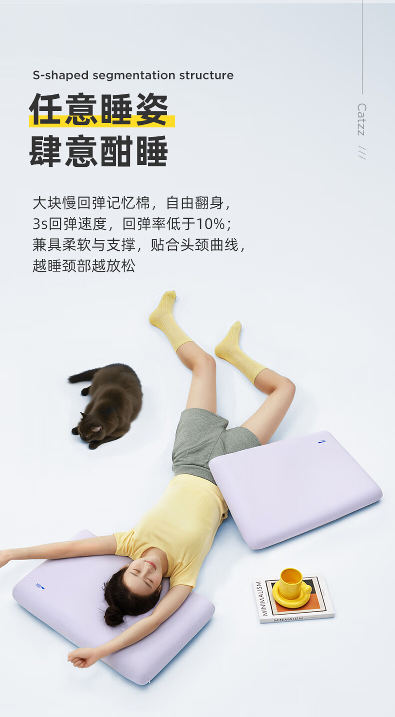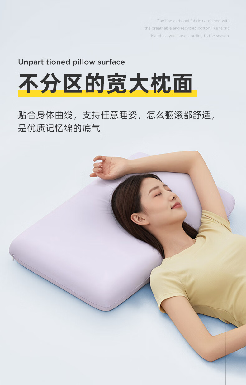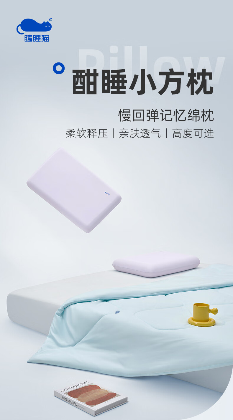 顾家家居(KUKA)酣睡小方枕慢回弹记忆棉枕柔软释压亲肤透气卧室高度可选ZZ.CB001 月光紫-8cm 单只