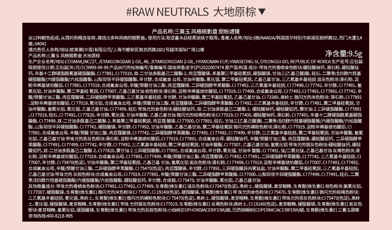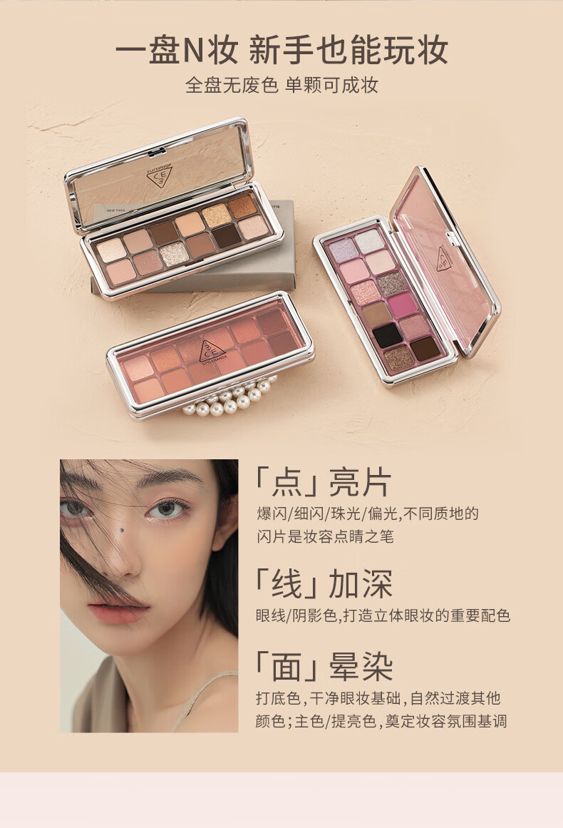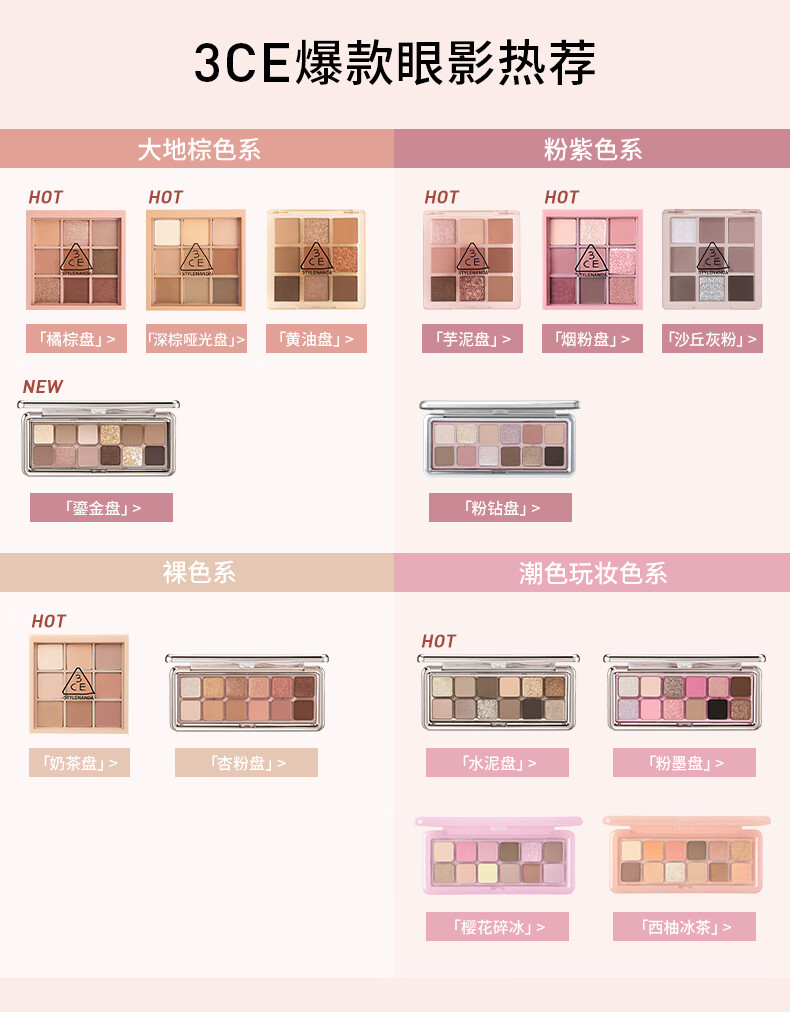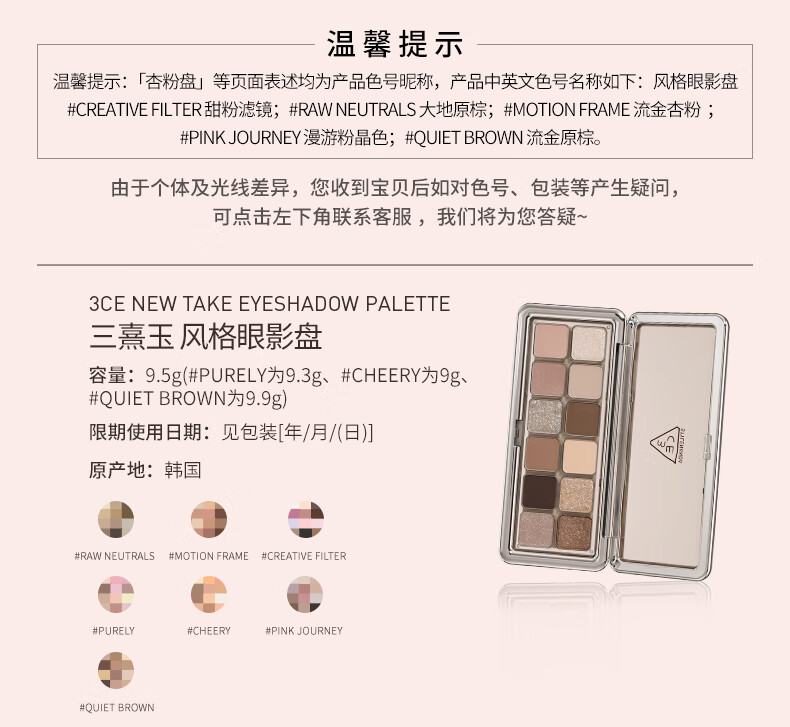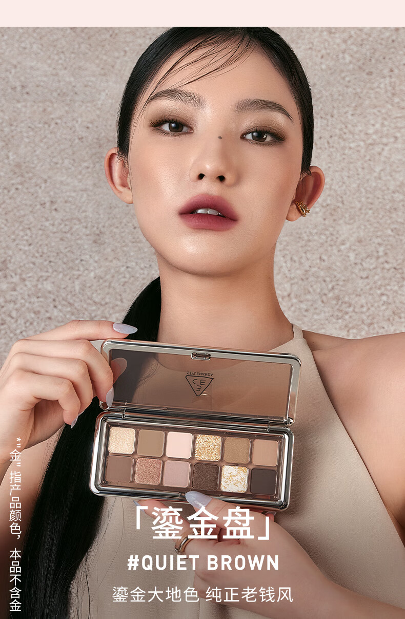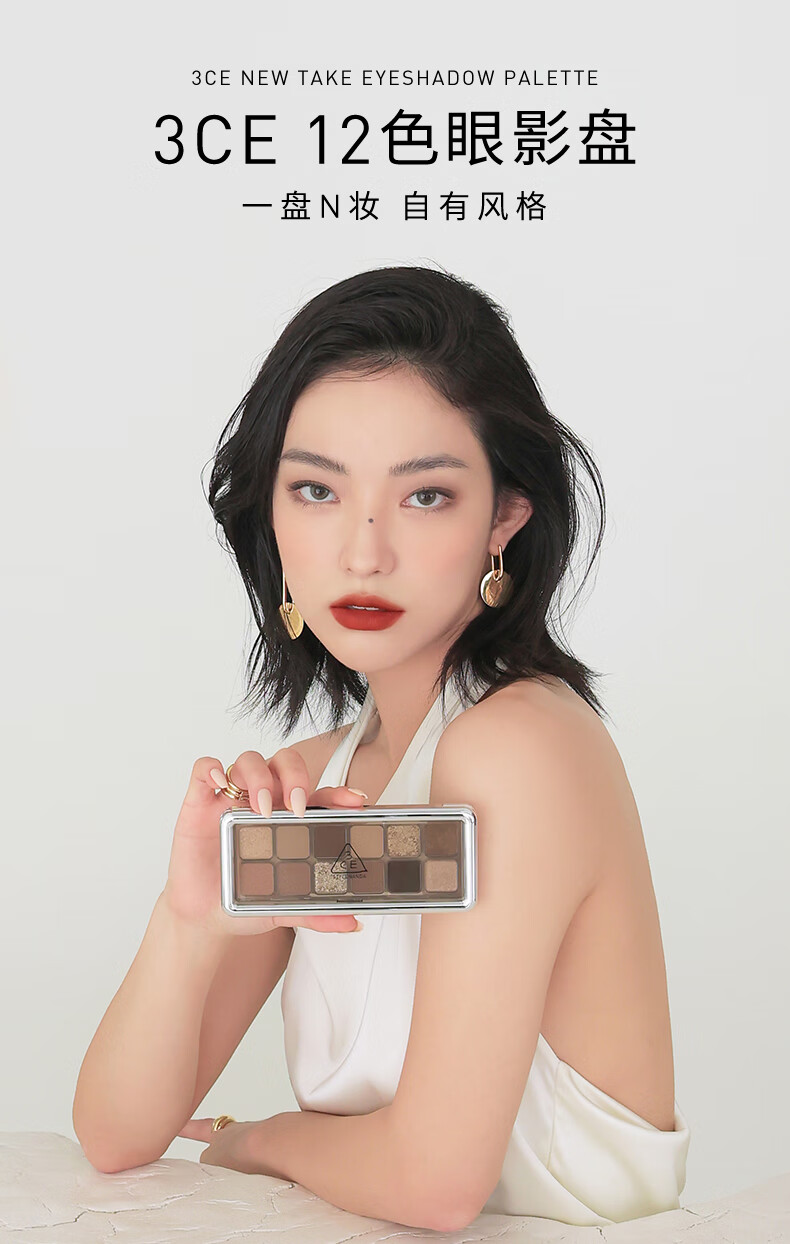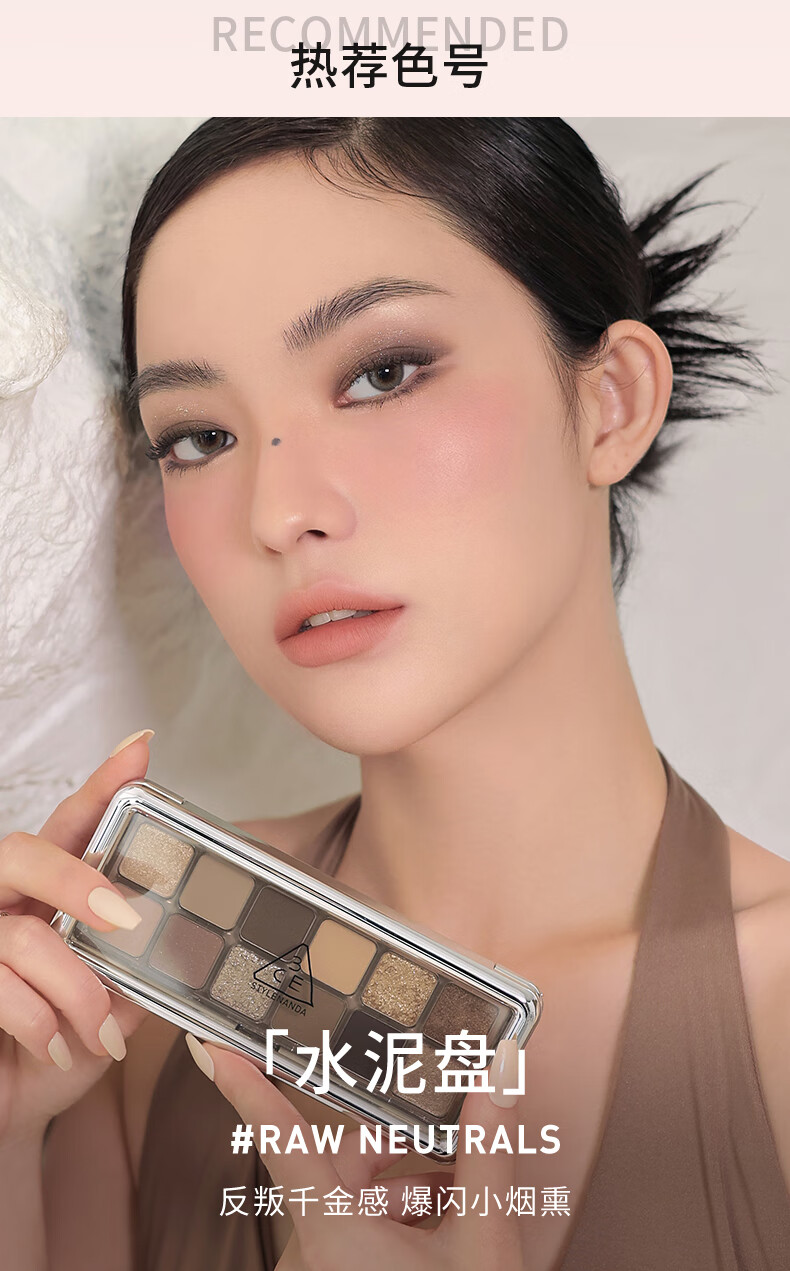 3CE12色眼影大地原棕RAWNEUTRALS水泥盘哑光生日礼物送女友