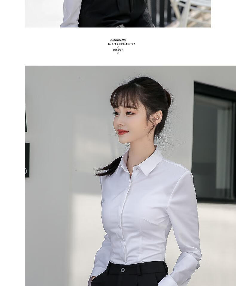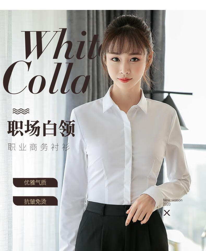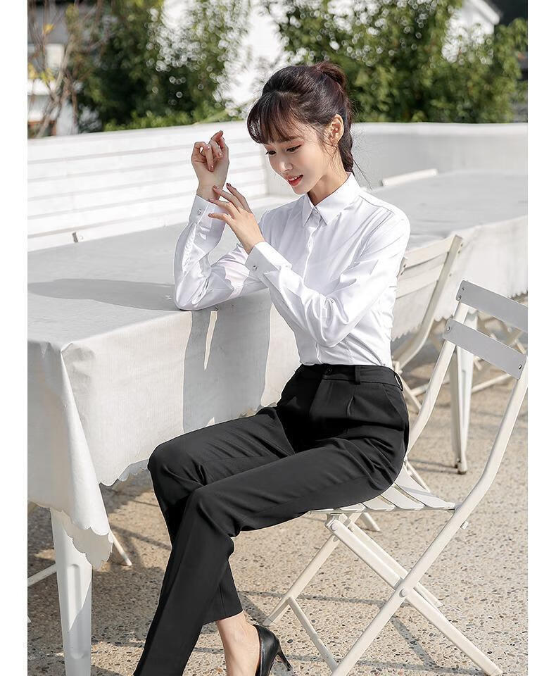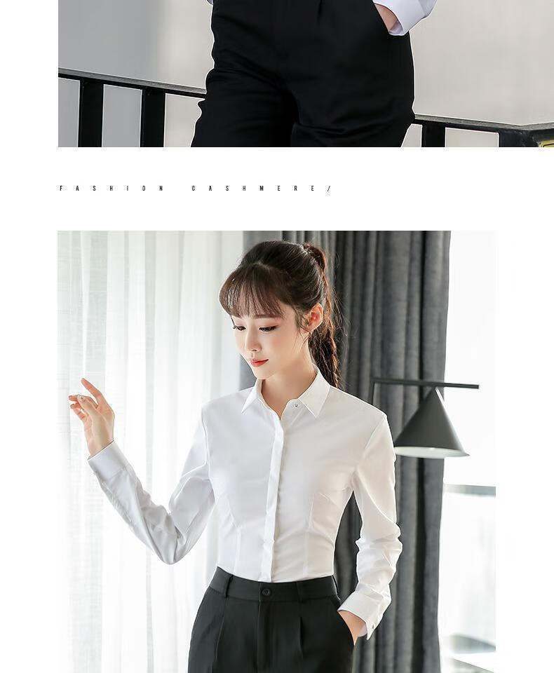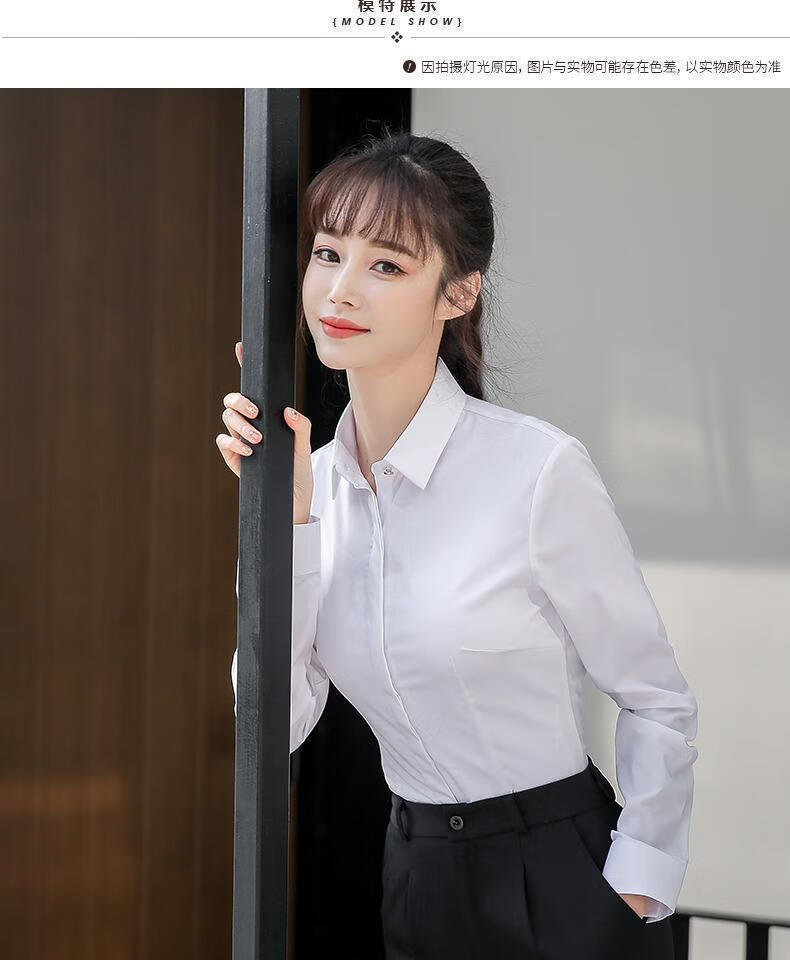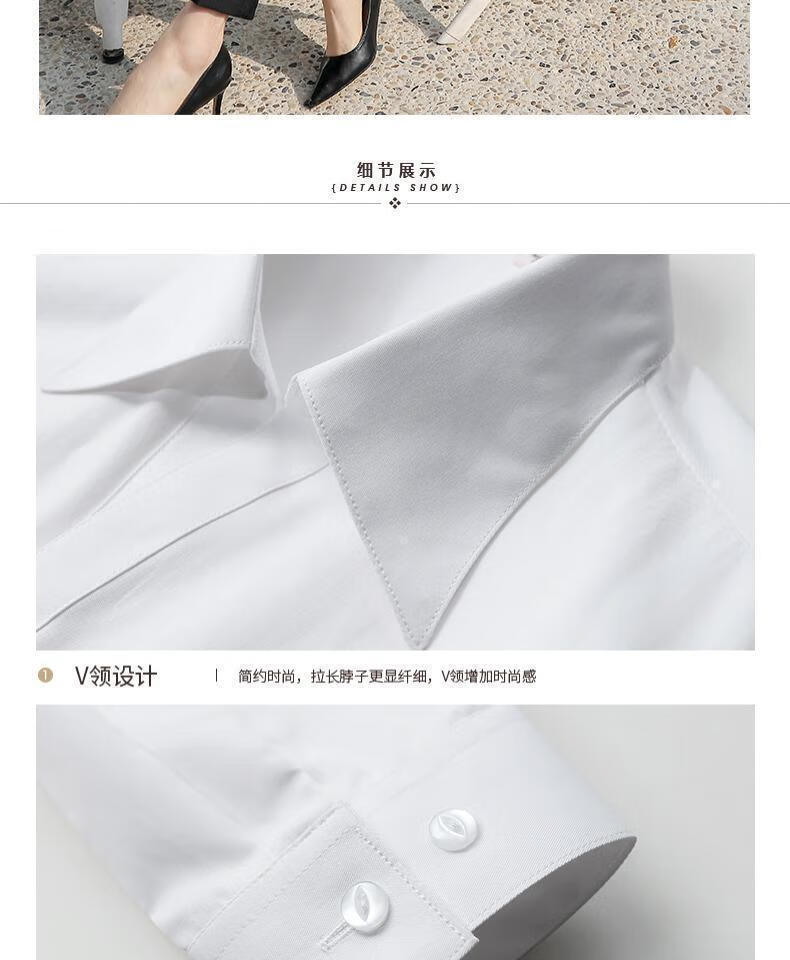 卡奈瑞长袖白色衬衫女职业装商务休闲修身新款棉衬衣银行面试正装工作服 白色【方.领】明扣 XL /38 建议110-120斤【修身】