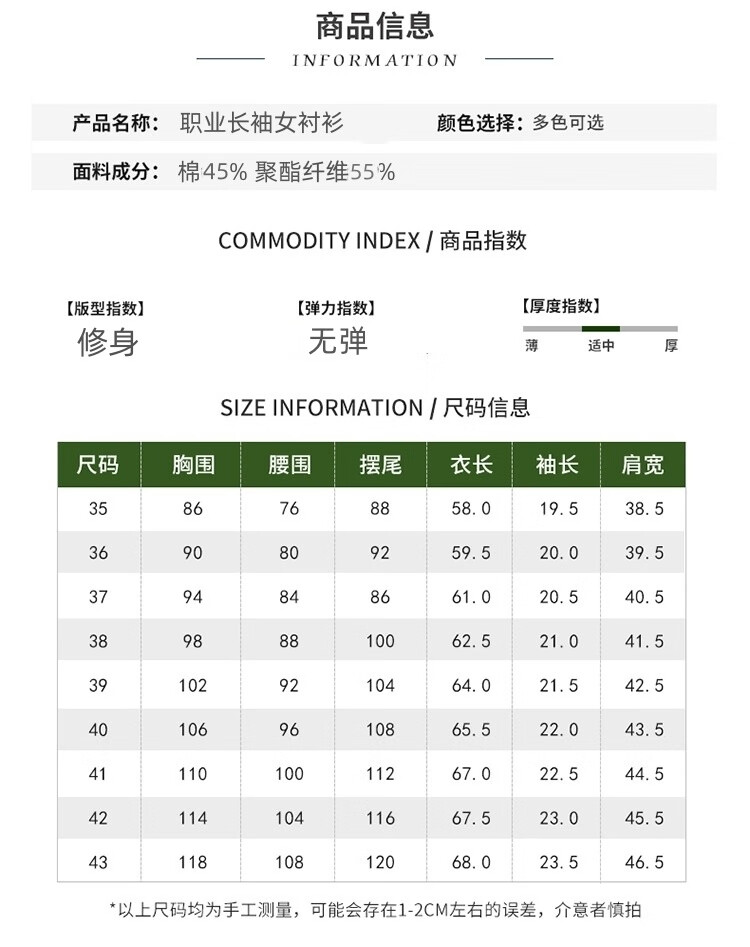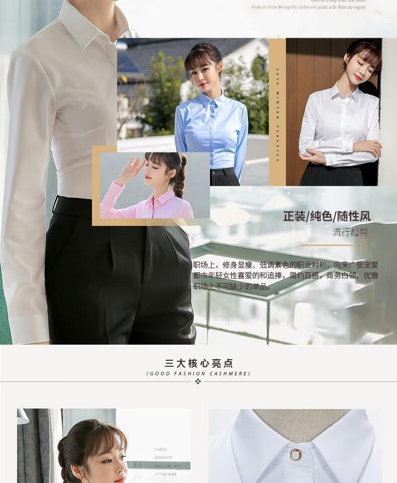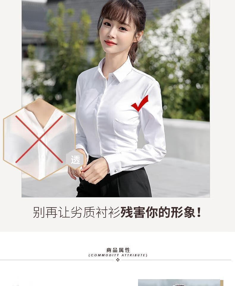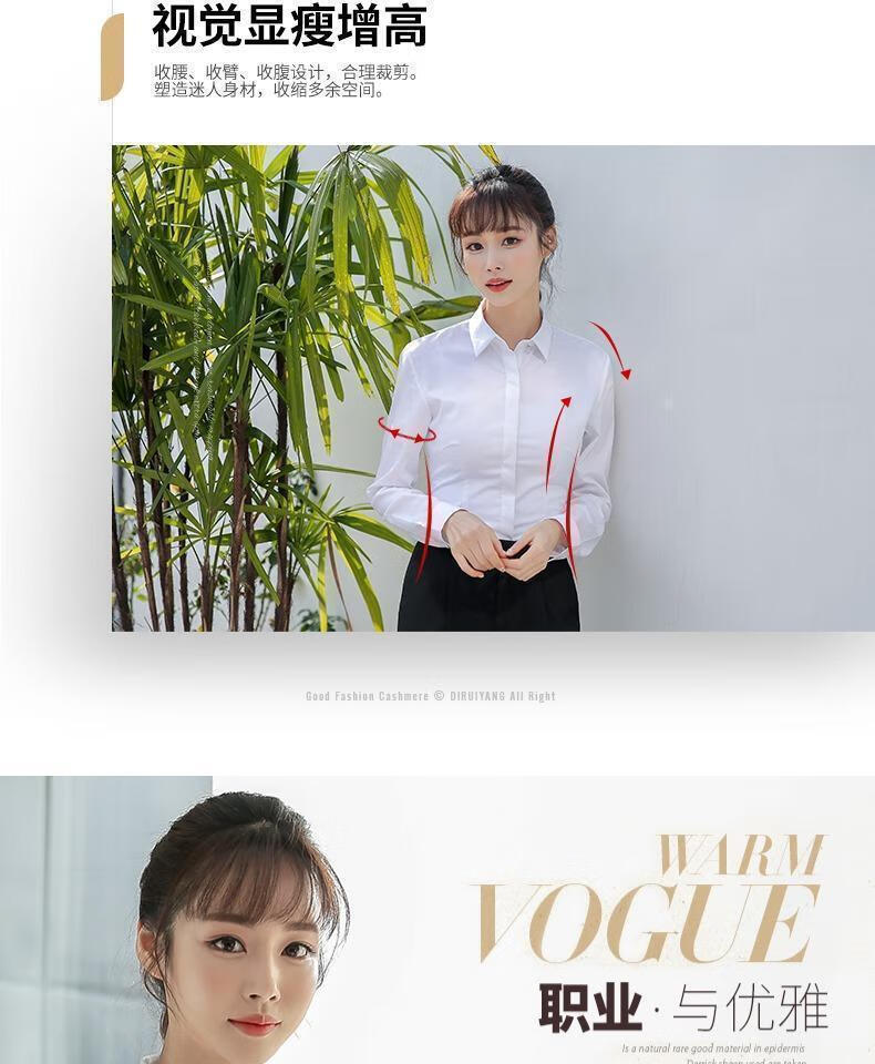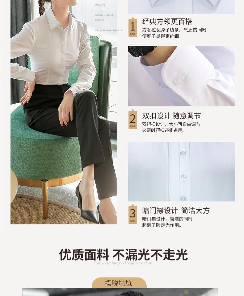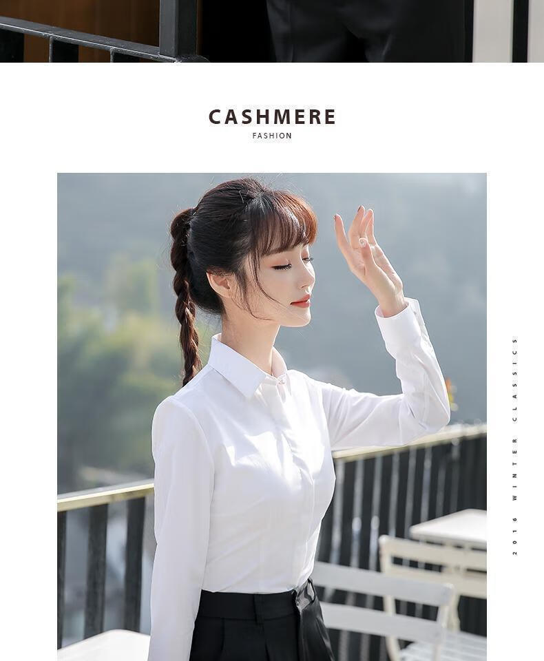 卡奈瑞长袖白色衬衫女职业装商务休闲修身新款棉衬衣银行面试正装工作服 白色【方.领】明扣 XL /38 建议110-120斤【修身】