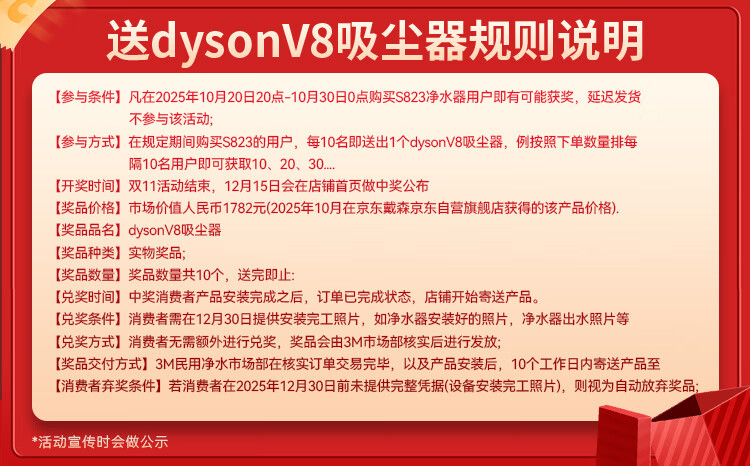 3M净水器家用 直饮 RO反渗透 S823 厨下800G 大通量家用2L/min纯水机5年长效RO膜净饮机 S823+F41升级电动款前置(6吨流量)