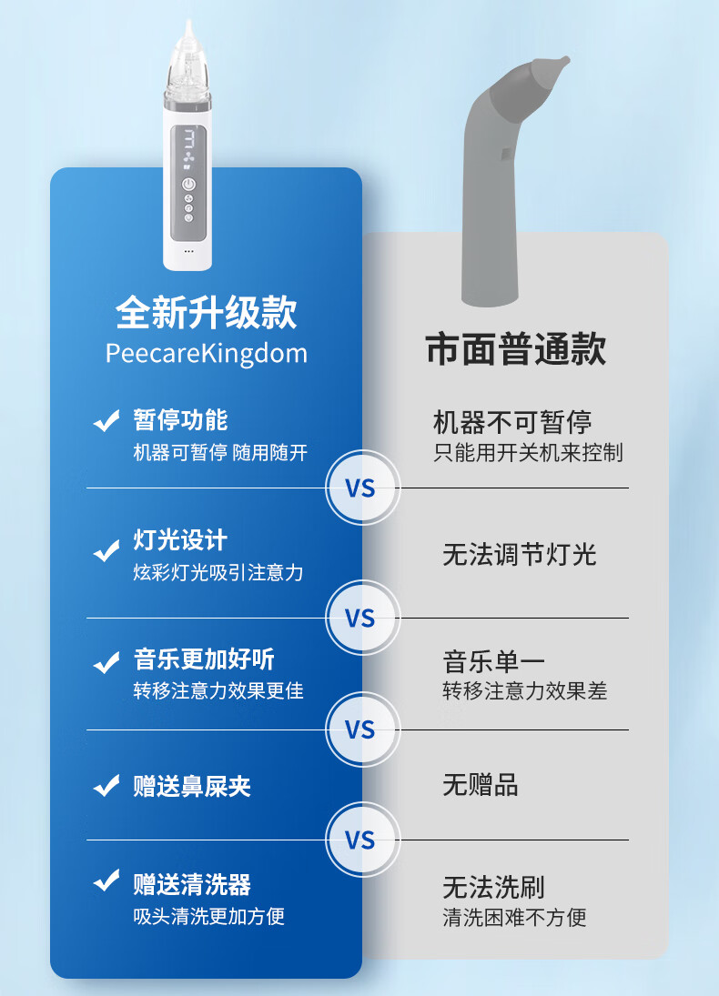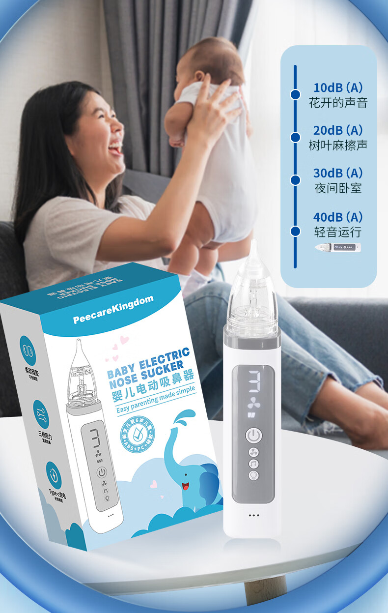 PEECAREKINGDOM电动吸鼻器 新生婴幼儿童宝宝 通鼻腔鼻涕清洗洁神器 3档充电款 象牙白+鼻腔盐水喷雾75ml