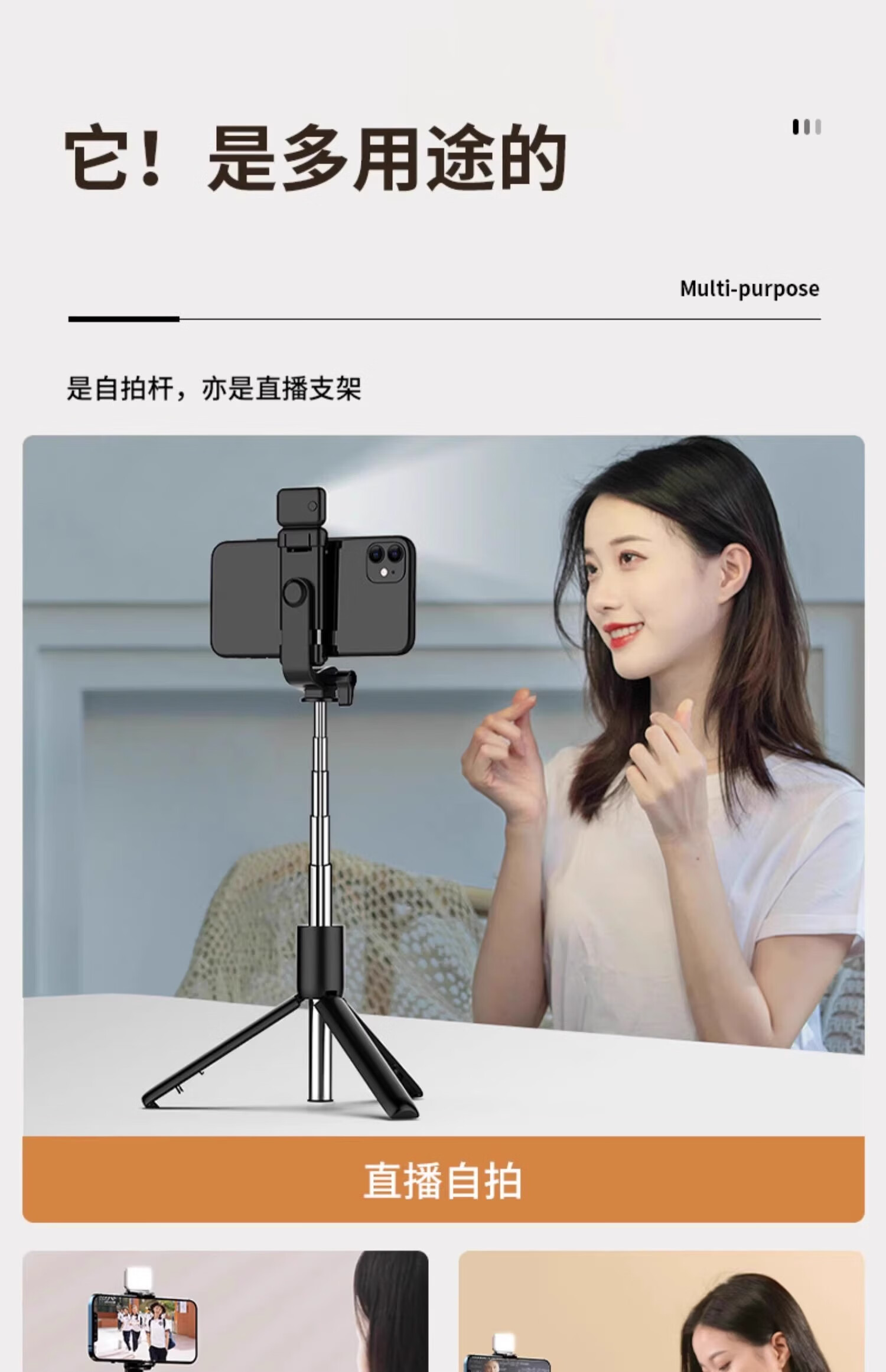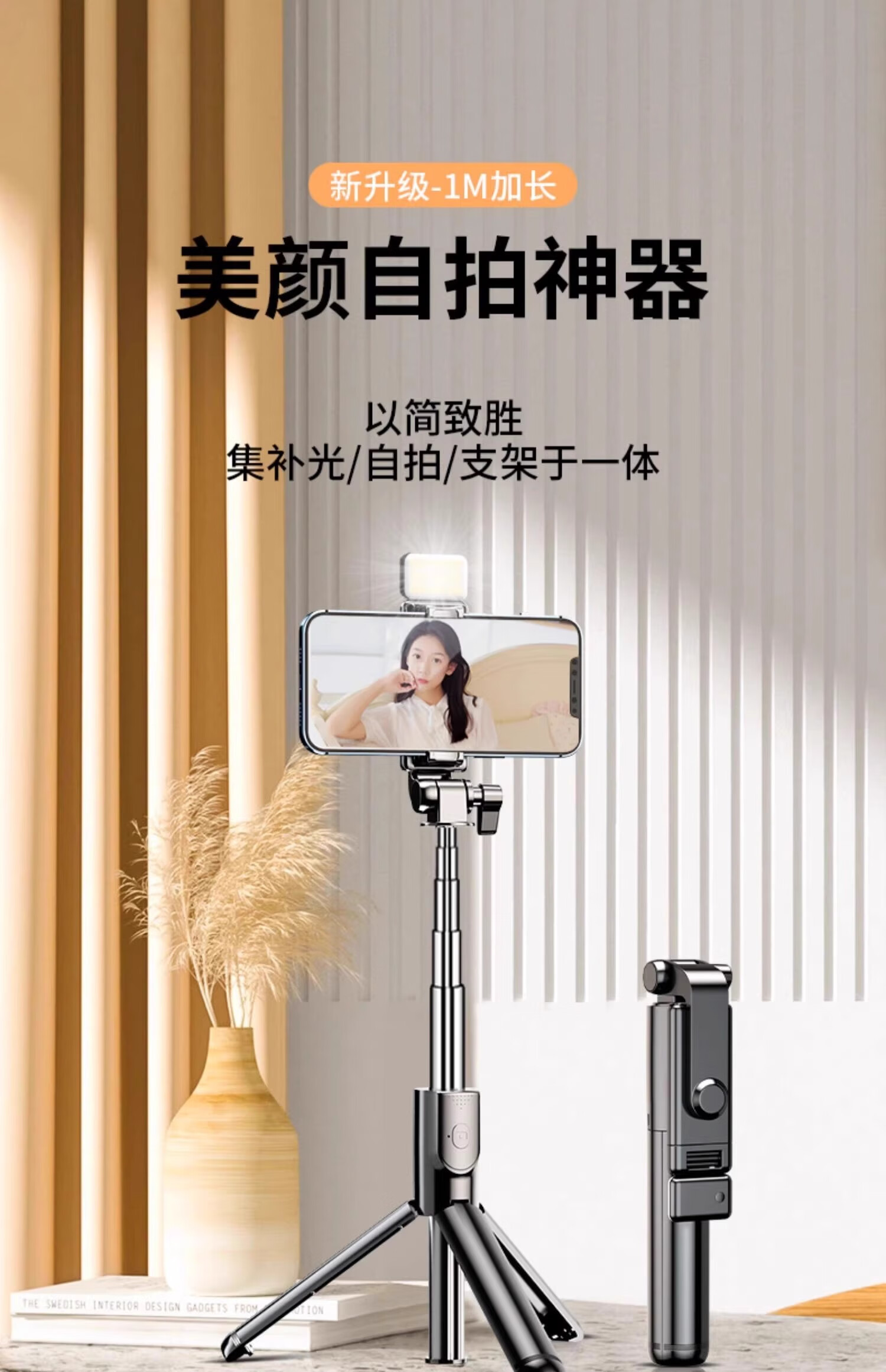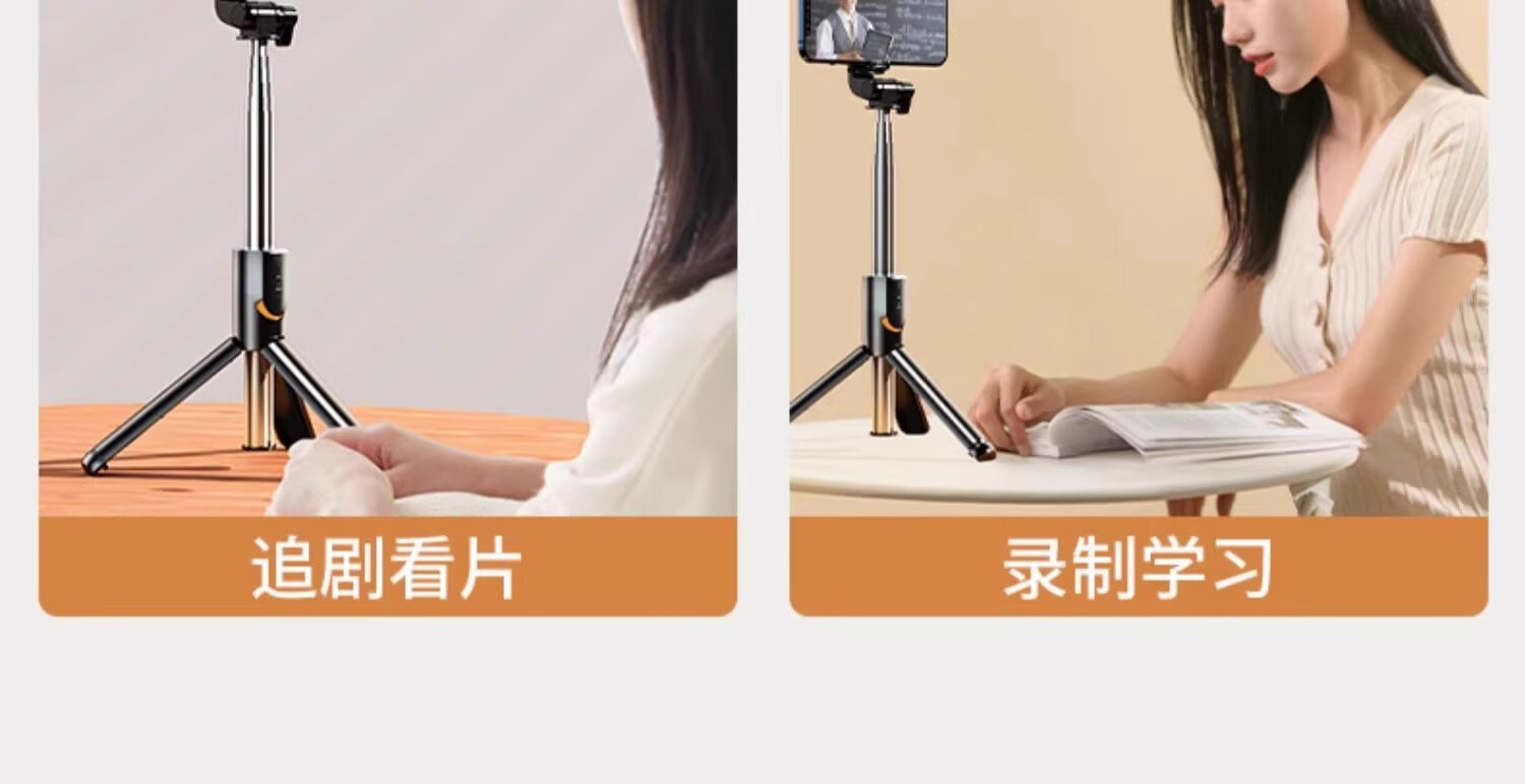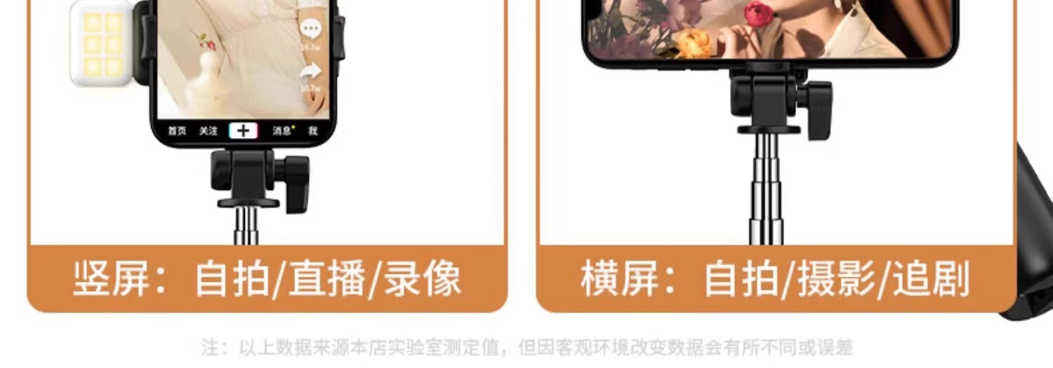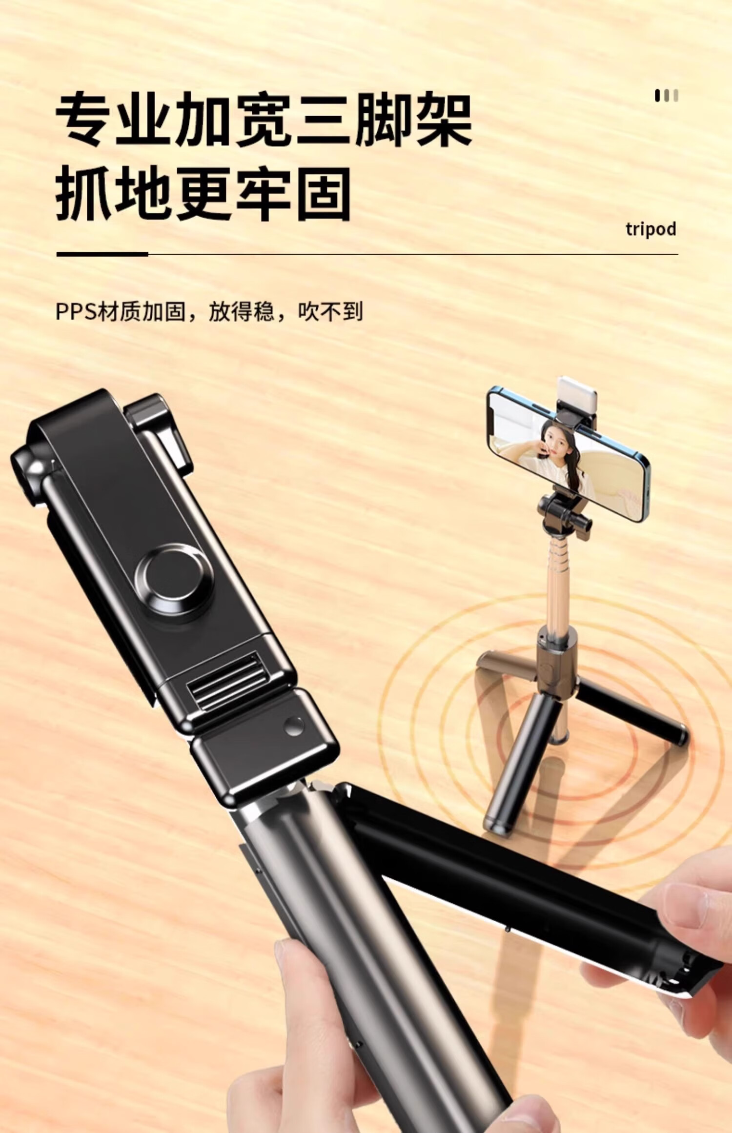 手机支架自拍杆三脚架落地通用拍照神器360度旋转旅游便携蓝牙遥控一体手持直播支架拍摄防抖稳定 0.75米黑色/三角支撑底座/15米蓝牙遥控