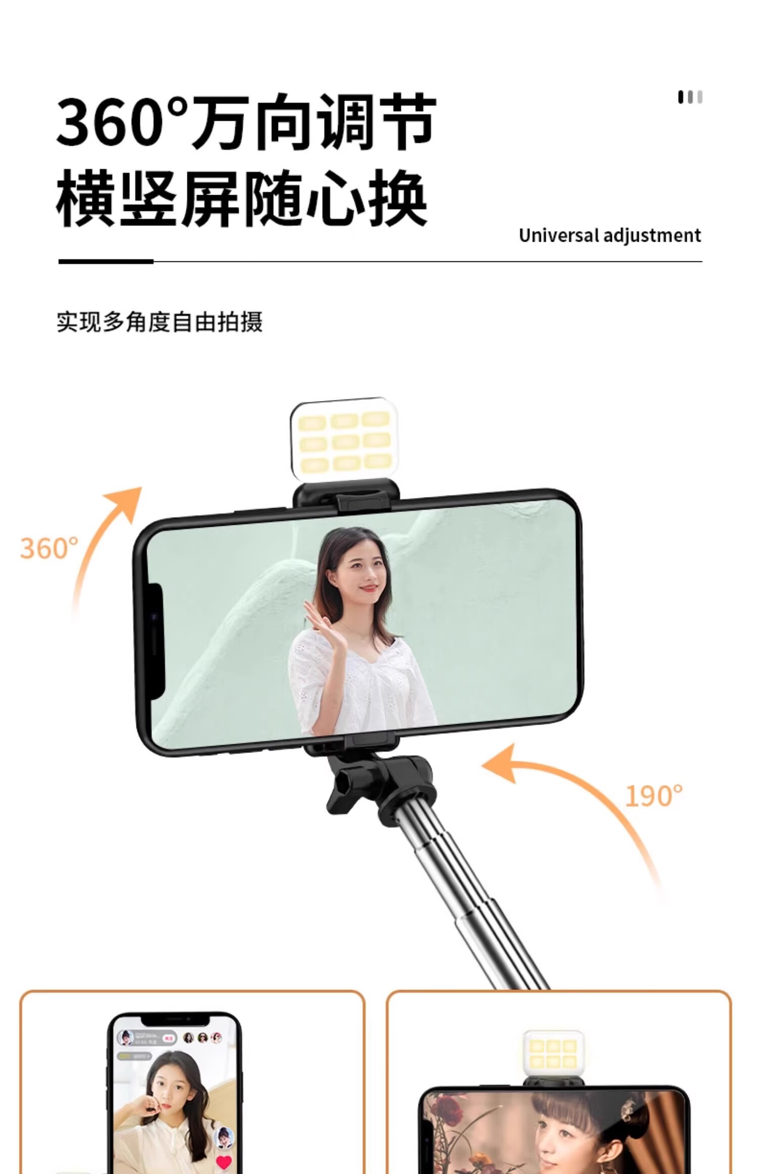 【全网爆款】补光灯自拍神器 手机直播三档调节美颜嫩肤 小型迷你便携 糖果粉1个【三档补光 美颜嫩肤】送充电线
