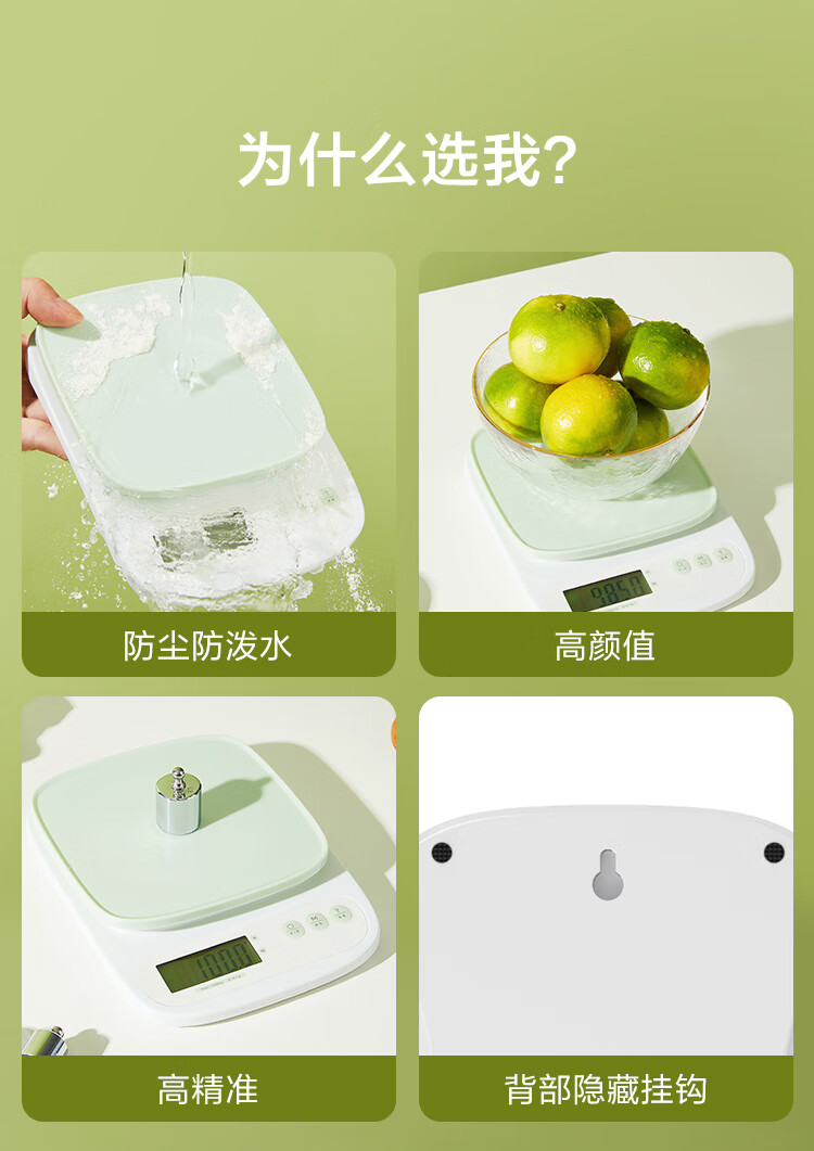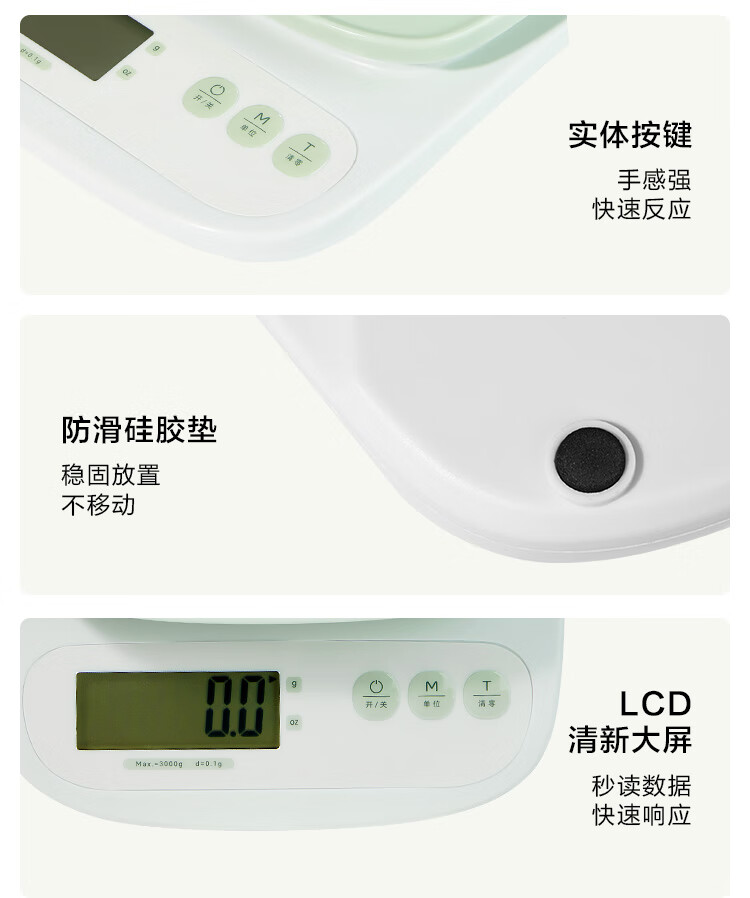 京东京造 厨房秤 家用电子秤 厨房克秤 厨房烘焙食物称重 高精度量程3KG