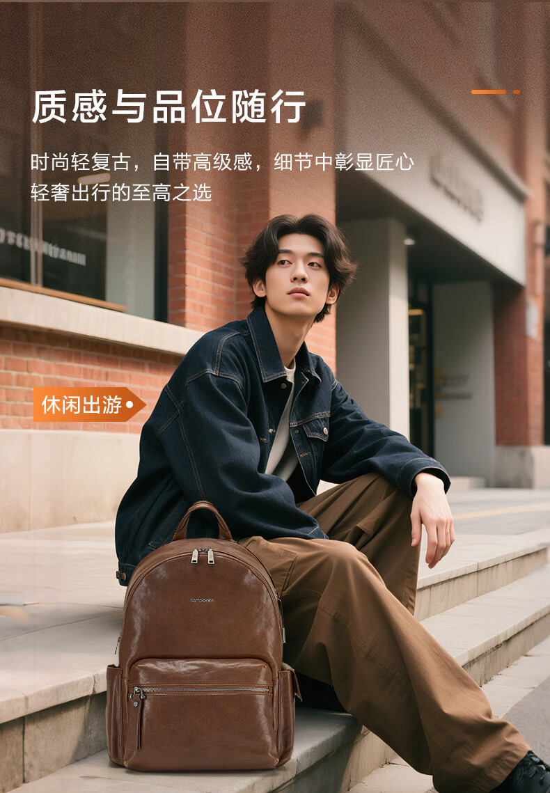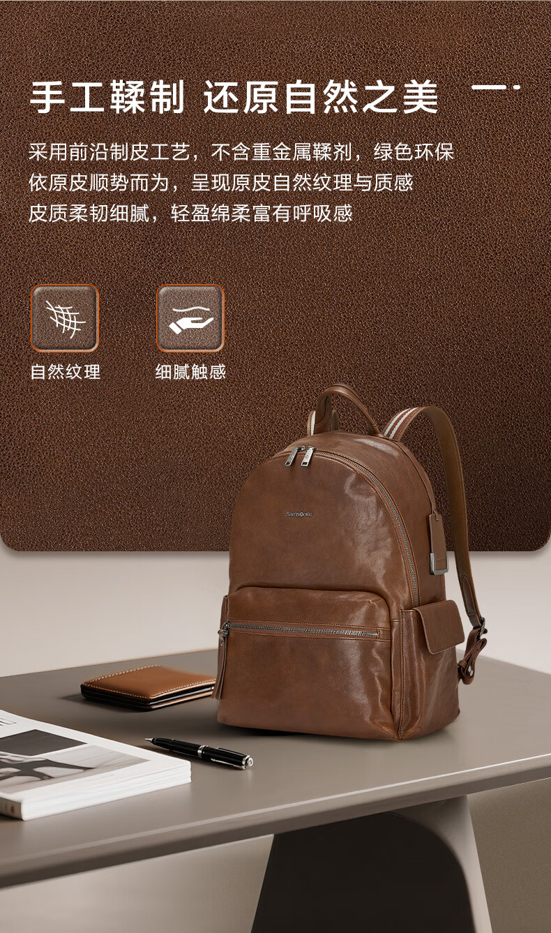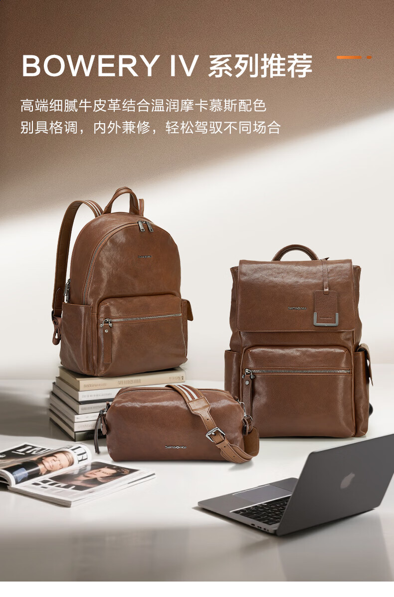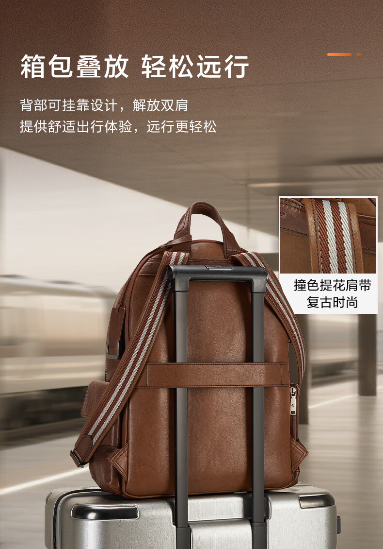 新秀丽(Samsonite)男士轻奢双肩包大容量电脑包时尚复古轻便旅行背包男士礼物NS1