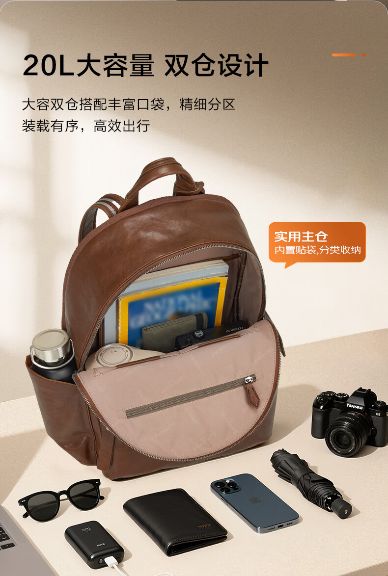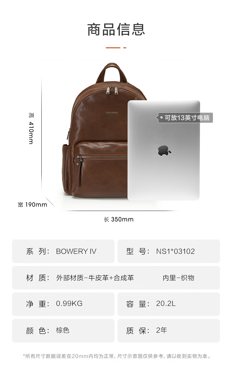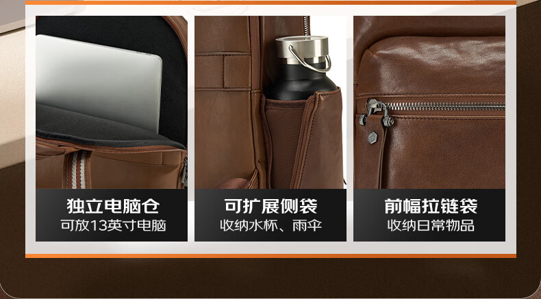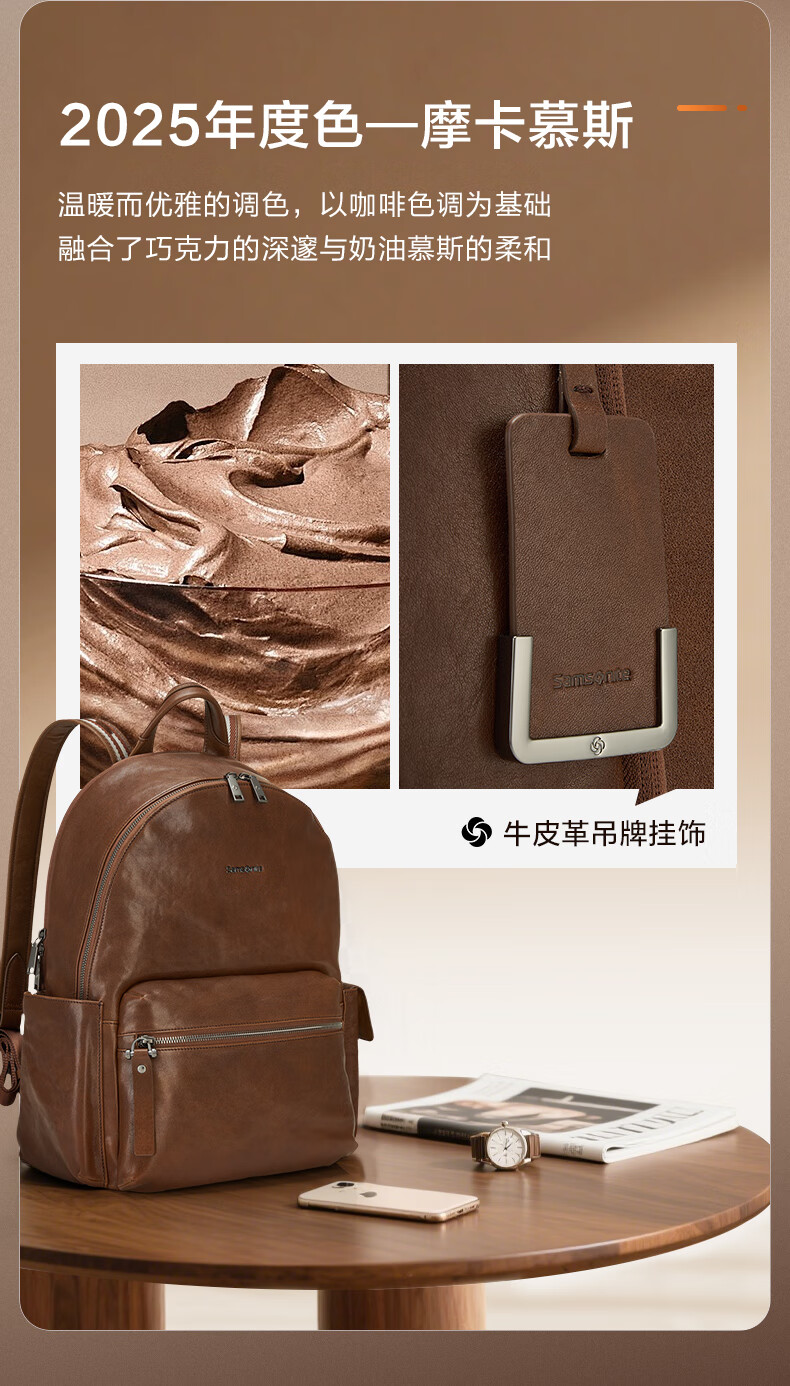 新秀丽(Samsonite)男士轻奢双肩包大容量电脑包时尚复古轻便旅行背包男士礼物NS1