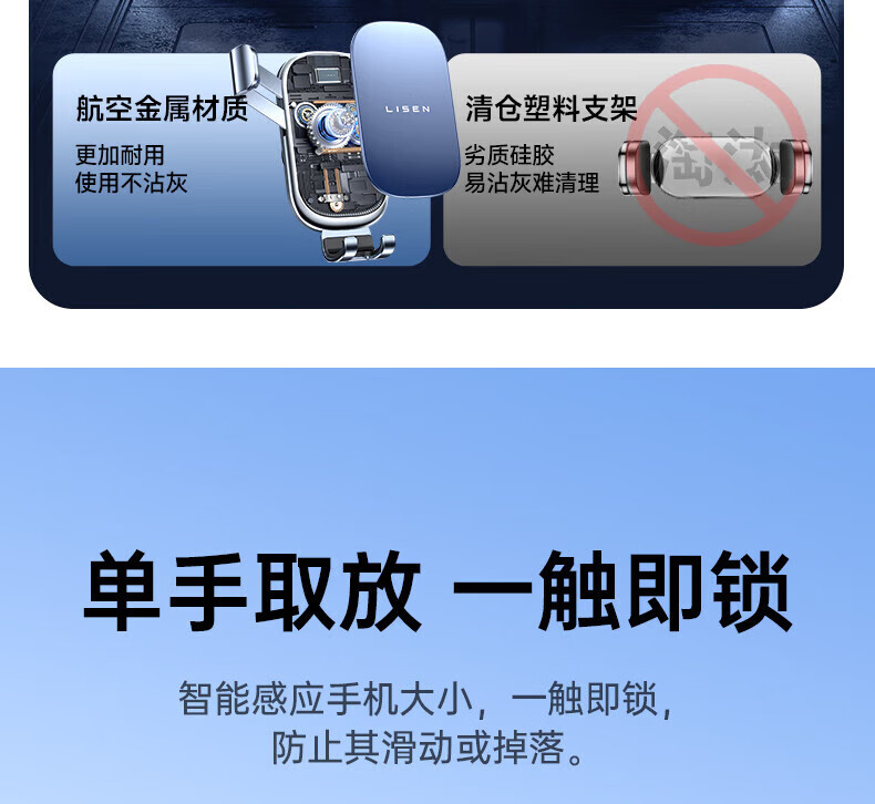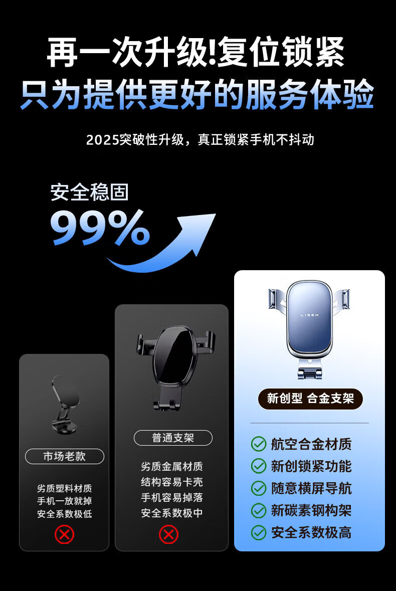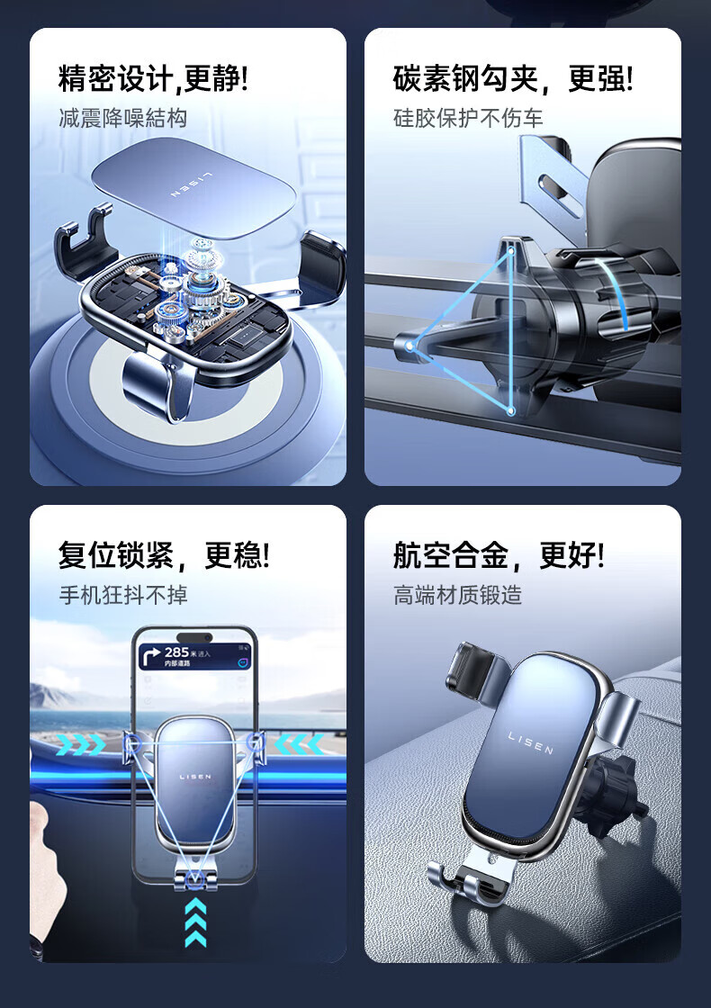 李森(LISEN)【双重锁紧】车载手机支架2025新款出风口汽车专用导航