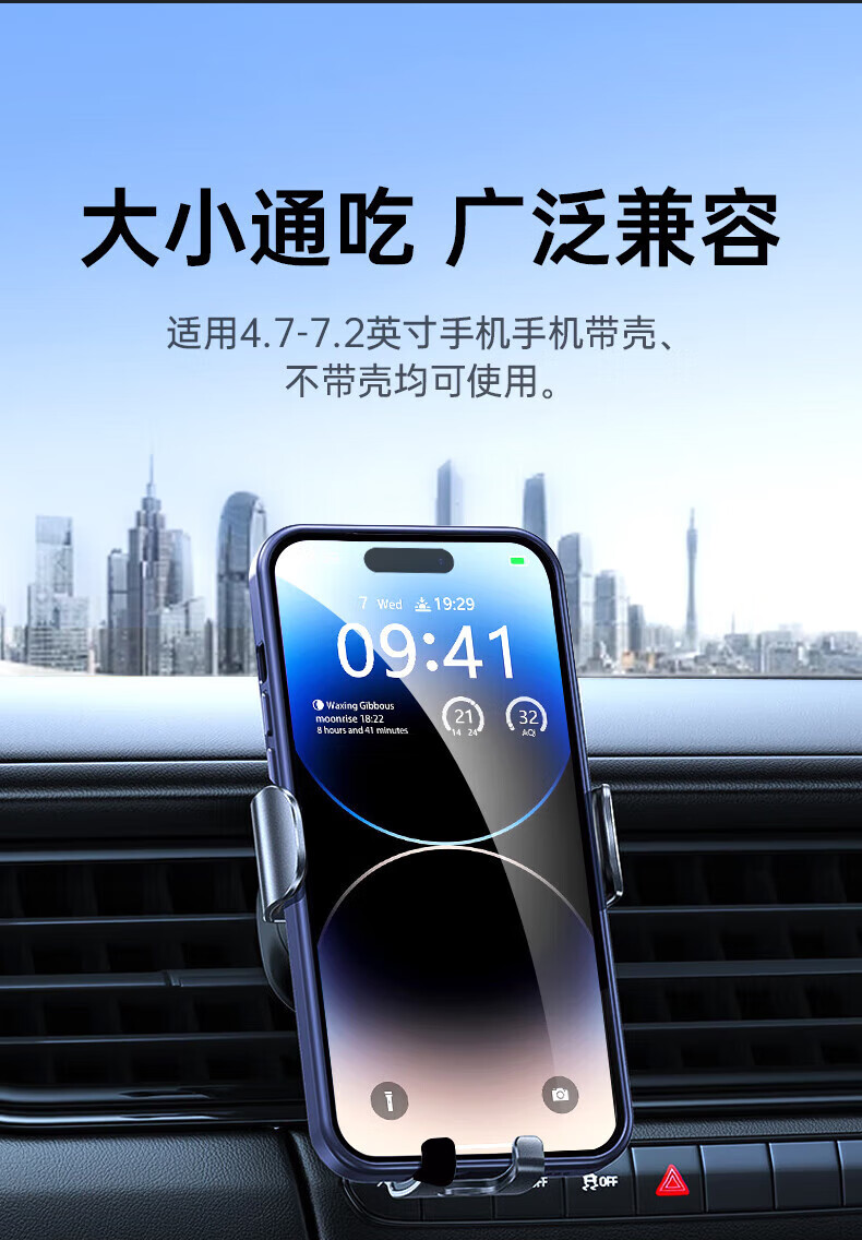 倍思 车载手机支架 汽车出风口导航无线充电器全自动快充苹果安卓通用