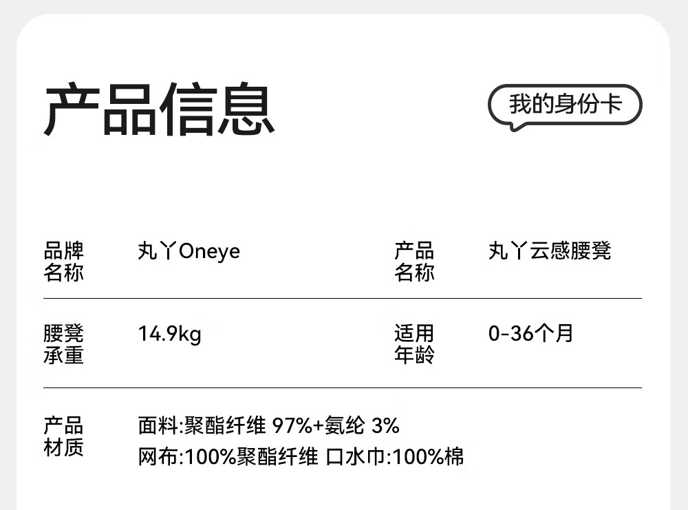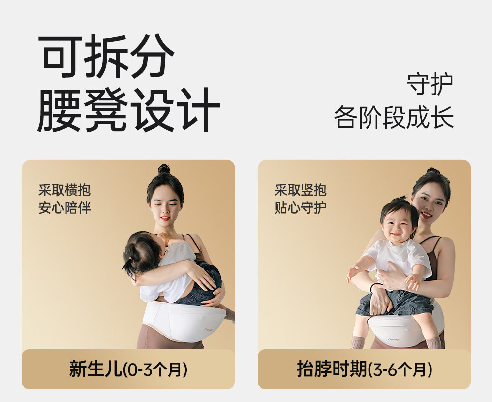 丸丫云感腰凳婴儿轻便抱式宝宝背带多功能透气四季通用抱娃神器黑金色