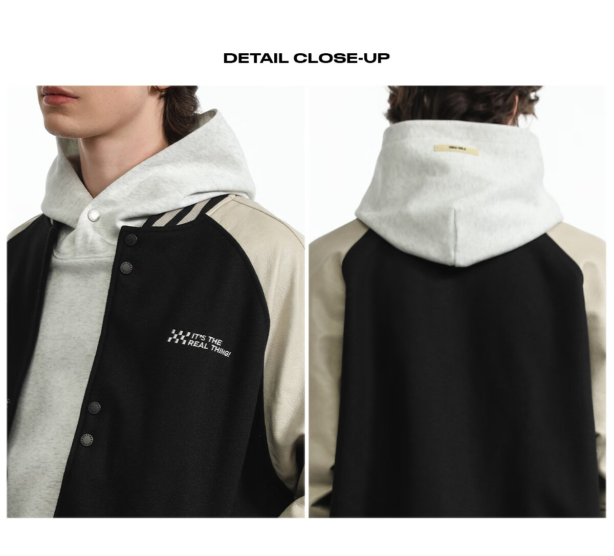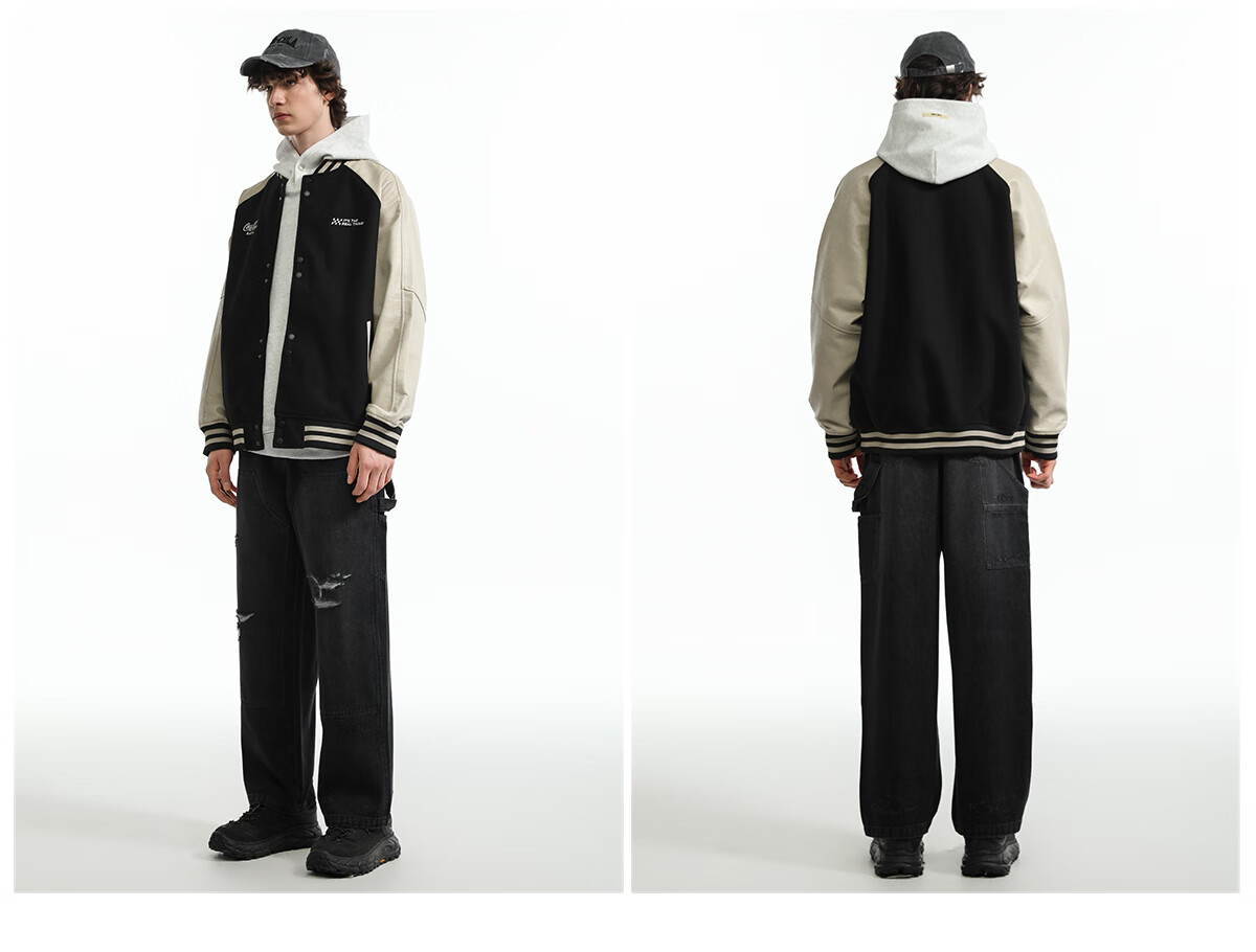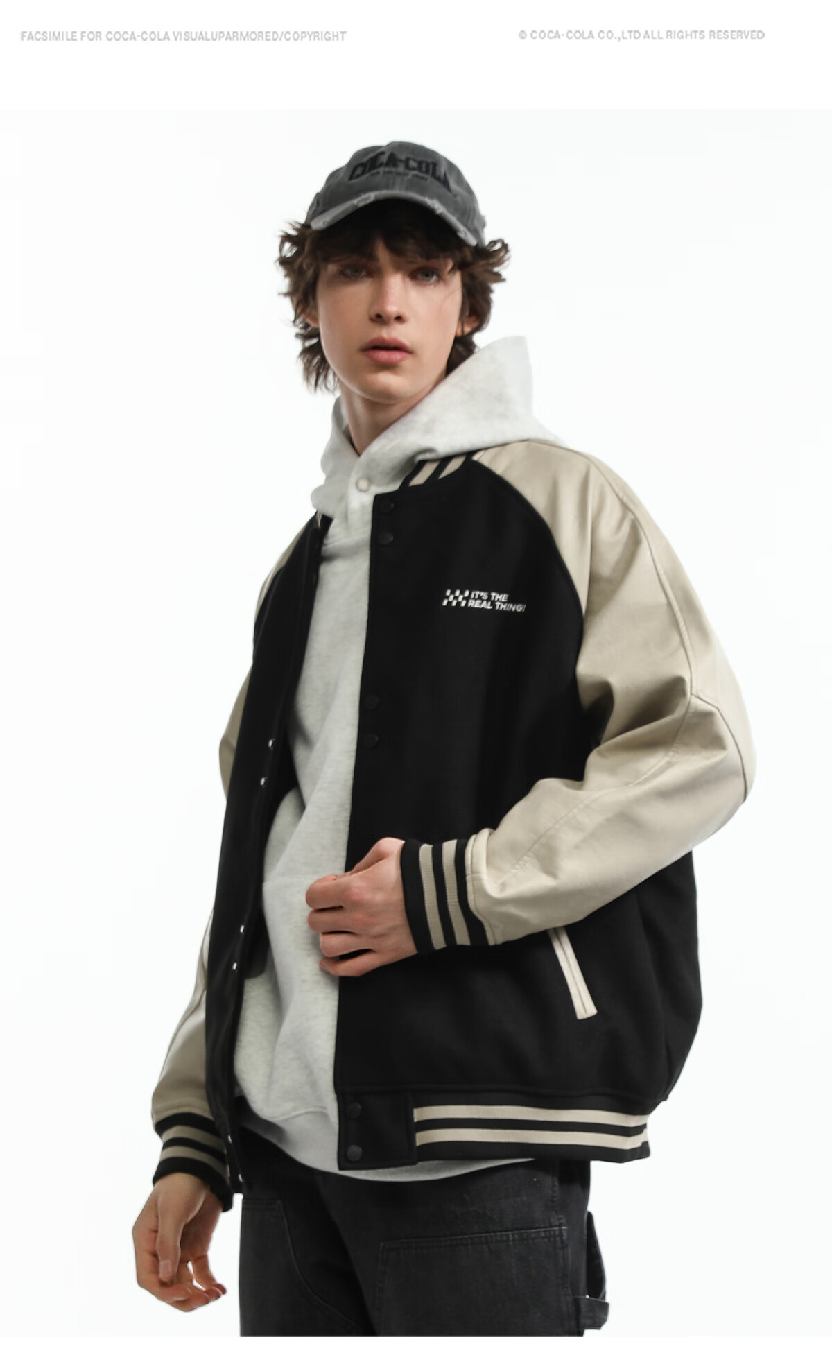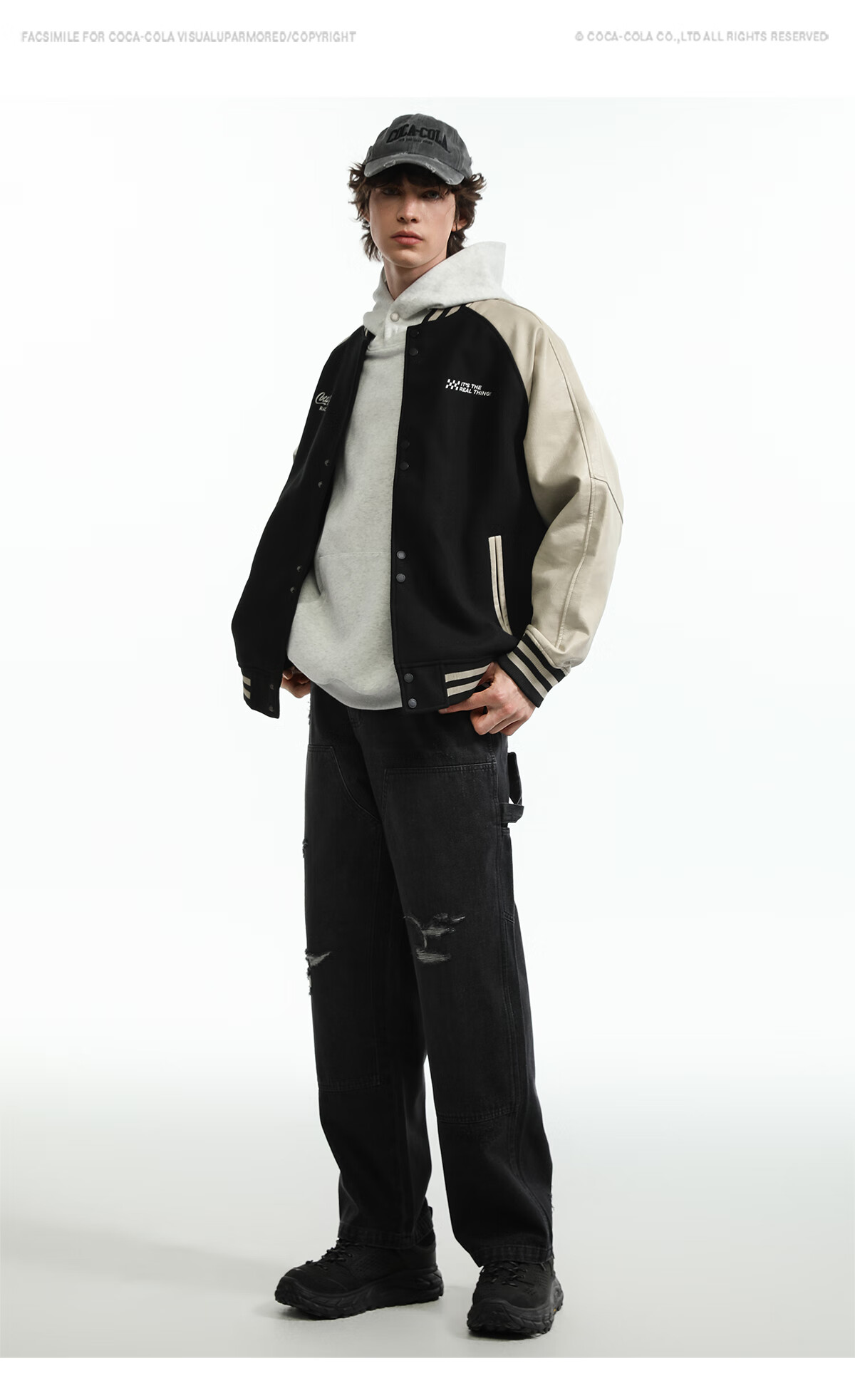 可口可乐(Coca-Cola) PU皮夹克男美式刺绣春秋款外套毛呢棒球服女 黑色 S