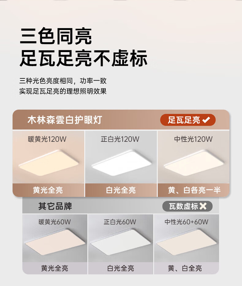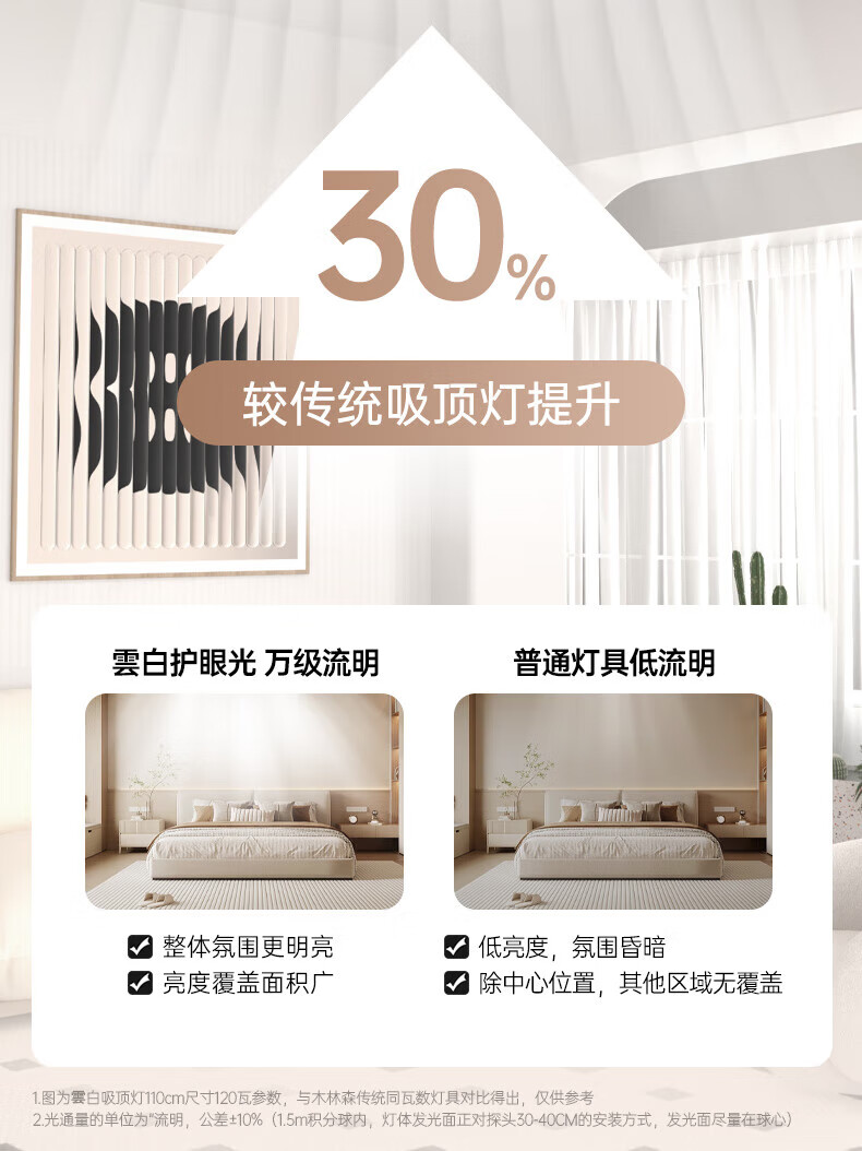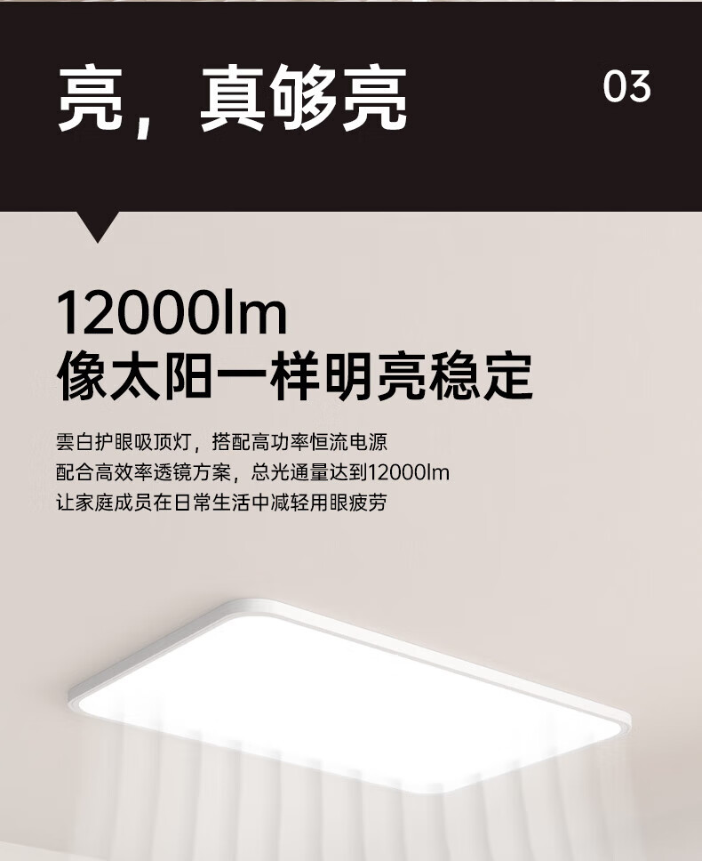 木林森照明吸顶灯米家接入全光谱智能儿童护眼灯客厅灯雲白120W【包安装】