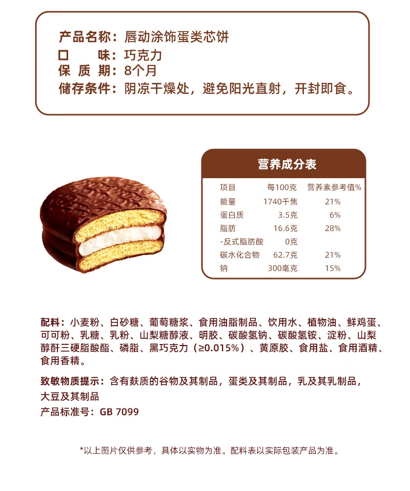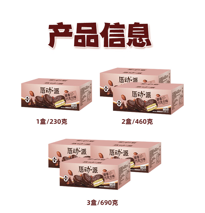 唇动巧克力派10枚230g营养早餐蛋糕面包点心成人休闲零食解馋