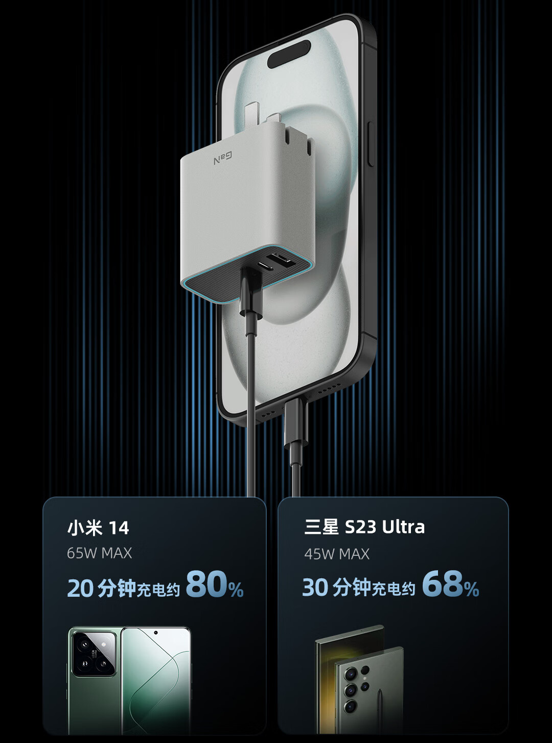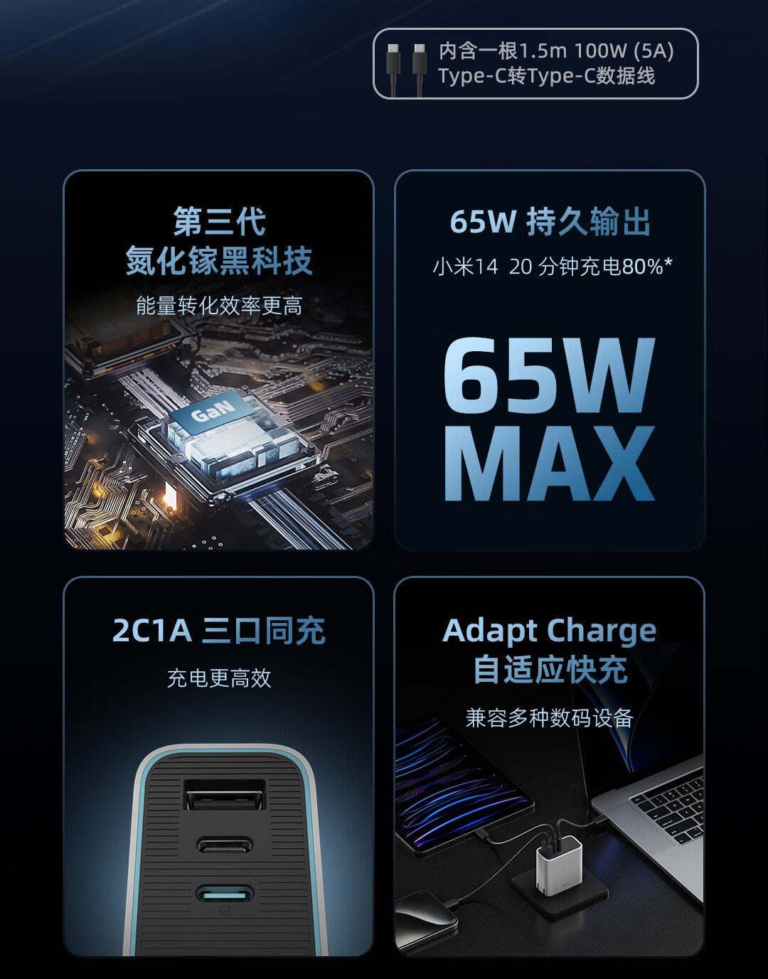 CUKTECH酷态科65W氮化镓充电器套装兼容40W 适用小米/苹果17pd多口Type-C快充头华为Mate70手机笔记本电脑