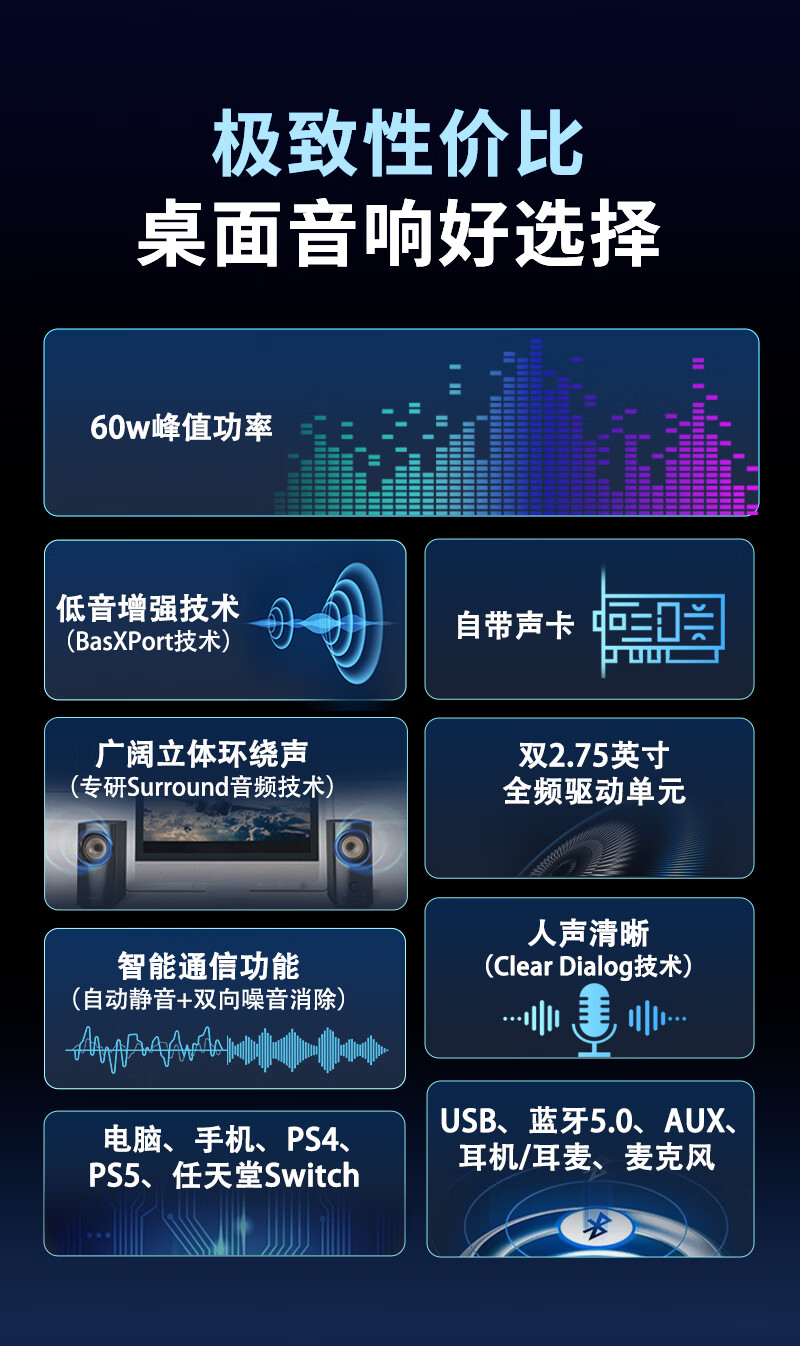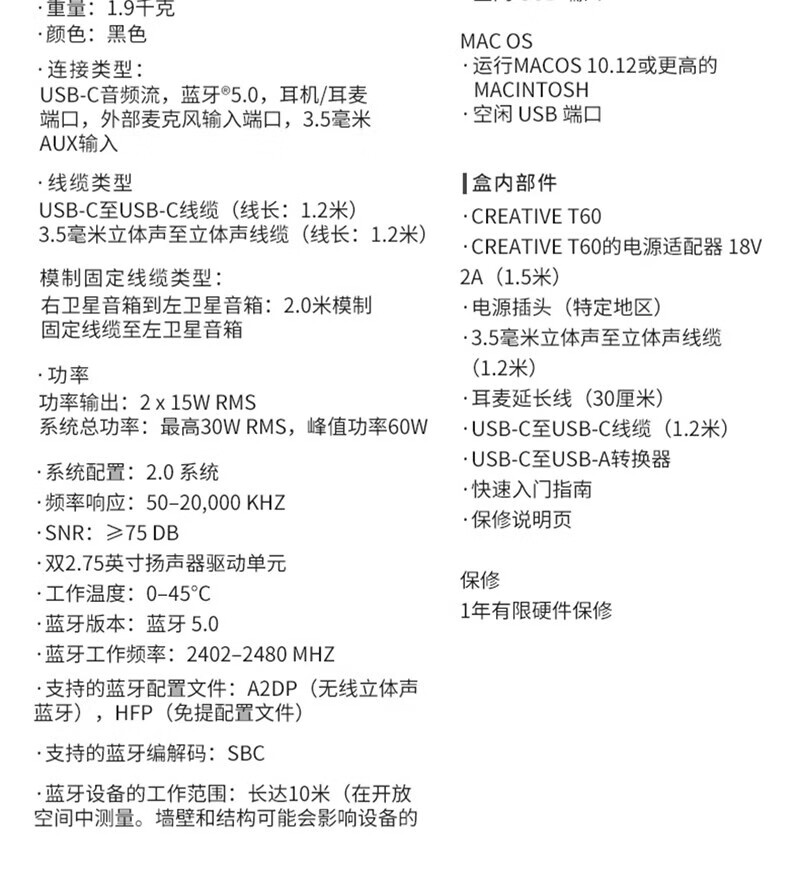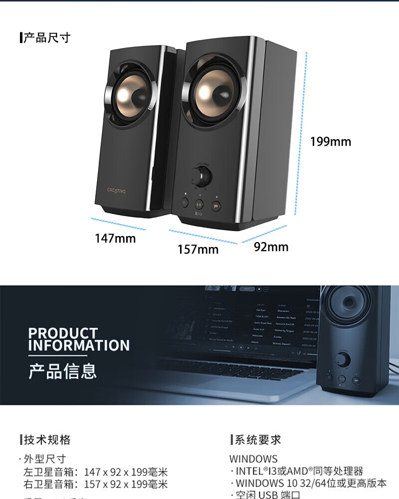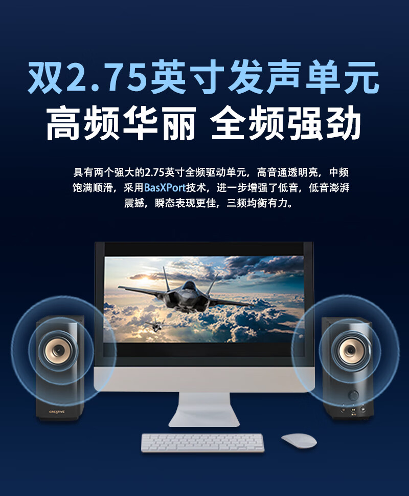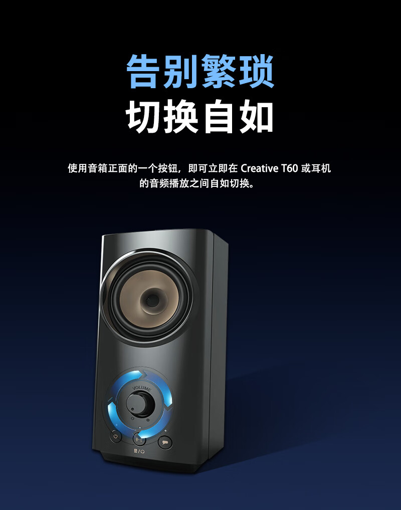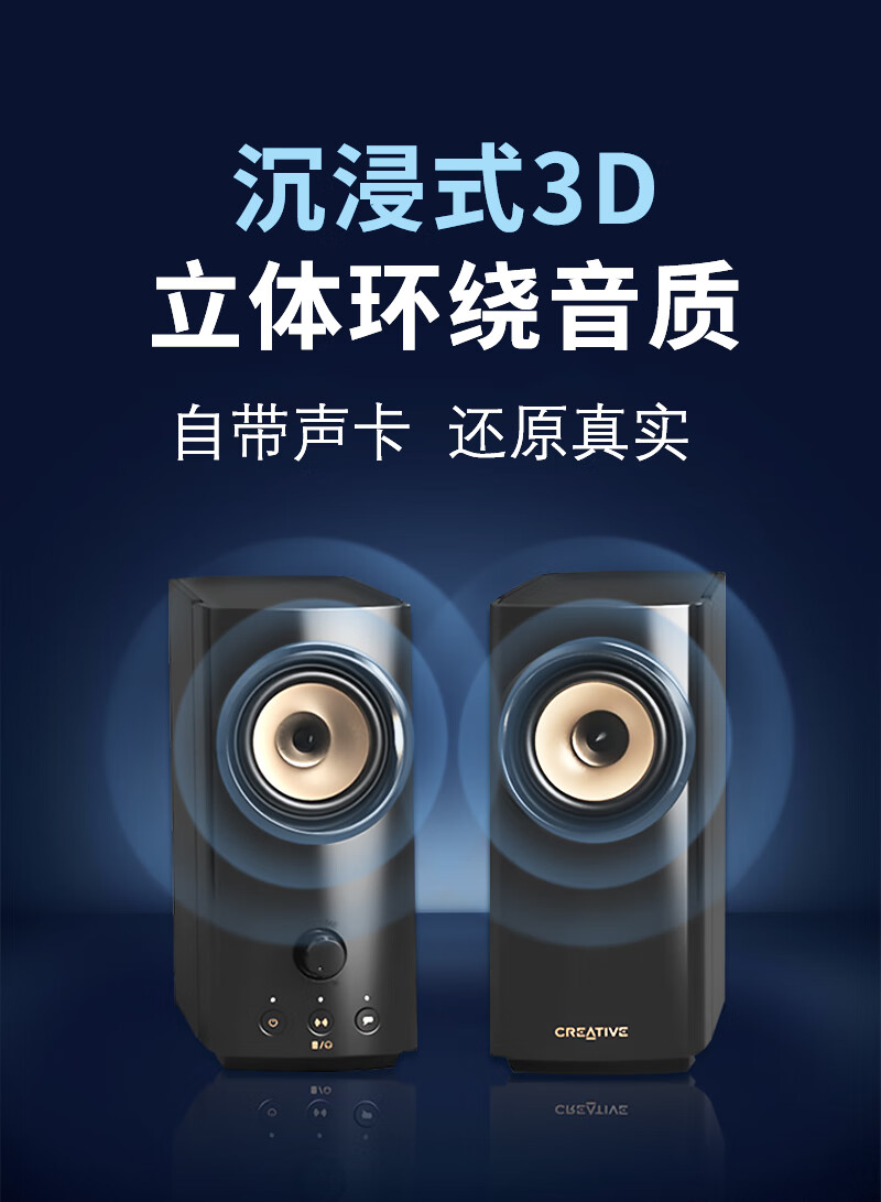 创新(Creative) T60桌面蓝牙音箱2.0HIFI沉浸环绕多声道重低音发烧级电脑家用音响