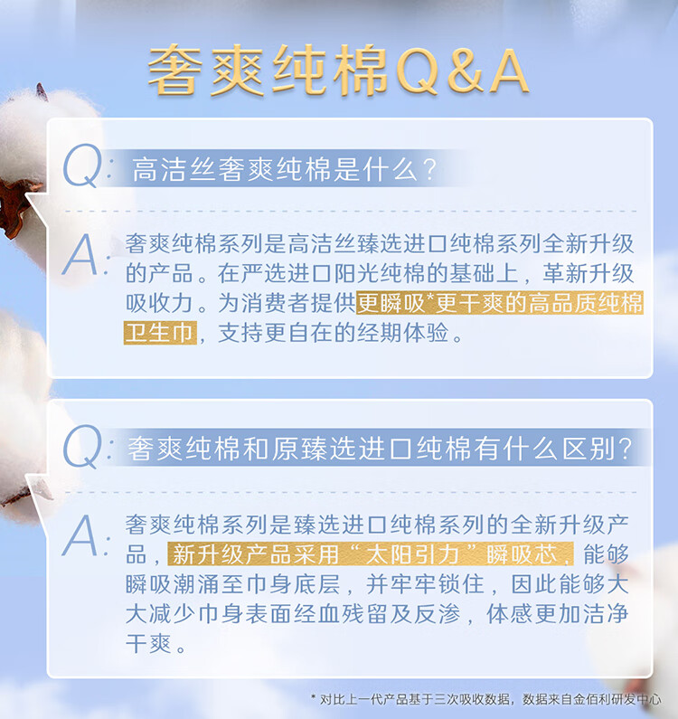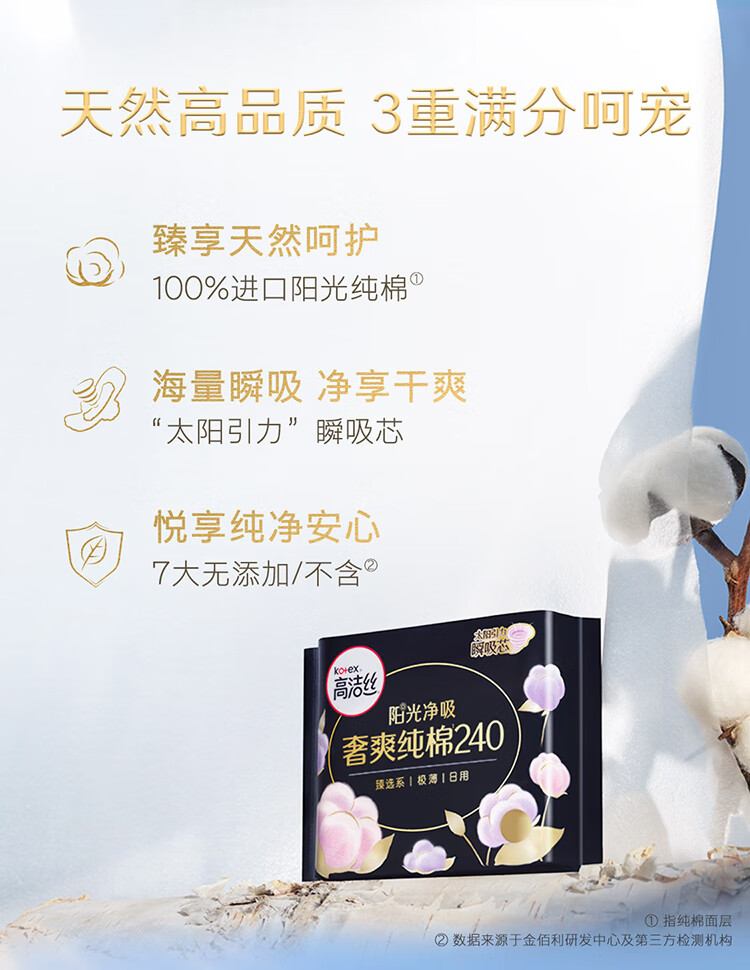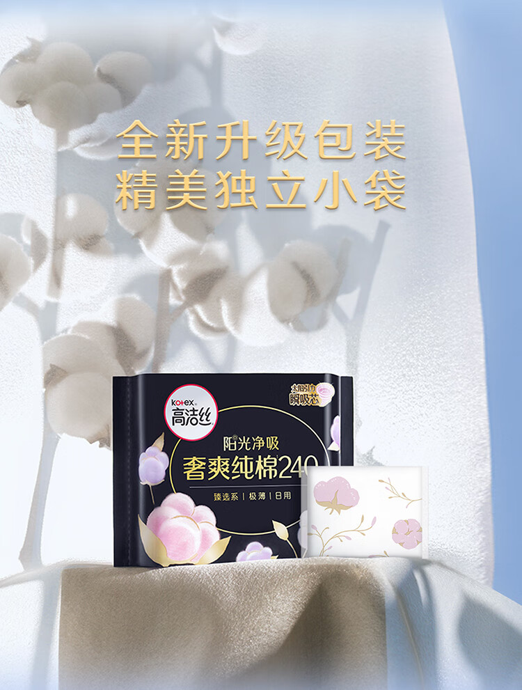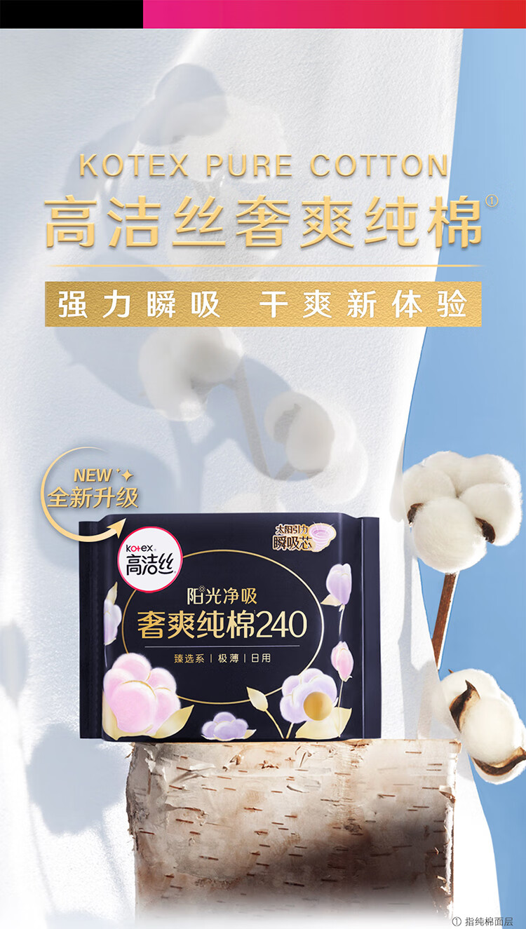 高洁丝【纯棉NO.1】臻选奢爽卫生巾240mm48片日用姨妈巾京东自营旗舰店