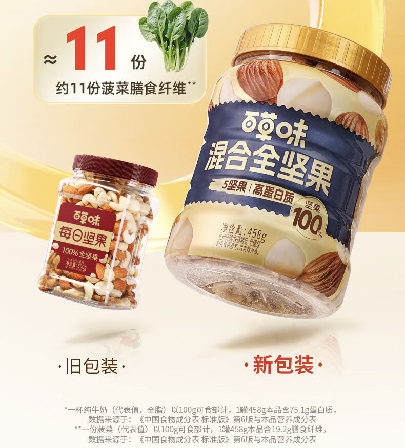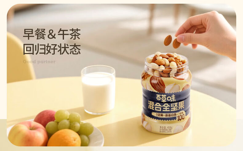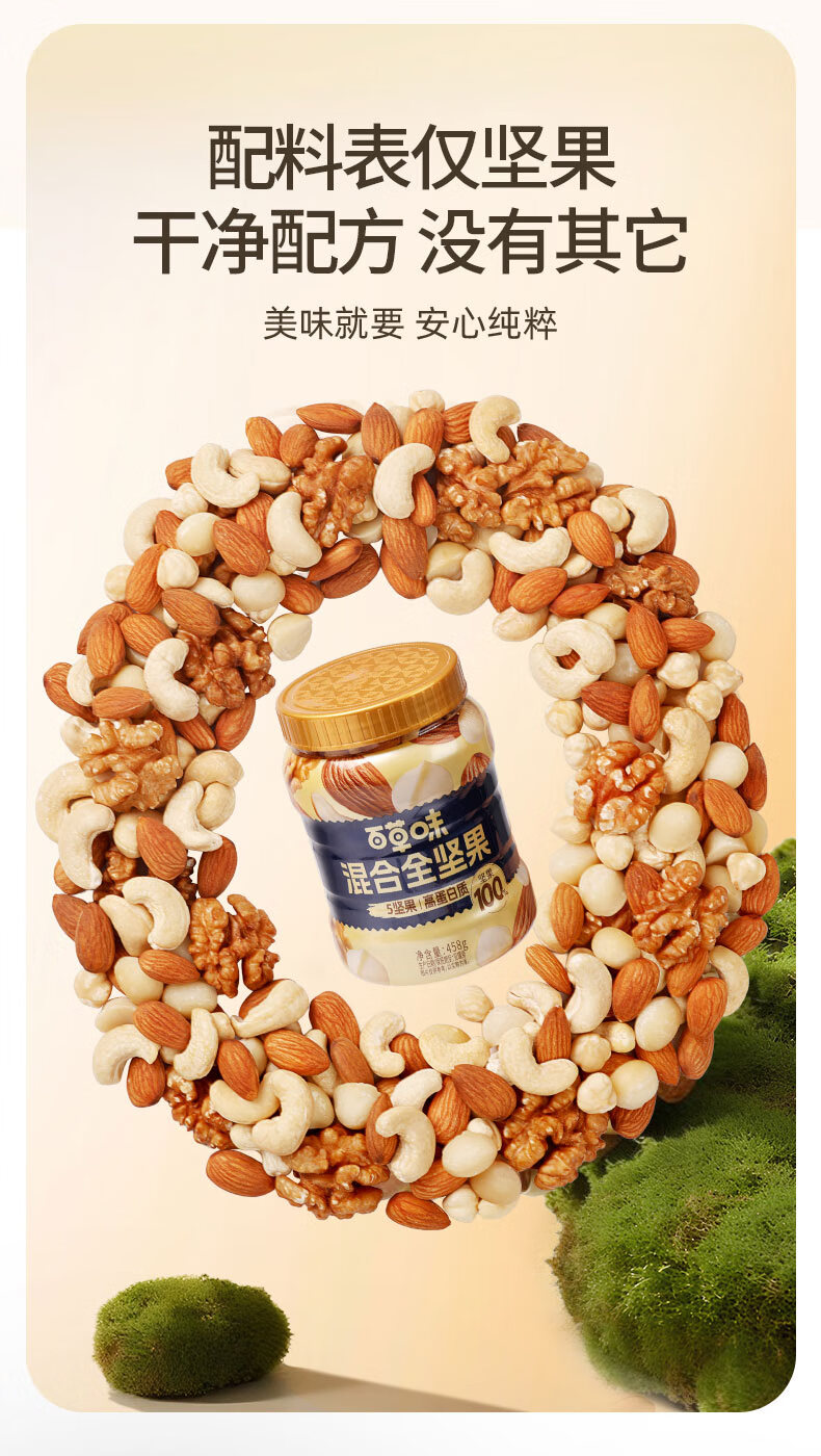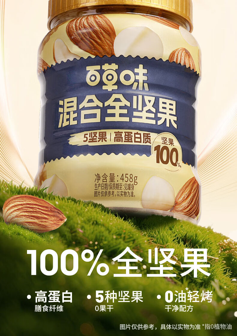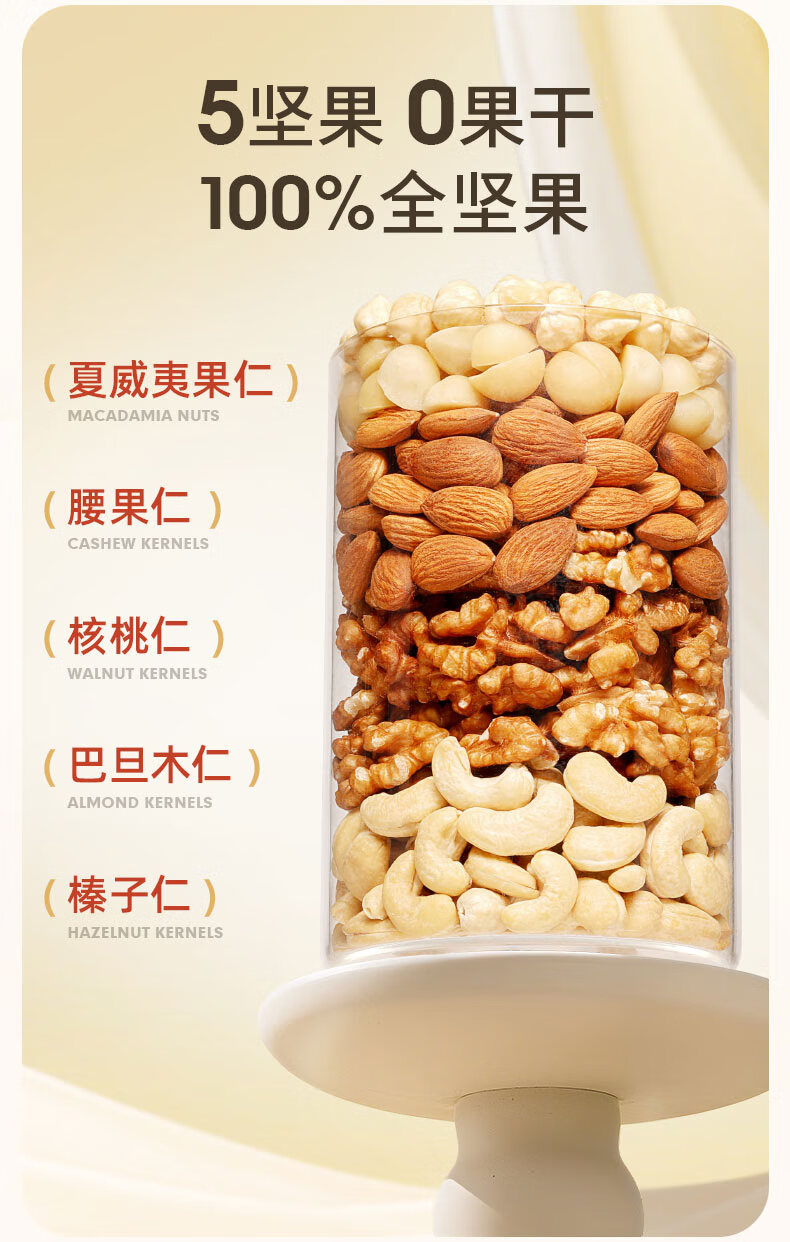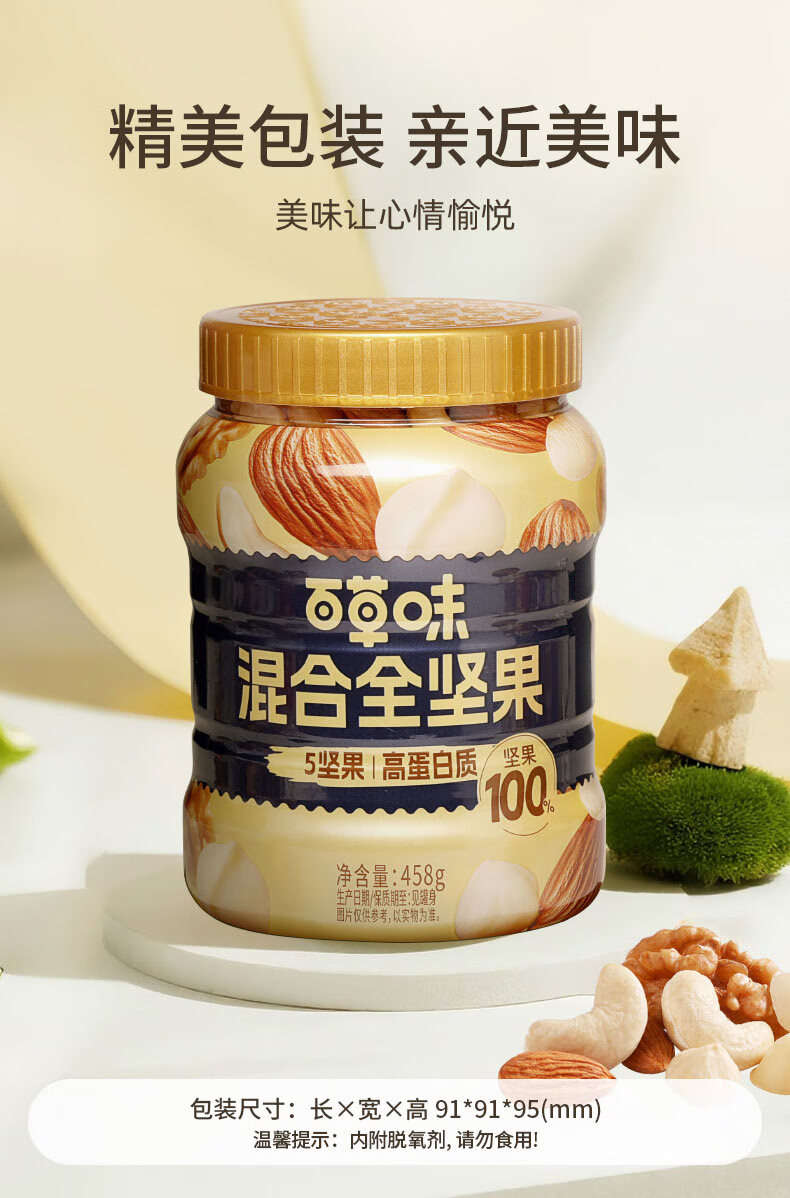 百草味 每日全坚果罐装458g零食干果夏威夷果腰果巴旦木随机发