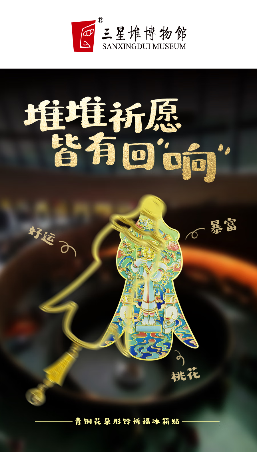 三星堆博物馆三星堆文创青铜花朵形铃祈福磁吸冰箱贴精致生日礼物送朋友伴手礼物纪念品 青铜花朵形铃冰箱贴