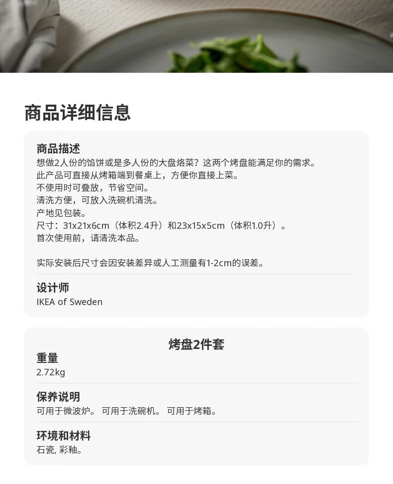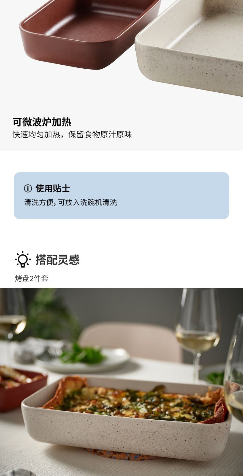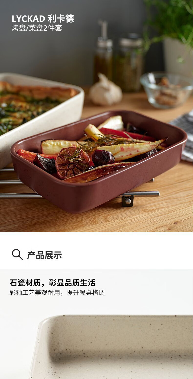 宜家(IKEA)【新品】LYCKAD利卡德烤盘菜盘烤箱微波炉芝士焗饭盘子 淡米红褐色烤盘菜盘2件套