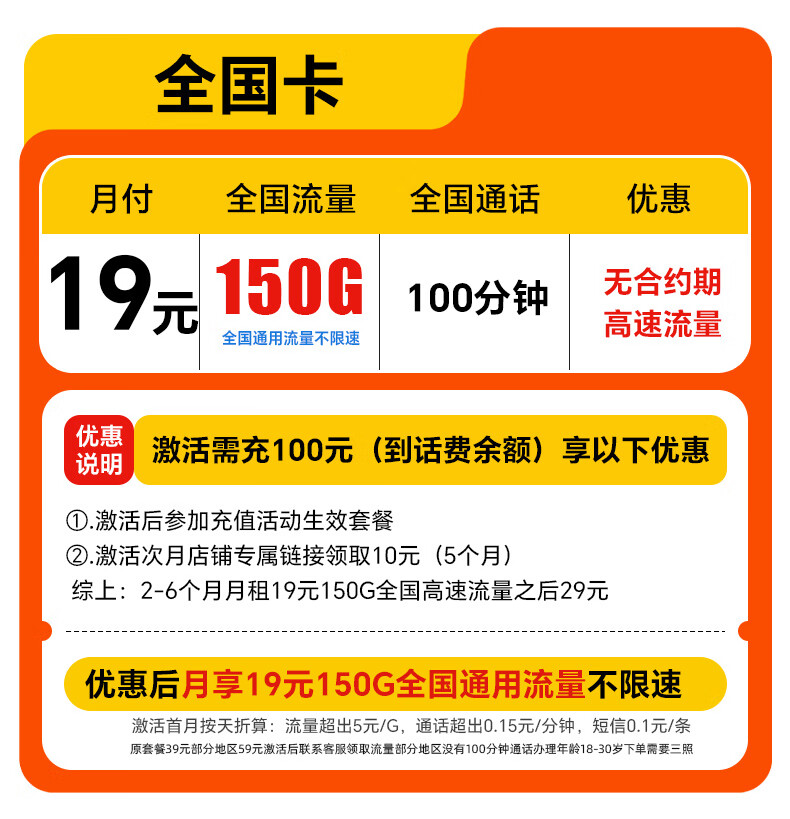 中国联通19元流量卡【超大流量】手机卡电话卡全国低月租通用非无限信纯上网5g大王卡 全国卡19元150G全国流量+100分钟