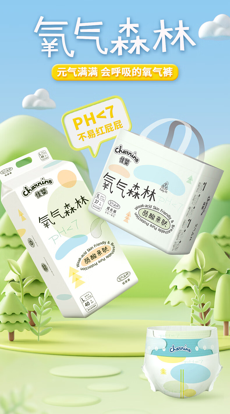 佳婴氧气森林超薄纸尿裤柔透气尿裤干爽新生婴儿尿不湿 S码104片0-5KG