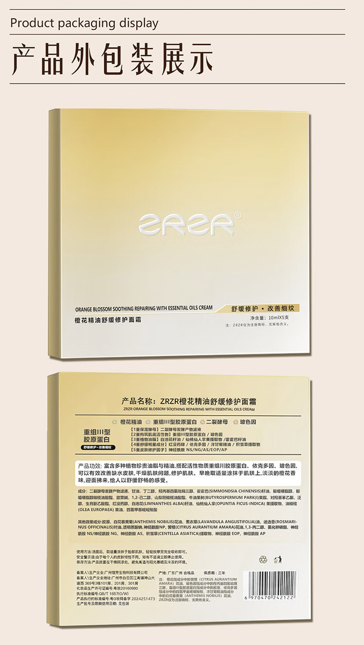 ZRZR法国橙花精油舒缓修护玻色因面霜抗皱紧致提亮肤色乳液护肤品 6盒赠一支