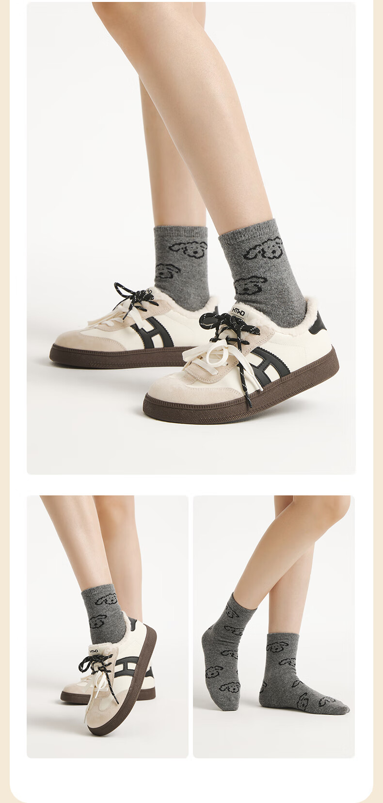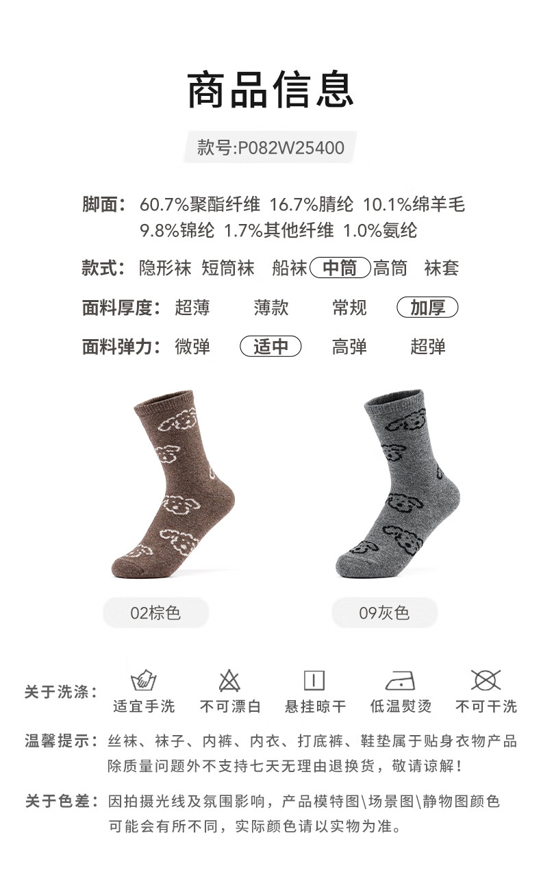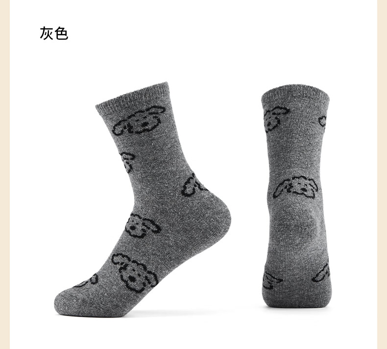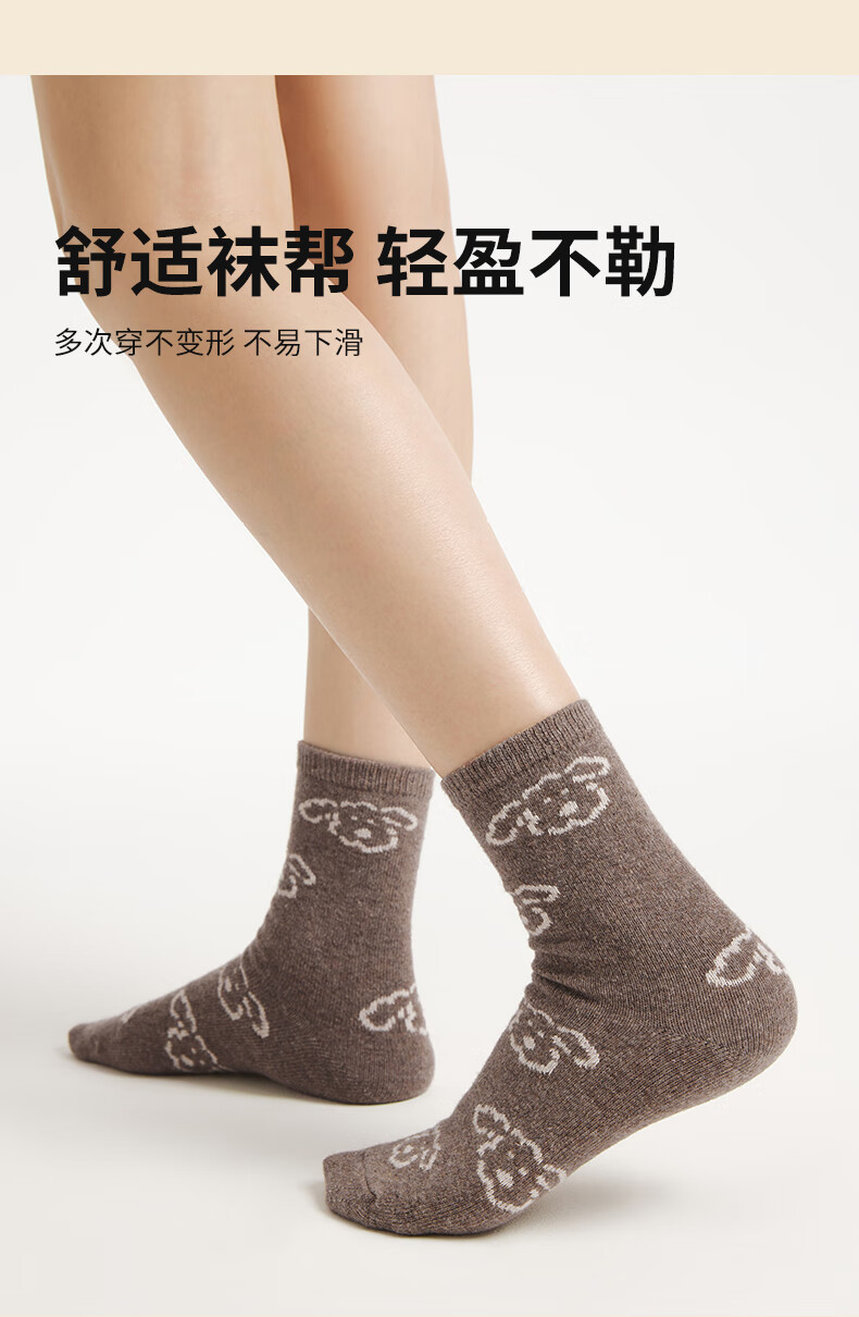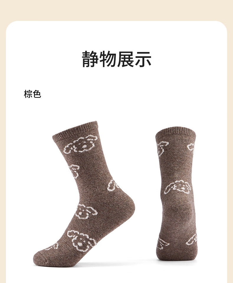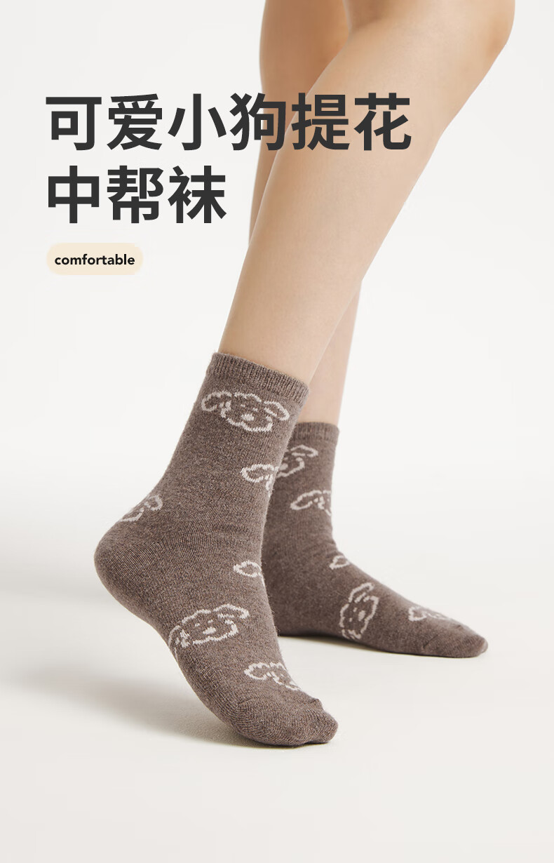 热风(Hotwind)【商场同款】女袜子加厚中帮袜2025年冬季新款可爱小狗提花中帮袜 02棕色 1双 均码