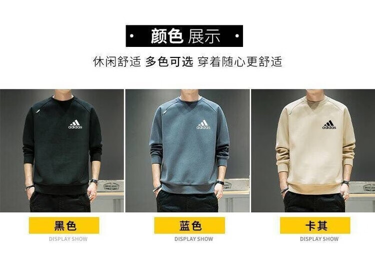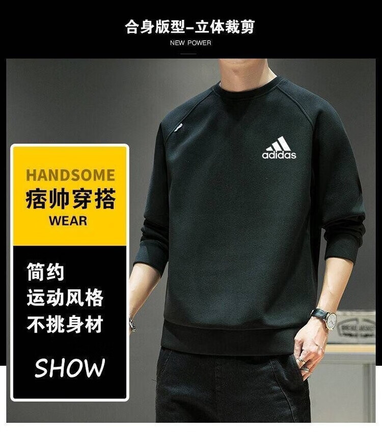 ADIDAS TECHFIT阿迪达斯三叶草棉质运动卫衣男春秋季外穿简约圆领上衣韩版百搭套 阿迪达斯棉质卫衣 / 蓝色 【春秋款】 M 推荐【80-110】斤