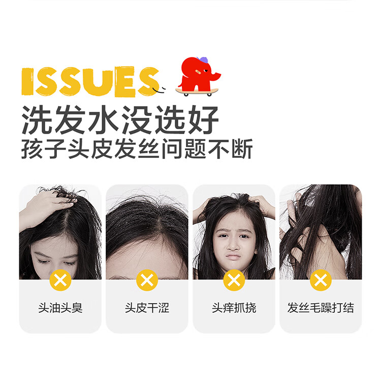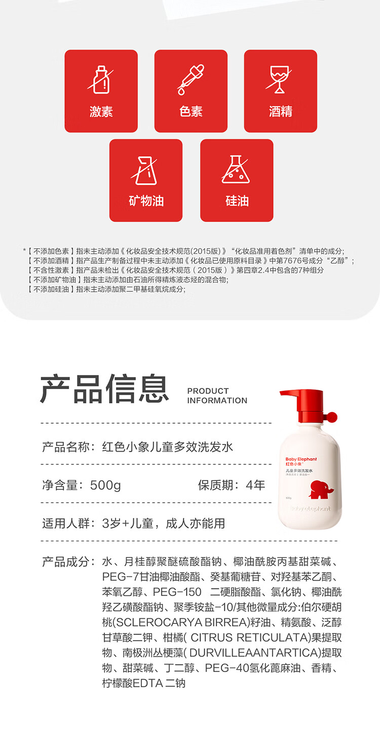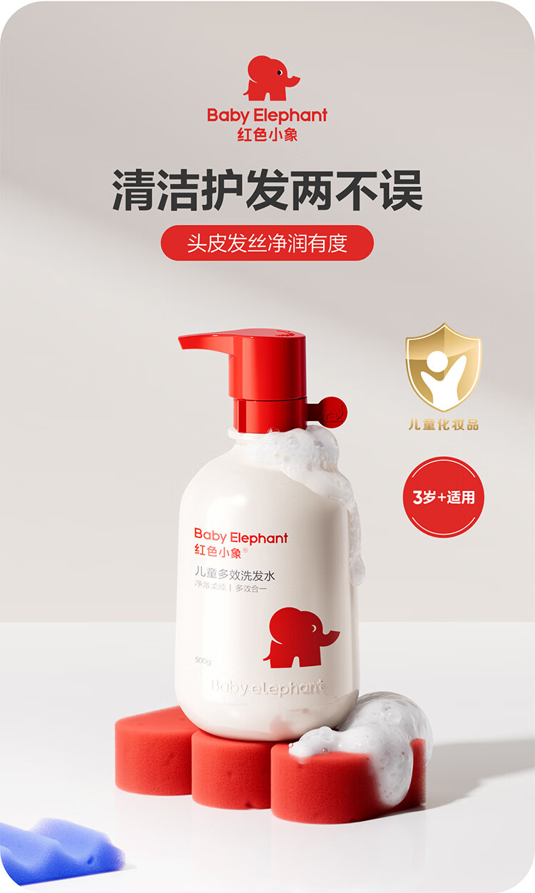 红色小象儿童多效洗发水500g女孩宝宝护发素无硅油清洁保湿洗护止痒洗发露 【儿童多效洗发水500g*2】