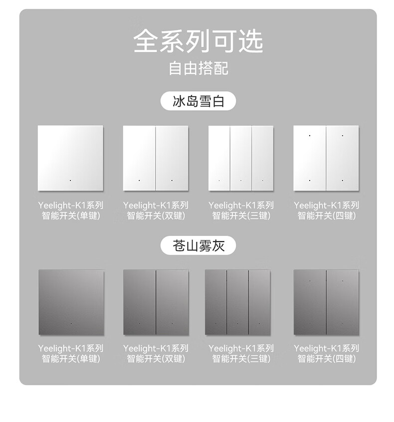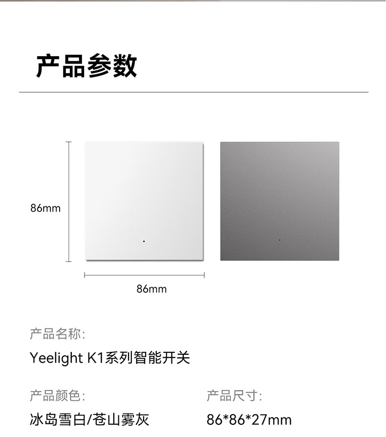 Yeelight智能开关K1已接入米家APP零火线客厅卧室墙壁开关优雅白三开