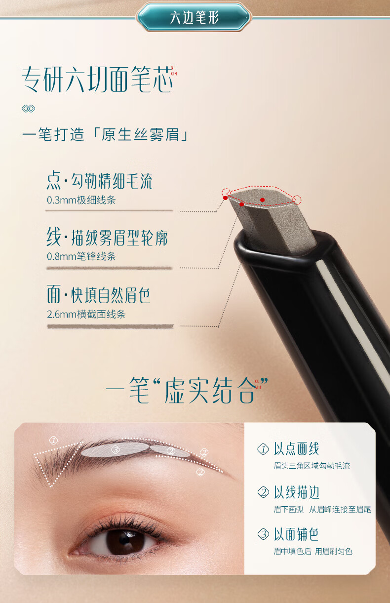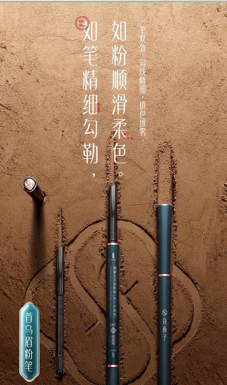花西子【双11抢先购】首乌眉粉笔螺黛栗初学者(1正1替)化妆品自然持久