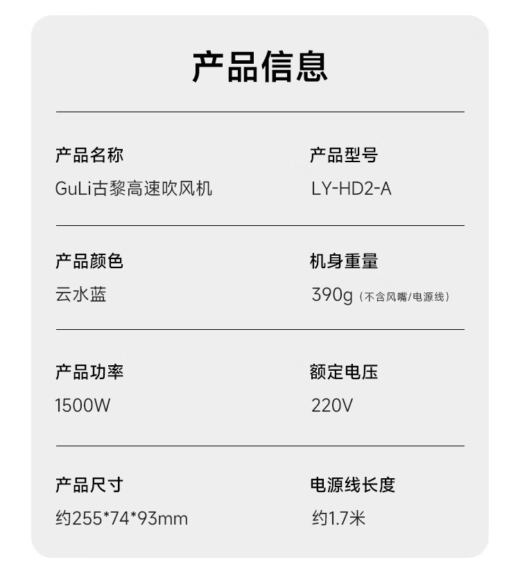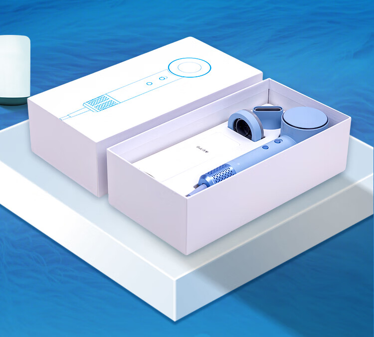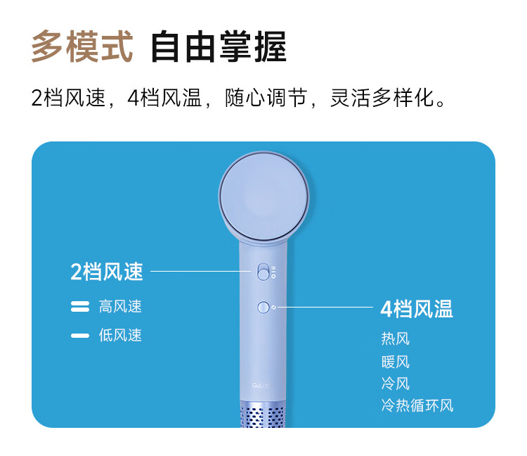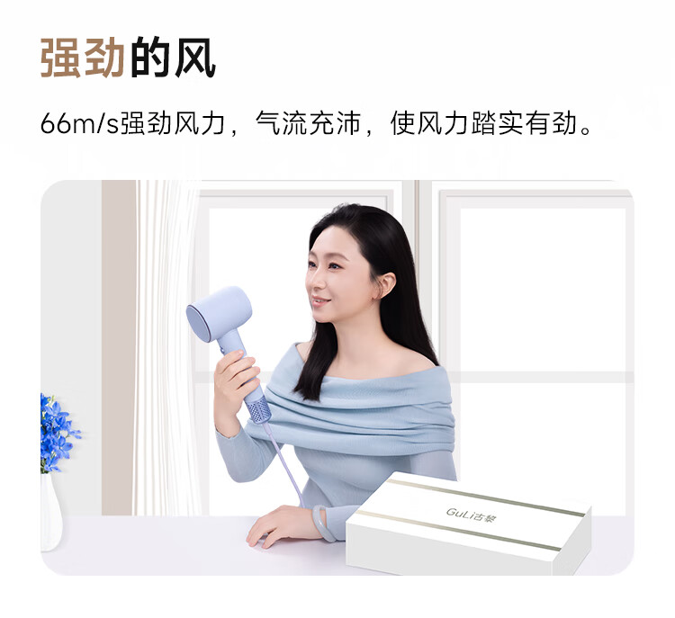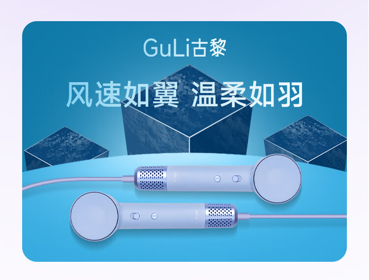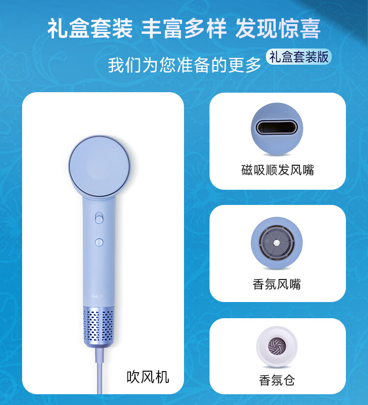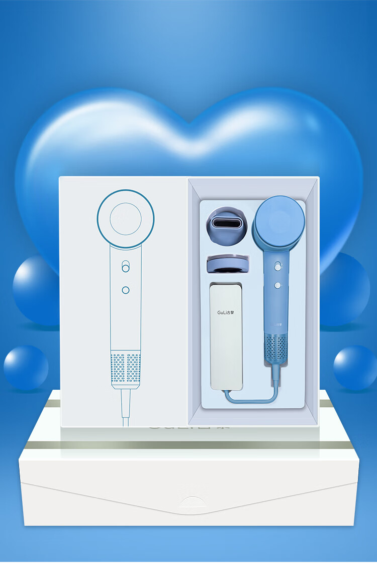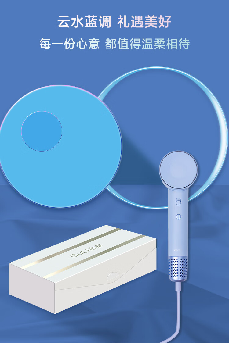 GuLi古黎电吹风 家用高速吹风机 负离子护发吹风筒无叶吹风机 云水蓝 礼盒套装版