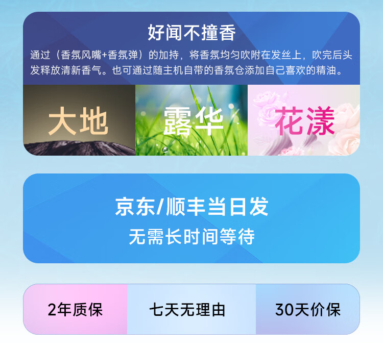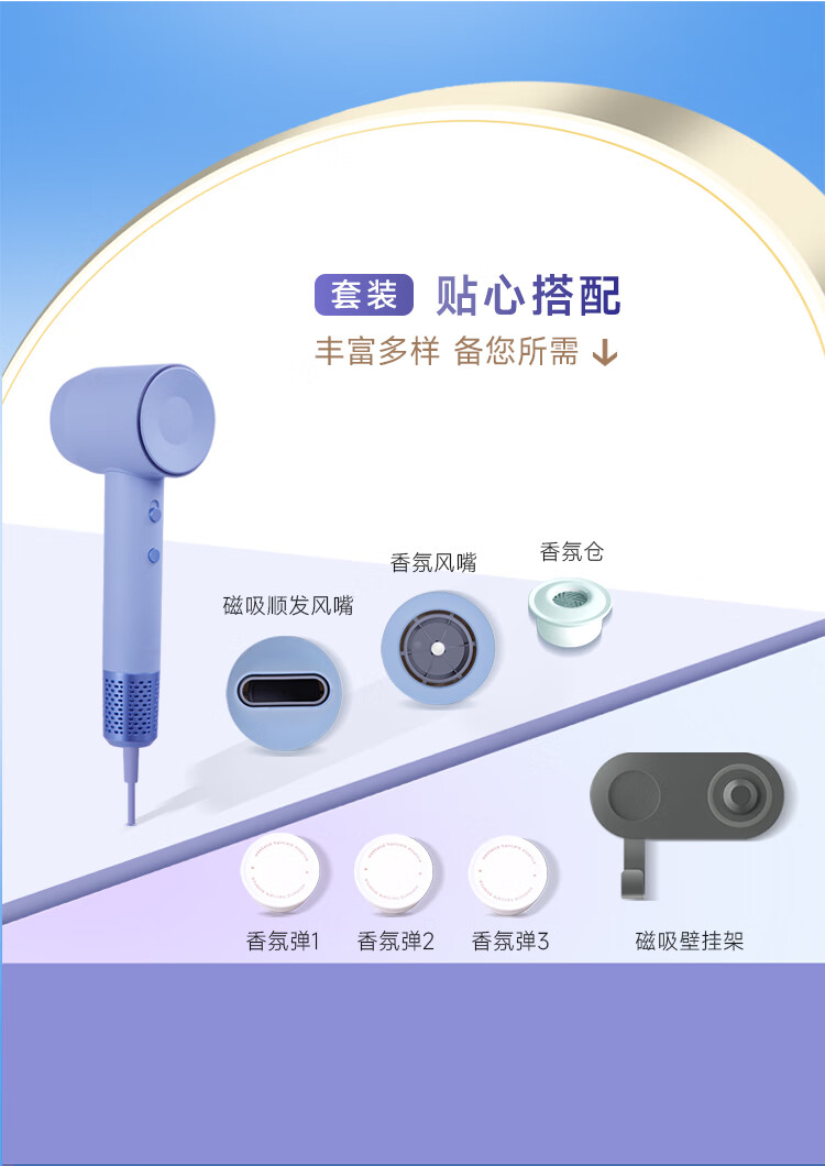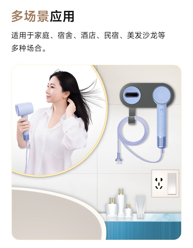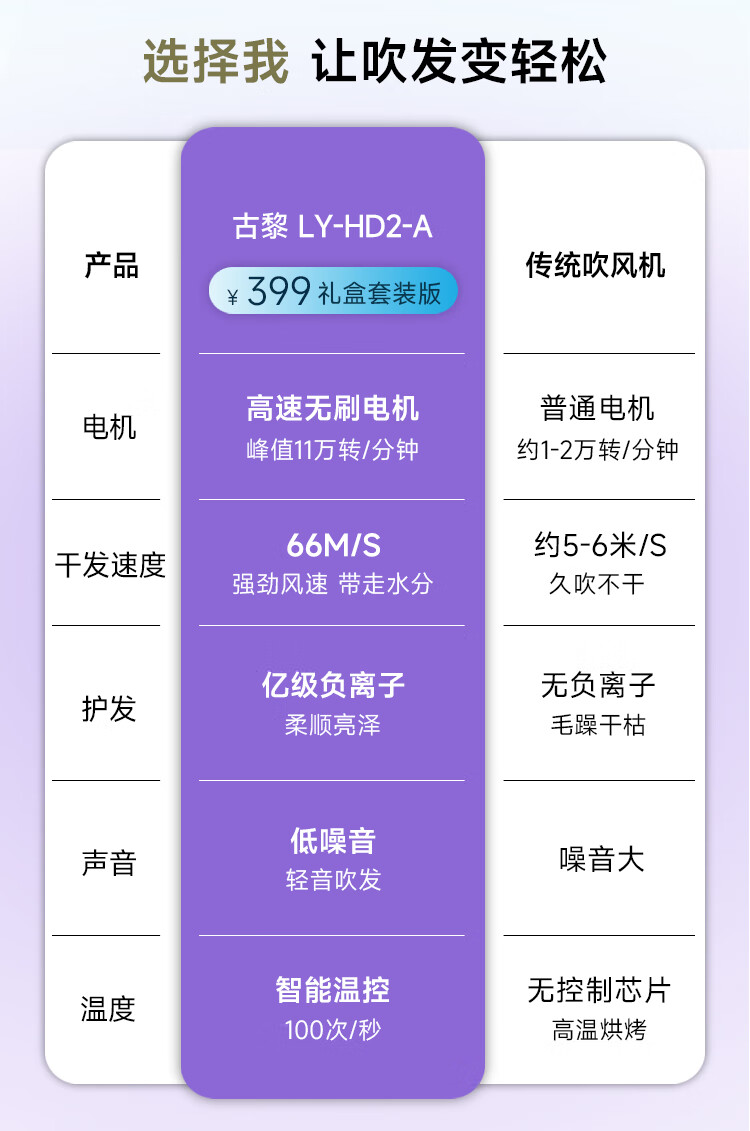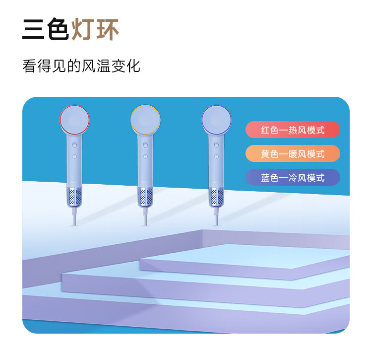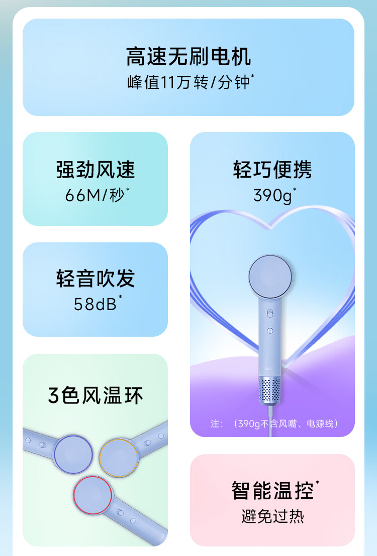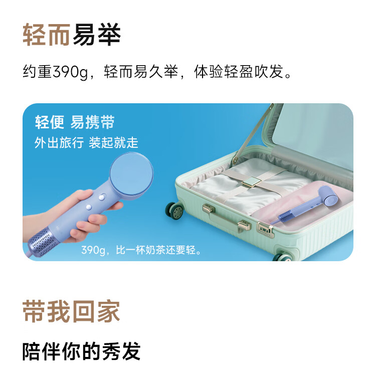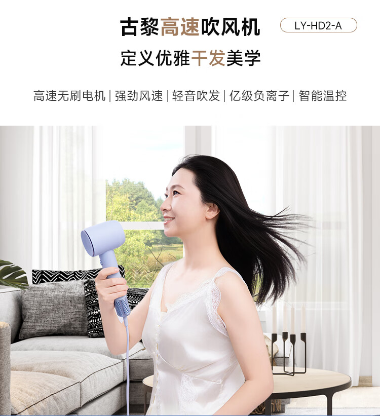 GuLi古黎电吹风 家用高速吹风机 负离子护发吹风筒无叶吹风机 云水蓝 礼盒套装版