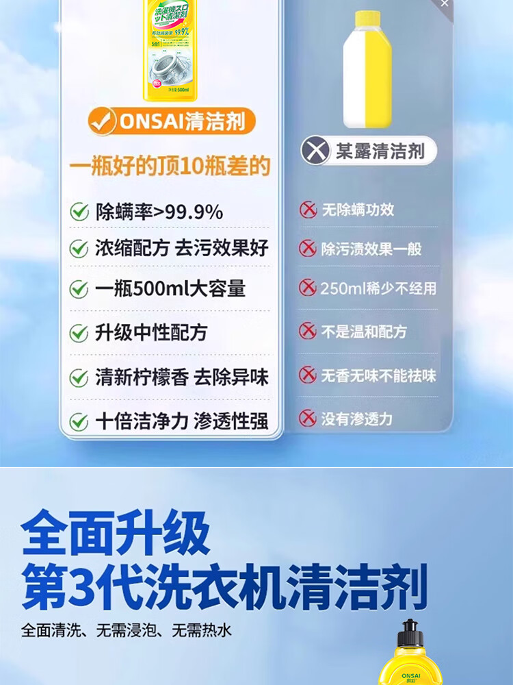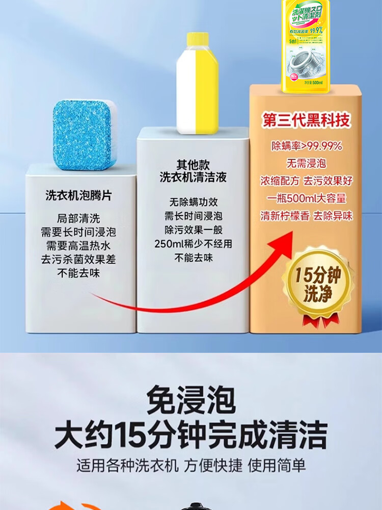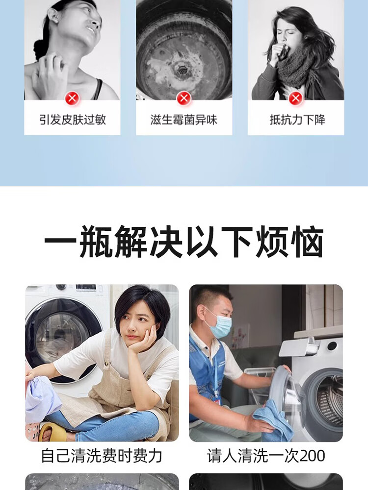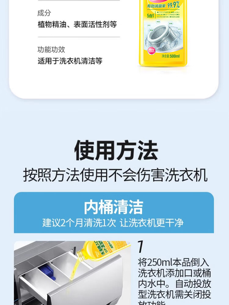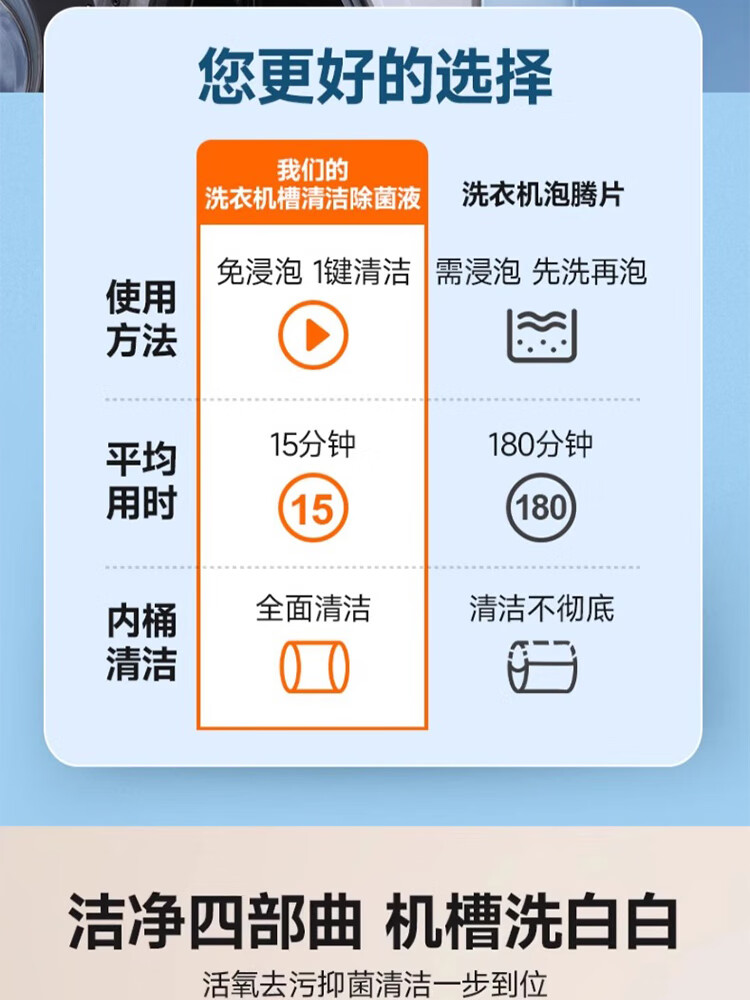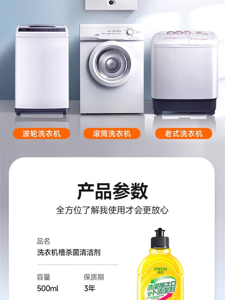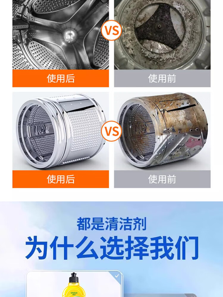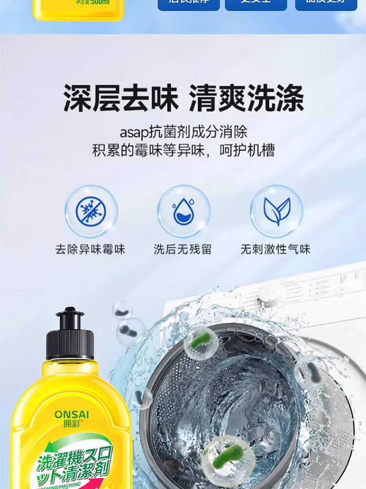 拥彩洗衣机清洗剂强力除垢杀菌污渍清洁神器滚筒波轮洗衣机槽清洗液