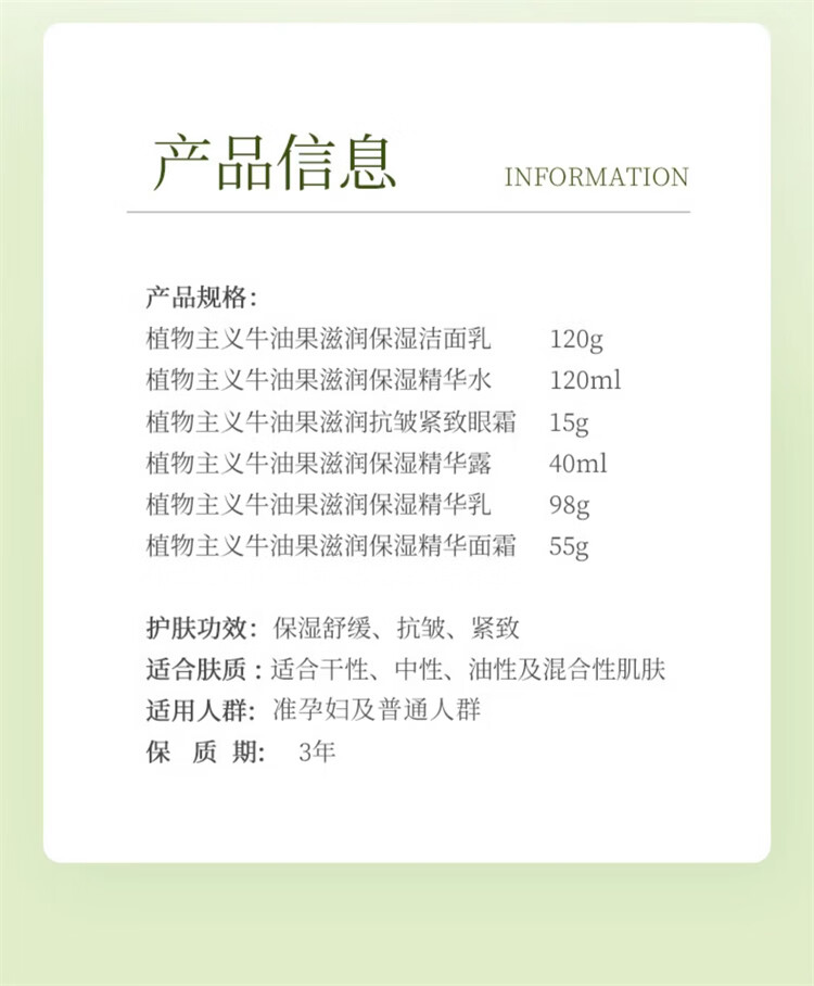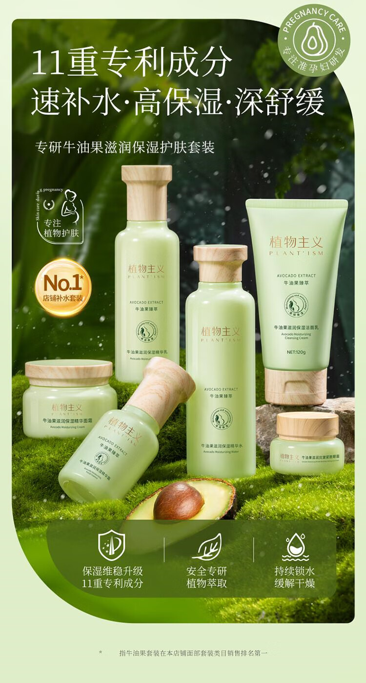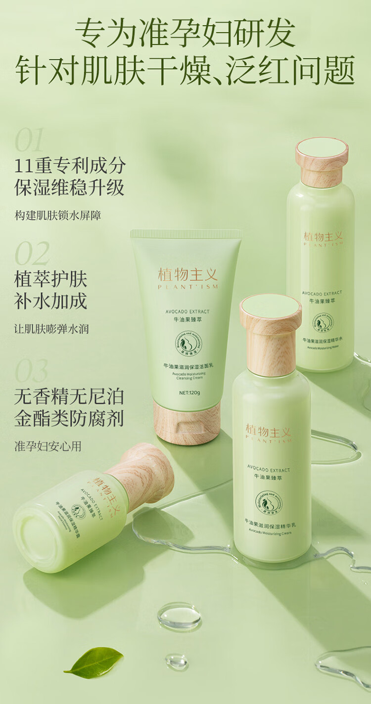 植物主义准孕妇护肤品套装专用化妆品舒缓抗皱水乳洁面牛油果补水保湿套装