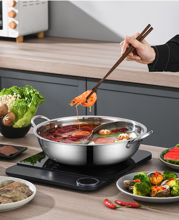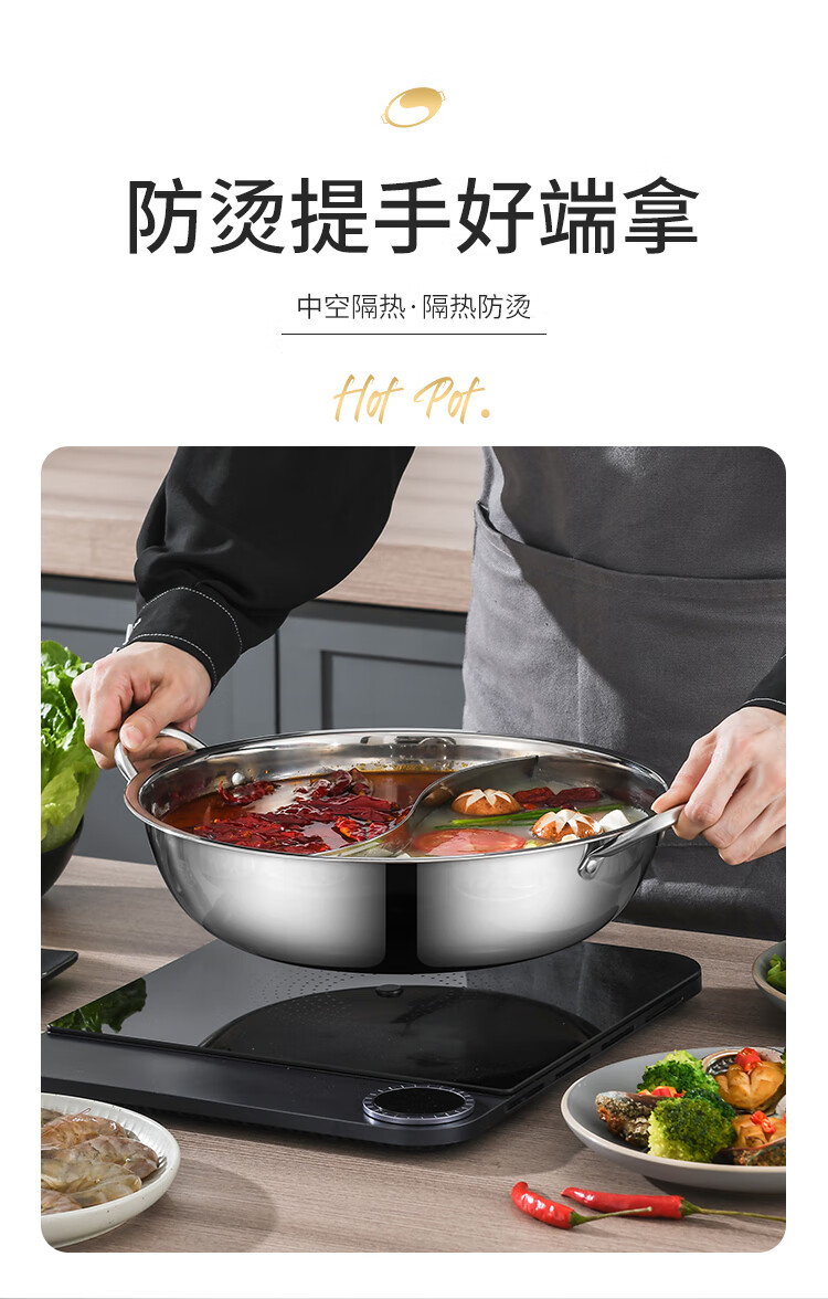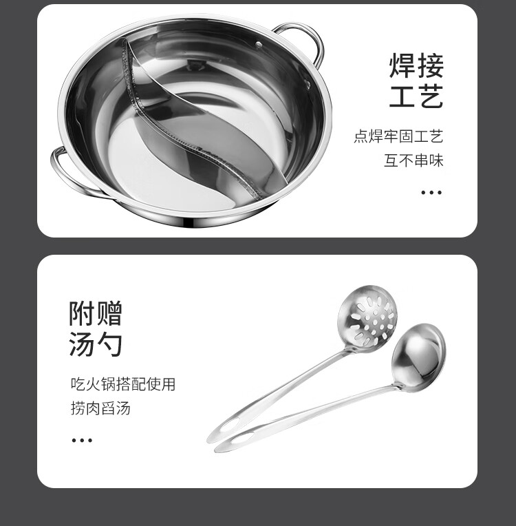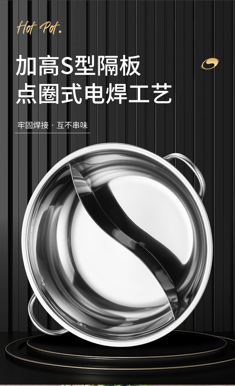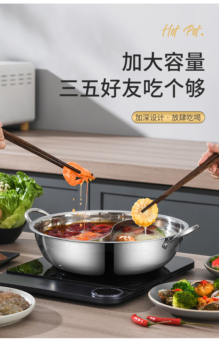 拜格(BAYCO)鸳鸯锅30CM大容量火锅专用锅具汤锅电磁炉用煤燃气灶涮锅BG1517